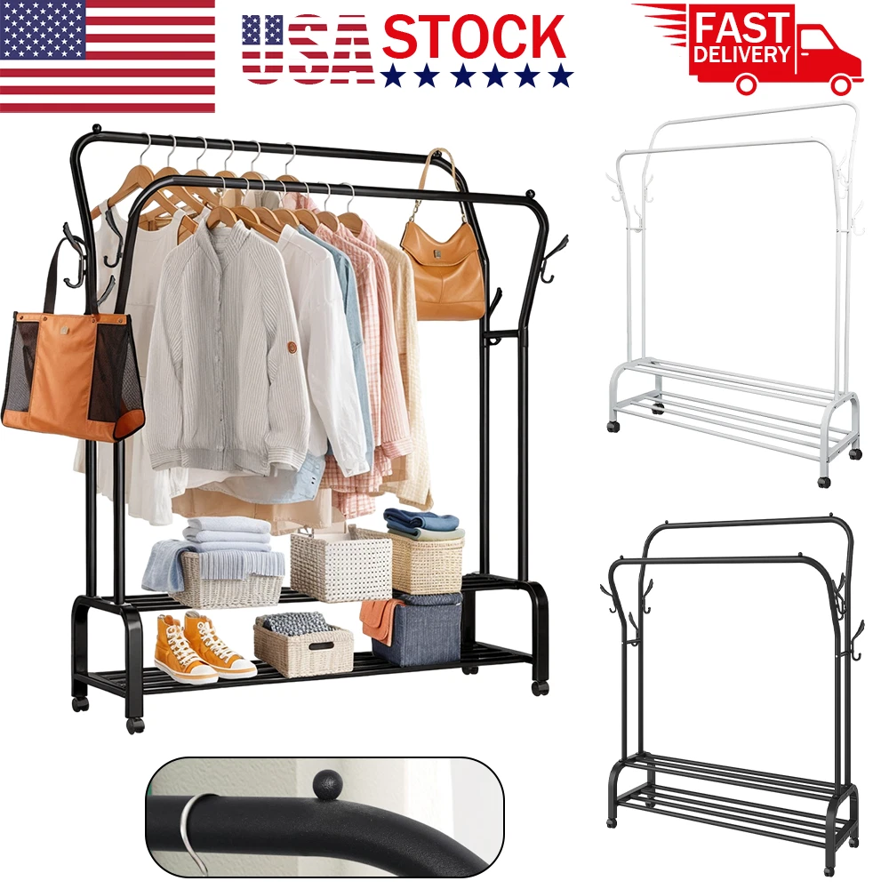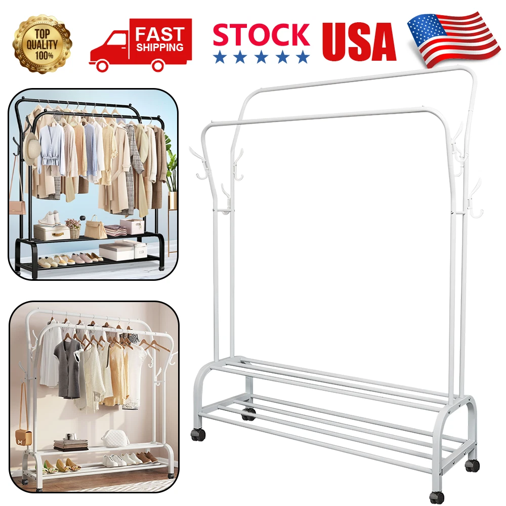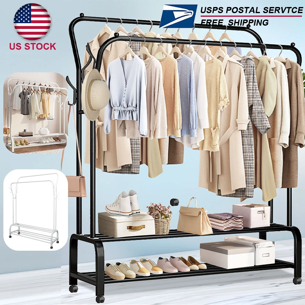Heavy Duty Garment Rack Rolling Clothing Rack Clothes Rack W/Wheels