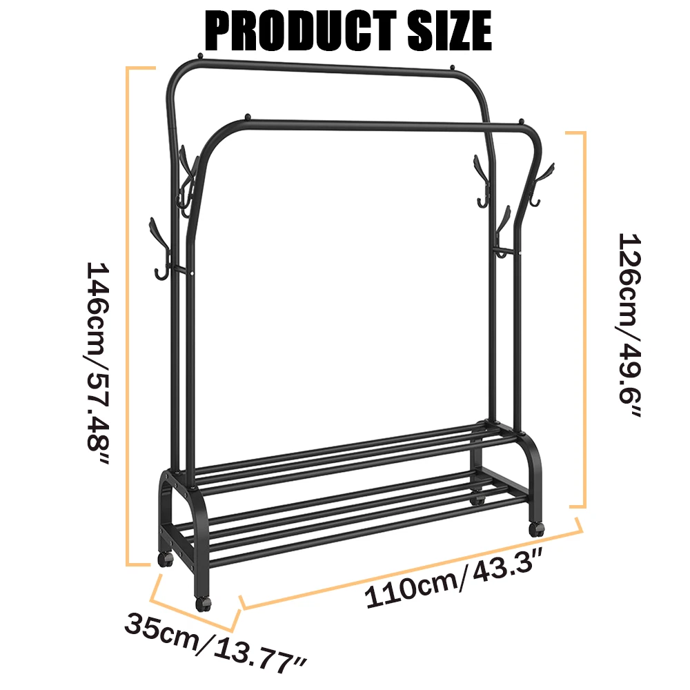Material: Steel Mounting: Free Standing Department: Adults, Teens, Kids Item Width: 13.77IN Country/Region of Manufacture: China Assembly Required: No Item Height: 57.5IN Manufacturer Warranty: 1 Year Item Length: 43.3IN Features: Hanging Item Weight: 11 lb Brand: Unbranded Type: Clothes Rail
