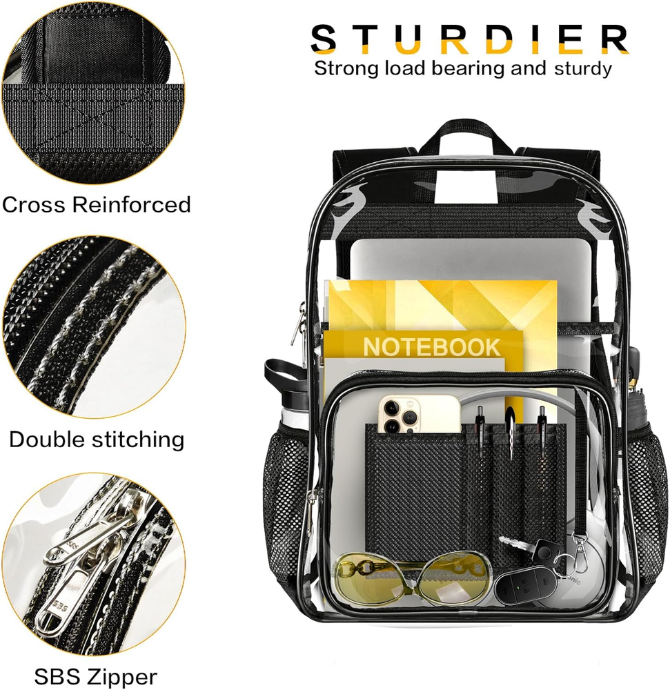 This heavy-duty clear backpack is a total game-changer! The spacious 27.5L capacity easily fits my laptop, books, and gym gear with room to spare. I love the reinforced bottom for extra durability and the multiple pockets keep me organized. Perfect for school, travel, or events with security checks—it’s stylish, practical, and super sturdy. Definitely worth every penny!