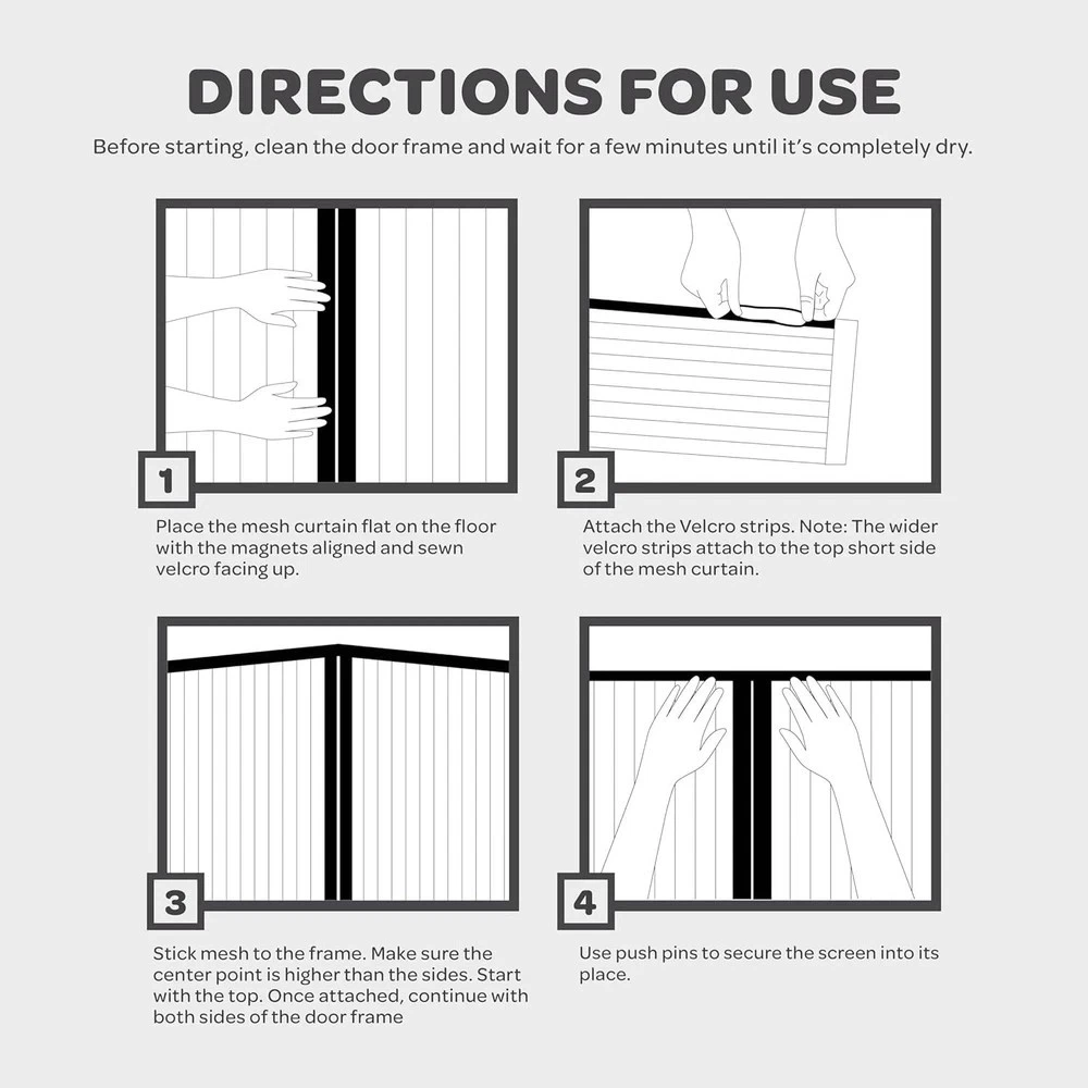 About this item Nylon INSECT PROTECTION-A protective door net screen with magnets, crafted of fine mesh that will keep flies and mosquitoes out while letting fresh air in. Super strong magnets down the entire length keep the screen door firmly shut. HANDS-FREE PASSAGE-The mesh screen parts as you pass, magically shutting behind, so you don’t have to use your hands when they are full. DURABLE DESIGN-Crafted of heavy-duty mesh with double reinforced stitching along the sides, this door net is ultimately tear resistant, lasting through thousands of uses. EASY INSTALLATION-A specialized hook-and-loop strap and sturdy thumbtacks are included with your screen mesh for effortless DIY installation, long-lasting use, and simple removal. KID AND PET FRIENDLY-Crafted of supremely lightweight material, kids and small pets can effortlessly let themselves in and out of the house without letting the outdoor pests in. STAY-OPEN OPTION-An innovative buckle strap lets you secure the bug screen so it stays open if you want to temporarily clear your doorway without removing the door mesh. ALL-DOOR SUITED-The magnetic screen door is designed to fit all doors measuring up to 39.4" x 82.7"”, such as front doors, back doors, and patio sliding doors. NOTE: Measure your door before purchase. Shipping We offer FREE shipping on all orders! We ship within Three business days of payment, usually sooner. We use a selection of shipping services such as UPS, FedEx, USPS etc. We only ship to the lower 48 states, no APO/FPO addresses or PO Boxes allowed. Local pickups and combined shipping options are not provided at this time. Return You can return a product for up to 30 days from the date you purchased it. Any product you return must be in the same condition you received it and in the original packaging. Please keep the receipt. Payment We accept payment by any of the following methods: PayPal Please pay as soon as possible after winning an auction, as that will allow us to post your item to you sooner! Feedback Customer satisfaction is very important to us. If you have any problem with your order, please contact us and we will do our best to make you satisfied. Contact Us If you have any queries, please contact us via ebay. We usually respond within 24 hours on weekdays. Please visit our eBay store to check out other items for sale! Thank you for shopping at our store. Disclaimer We are working with different suppliers in USA to deliver the item to your doorstep. If you have any issues regarding the item, Feel free to ask.