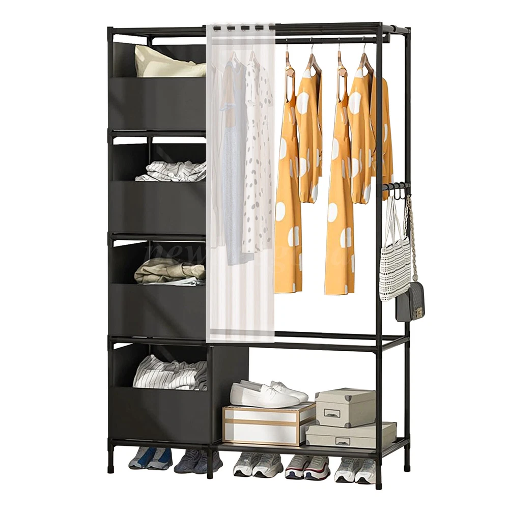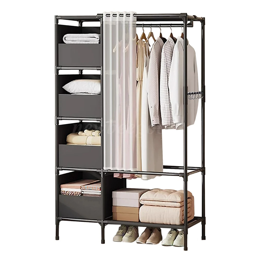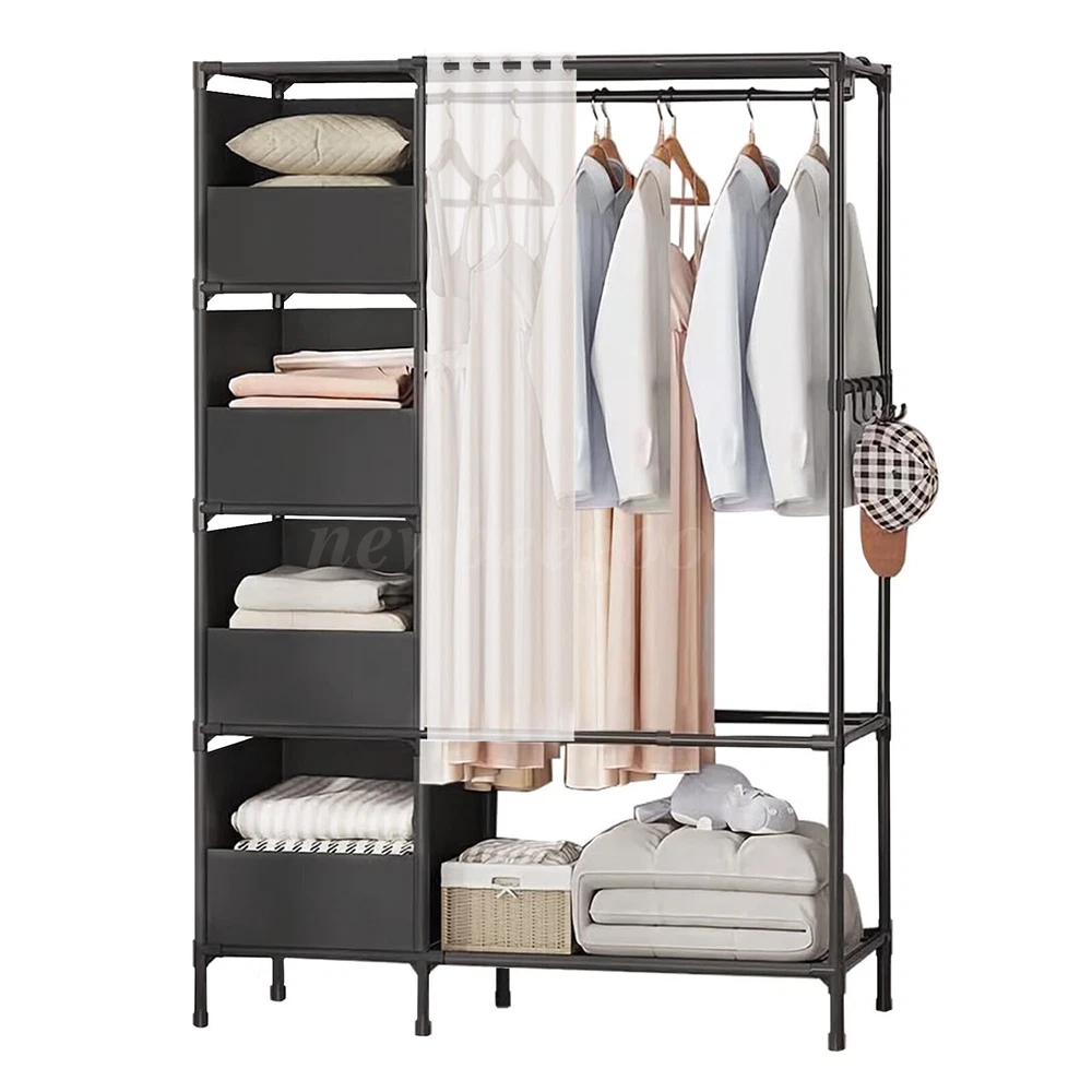 Heavy Duty Open Wardrobe Closet Garment Rack Clothing Hanging Organizer Shelves [ Description: This multifunctional portable wardrobe features a semi-open design for quick and convenient clothing selection, complemented by an upgraded curtain for privacy protection. It includes a clothes hanging rod, storage shelves, and 4 storage drawers, with elevated legs for hidden shoe storage, catering to diverse storage needs. Made with non-woven fabric and galvanized steel tubes, it is sturdy, durable, and built to last. Ideal for organizing clothes, bedding, toys, pet supplies, and more, it adapts seamlessly to various spaces. Its tool-free assembly makes setup simple and enjoyable, offering an efficient storage solution to keep your space tidy and elevate your lifestyle. Features: 【Semi-Open Design for Easy Clothing Access】 Unlike traditional enclosed wardrobes, the semi-open design offers clear and convenient clothing selection. The upgraded curtain design operates smoothly while ensuring privacy and a serene living environment. 【Versatile Storage Configuration for Varied Needs】 The wardrobe features a hanging rod, storage shelf, and 4 storage drawers designed for outerwear, dresses, bed linens, and folded clothes. Its elevated legs not only enhance stability but also provide a dedicated space for shoes, whether heels, sneakers, or casual footwear. 【Premium Materials for Durability】 Constructed with a non-woven fabric cover, fabric shelves, and galvanized steel tubes, the wardrobe ensures long-term stability and durability. It withstands daily wear and tear, maintaining its form even during relocations. 【Multipurpose Use for Various Scenarios】 Beyond clothing storage, this wardrobe is perfect for organizing bedding, toys, pet supplies, and seasonal items. Whether placed in bedrooms, living rooms, hallways, or kids’ rooms, it enhances space organization and functionality. 【Easy Tool-Free Assembly】 Designed for straightforward assembly, users can easily connect tubes to plastic connectors by following the manual—no additional tools required—making the DIY process effortless and enjoyable. Specification: Type: Portable Wardrobe Material: Galvanized Steel Tubes, Non-Woven Fabric Color: Black Dimensions: 41.3×17.7×67in / 105×45×170cm Style: Modern Minimalist Package Contents: Fabric Drawers × 4 Long Tubes × 11 Short Tubes × 42 Leg Tubes × 6 3-Way Plastic Connectors × 20 4-Way Plastic Connectors × 6 Straight 3-Way Connectors × 2 Large Shelf Fabric × 2 Small Shelf Fabric × 1 Hanging Hooks × 2 S-Shaped Hooks × 4 Foot Caps × 6 Note: 1.Please allow slight deviations due to manual measurements. 2.The actual product may differ slightly from the images due to display settings and lighting conditions. 3.Product details may vary slightly between manufacturing batches. If minor differences are a concern, please purchase with caution. Thank you for your understanding. 4.If you have any questions about the product, please feel free to contact us. We can only accept Paypal payment only. You can send payment to our paypal account by many payment methods(Credit or debit card through PayPal). 1. Items are US stock. 2. Item will be shipped out within 1- 2 Working days upon your payment completed. 3.Please do not hesitate to contact us if you have any questions about our products. We will be responsible for any damages or losses incurred in the shipping process. 1.If there are any problems with our products,Please feel free to contact us.We will always here to solve them for you.You don't need to contact ebay or paypal.And please DO NOT leave us Neutral/Negative feedback,It won't help the problem to be solved.And it is the worst hurst to a seller.We should try our best to make a happy easy transaction. 2.If you are satisfied with our products and our service,please tell your friend and leave us positive feedback;if you are not satisfied with our products or service,please DO tell us. 3.After receiving the item,you could contact us within 30 days.Refund will be given as money back or item exchange. 1. Usually, we reply for the messages within 24 hours, if you do not get response within 1-2 Working days , please check your Messages box one more time or Please email us AGAIN. 2. Email is the priority of our customer service, if you can't get us, please choose live response. 3. Positive feedback is automatically done once the payment is cleared. We appreciate your feedback. 4. The star-scores are very important to us. If anything about your transaction did not meet your expectations. Please let us know and give us the opportunity to work out for you before you leave feedback. Working Day: Monday to Friday Working Time: 9:00 am to 18:00 pm On Jan 16, 2025 at 03:22:49 PST, seller added the following information: