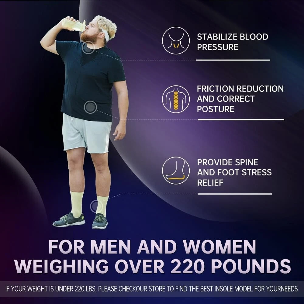 Heavy Duty Support Pain Relief Orthotics - 220+ lbs Plantar Fasciitis High Arch Support Insoles for Men Women, Flat Feet Orthotic Insert, Work Boot Shoe Insole, Absorb Shock with Every Step 【220 lbs+Heavy Duty Support Insoles】:Men's and women's orthopedic insoles, specially designed for heavier people, provide super high arch support and shock-absorbing technology to relieve foot and leg fatigue, distribute weight and reduce friction with every step impact, providing comprehensive foot support. 【Better fit design】: Disperse plantar pressure according to the contour of the foot, rear and midfoot control points can reduce excessive pronation and stabilize the midfoot, maximize cushioning, maintain verticality and balance of foot bones, provide stability. Reduces overstretching of plantar fasciitis and helps relieve plantar fasciitis, flat feet, forefoot pain, metatarsalgia, arch pain, heel pain, and other foot pain problems. 【STANDING ALL DAY】: Forefoot metatarsal pads, arch cushions and Poron heel pads are great for shock absorption and pain relief. Arch Support Pads and Heel Cups support the arch and wrap the heel while standing, walking, running or jogging. Has maximum cushioning effect, maintains verticality and balance, and provides stability. 【Trim and Design for Everyday Use】: You can also cut the insole to better fit all your shoes. Our orthotics fit most shoes such as walking shoes, running shoes, athletic shoes, work shoes, boots, hiking shoes, and more general footwear. (Returns and exchanges are also supported after cutting) 【Tip】: You may feel pressure on your feet when wearing it for 3-7 days. We strongly recommend starting with 2-3 hours a day and gradually increasing the time each day. If you are not satisfied with our insoles, we will replace or return them to you. About this item 【220 lbs+Heavy Duty Support Insoles】:Men's and women's orthopedic insoles, specially designed for heavier people, provide super high arch support and shock-absorbing technology to relieve foot and leg fatigue, distribute weight and reduce friction with every step impact, providing comprehensive foot support. 【Better fit design】: Disperse plantar pressure according to the contour of the foot, rear and midfoot control points can reduce excessive pronation and stabilize the midfoot, maximize cushioning, maintain verticality and balance of foot bones, provide stability. Reduces overstretching of plantar fasciitis and helps relieve plantar fasciitis, flat feet, forefoot pain, metatarsalgia, arch pain, heel pain, and other foot pain problems. 【STANDING ALL DAY】: Forefoot metatarsal pads, arch cushions and Poron heel pads are great for shock absorption and pain relief. Arch Support Pads and Heel Cups support the arch and wrap the heel while standing, walking, running or jogging. Has maximum cushioning effect, maintains verticality and balance, and provides stability. 【Trim and Design for Everyday Use】: You can also cut the insole to better fit all your shoes. Our orthotics fit most shoes such as walking shoes, running shoes, athletic shoes, work shoes, boots, hiking shoes, and more general footwear. (Returns and exchanges are also supported after cutting) 【Tip】: You may feel pressure on your feet when wearing it for 3-7 days. We strongly recommend starting with 2-3 hours a day and gradually increasing the time each day. If you are not satisfied with our insoles, we will replace or return them to you. See more About this item