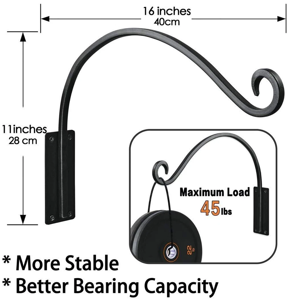 Universal Plant Hanger: The 16 plant bracket can be mounted indoors or outdoors - suitable for hanging plants, bird feeders for outside, lanterns, flower baskets, plant pots, wind chimes. Perfectly decorate and beautify your home and garden. Heavy-duty Hanging Bracket: Outdoor bird feeders hanger is hand-forged from solid wrought iron- extremely sturdy and stable. The black matte powder-coated finish guarantees bird feeder bracket waterproof, rust-proof, and sun-proof. Large Plant Bracket: The curved plant bracket measures 16"L * 11" with a strong rectangular iron plate. The maximum weight capacity is to hang up to 80lbs. Wall Mounted Hook: Screw the bird feeder hook into the wall, tree, wooden fence, posts, deck columns. All required screws are included. After-sales Service: We promise our customers a worry-free purchasing experience. If there are quality problems with our plant hangers, we will provide you with satisfactory solutions in the first time.