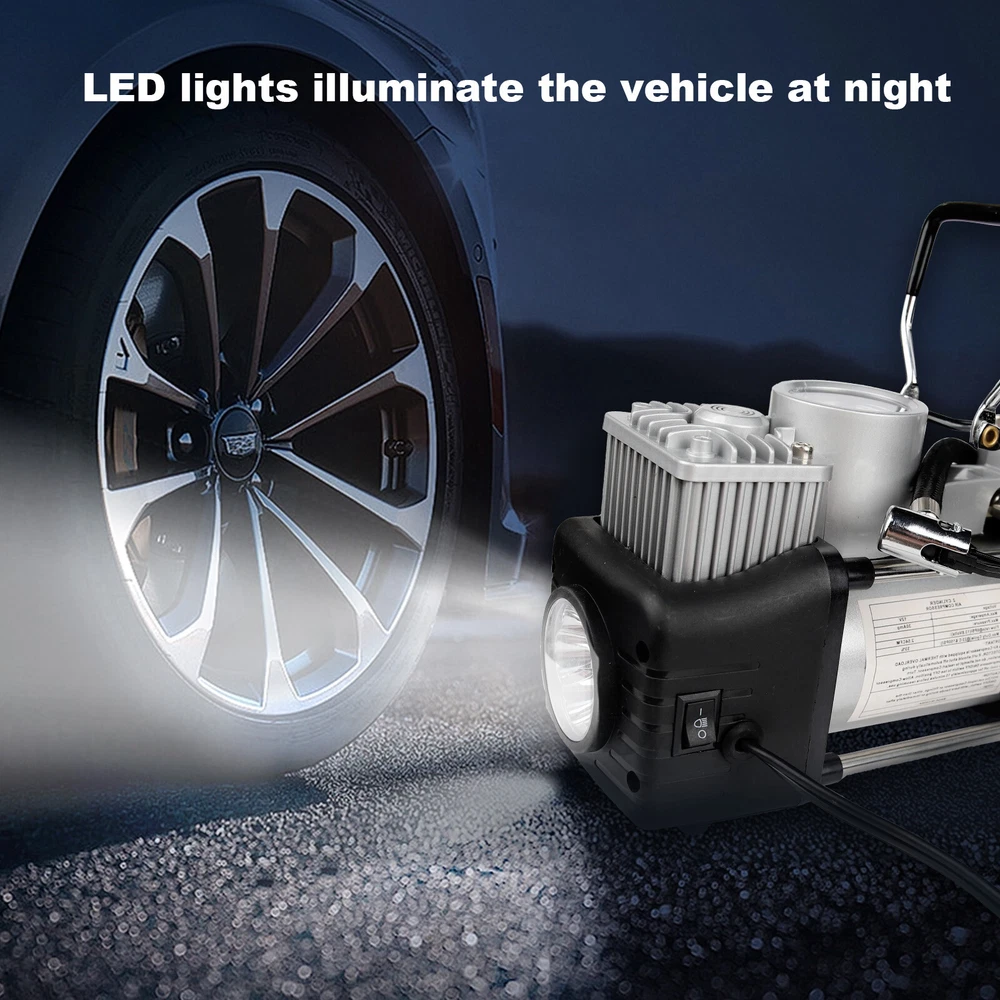 Heavy Duty Portable Air Compressor Car Tire Inflator Electric Pump Auto 12V Item Description Features: ★ Heavy duty air compressor, ideal for inflating many types of tyres including 4WD vehicles and tractors tyres. ★ Huge air flow cylinder 150PSI working pressure, can reach to the normal tire pressure quickly. ★ This lightweight mini compressor is small, compact and portable for easy storage in most vehicle types. ★ Cast metal air pump casing with radiator for better heat dissipation. ★ Supplied with tyre inflator extension adapter and other inflation accessories in the carry bag. ★ Able to inflatebike tyres, car tyres, athletic balls etc. Specification: ★ Type: 2 cylinders Air Compressor ★ Voltage range: DC 12V-13.5V ★ Max Ampere: 30Amp ★ Max Pressure: 150 PSI ★ Air Flow Rate: 70L/min ★ Weight: 2.7kg/5.95Lbs ★ Power Cable Length: 102 IN ★ Hose Length: 118 IN ★ Application: car/electric car/bicycle/motorcycle/ball/kayaking Note: ★ Strictly use it within instructed power voltage DC 12V, do not use high voltage ★ The car motor should be started before using ★ It is better to stop a while after inflating for 15 minutes to extend the lifespan of the motor ★ Generally, when inflate approximately 3 minutes; the normal tire pressure can reach 220KPA. Large tires will need longer time. If the gauge pointer rapidly rising when start inflate, means there is no air going though the tire, you must stop and start over, otherwise, the gauge and the motor will be damaged Package Include: ★ 1 x Portable Air Compressor Pump ★ 1 x Power Cord With Battery Clamps ★ 1 x Extension Air Hose ★ 3 x Inflatable Adapters ★ 1 x Carrying Bag Detail Images Shipment 1.We ship to your eBay or Paypal address. Please make sure your eBay and Paypal address is correct before you pay. 2.Items will be shipped within 1-3 business day when we received payment. 3.Delivery time depends on destination and other factors; 4.International buyers please note: a.Import duties, taxes and charges are not included in the item price or shipping charges. These charges are buyer's responsibility. We will try our best to reduce the risk of the custom duties. b.Please check with your country's customs office to determine what these additional costs will be prior to buying. Payment 1.We accept PayPal only. 2.All major credit cards are accepted through secure payment processor PayPal. 3.Payment must be received within 7 business days of auction closing. 4.We ship to your eBay address. Please make sure your eBay address is correct before you pay. Return & Refund Customer satisfaction is our first priority. We accept return within 30 days after delivery. Buyer is responsible for return shipping and insurance cost. Please email first before returning. We will return the money to you after got the return item(s). We can not refund to you if any broken or damaged of your return item. Please ensure its safety. Feedback Your feedback is very important to us. If you can't leave us a "5-Star" rating and a positive feedback, please contact us first prior before leaving feedback. We are eager to work with our customers. We believe in communication. Give us a call or send us an email, we will make things right for our buyers. Positive feedback for our buyers will be left automatically by eBay Seller Manager Pro. On Sep 2, 2024 at 19:56:23 PDT, seller added the following information: On Sep 17, 2024 at 15:36:07 PDT, seller added the following information: