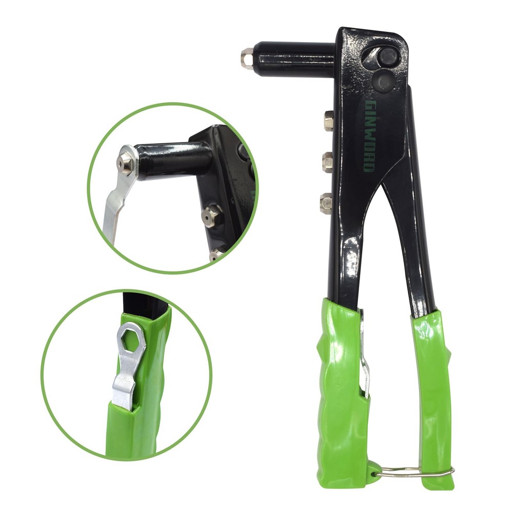 Package Includes: Four rivet heads and 200 rivet 3/32"(2.4mm), 1/8"(3.2mm), 5/32(4mm) and 3/16"(4.8mm) 50 of each specification,4 HSS boutique drill bits to provide professional solutions for a variety of riveting projects. Wide Range of Application: Rivet gun tools are perfect tools for safely fixing metal and heavy objects in different construction and maintenance applications, suitable for different occasions, automobile repair, home appliances,furniture, HVAC, etc. Strong Material: The rivet gun adopts full steel structure with a thickness up to 1.8MM reinforced carbon steel heat treatment handle, carbon steel handle makes it maintain strength, long service life. Comfortable to Use: The pop-up rivet gun is ergonomically designed and operated with one hand to make work easier and improve the user's work efficiency, and the thick PVC handle provides comfort and non-slip for the user. Quality Service: If you have any problem using our products. Please do not hesitate to contact us through the seller information of Amazon, and our professional team will solve your problem in time.