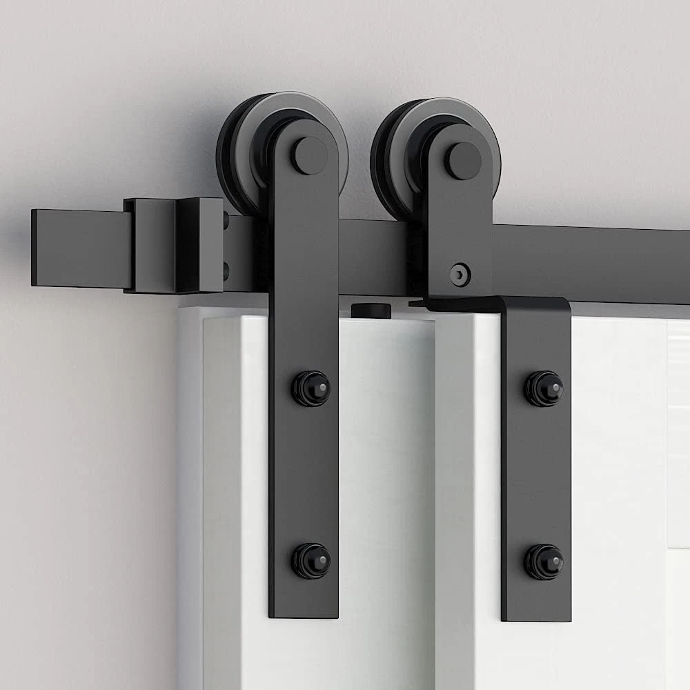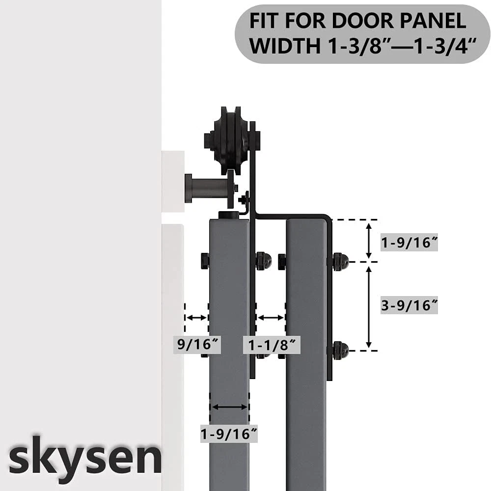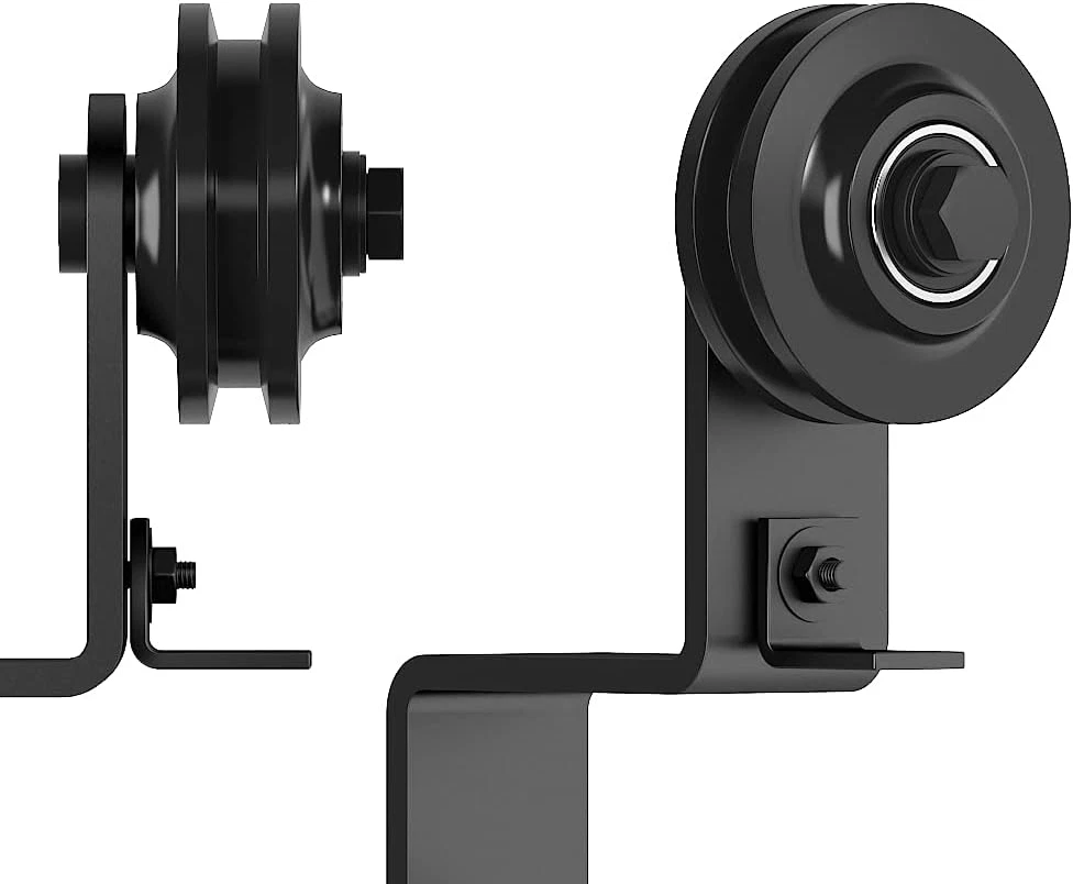✅ Barn Door Roller - Material: Carbon Steel, Surface: Black Powder Coated . ✅ Package Included: 2 x Right Angle Roller, 2 x anti-jump kit, 1 x Floor Guide,8 x Spacer (for hanger bolts if your barn door is thin) ✅ Door weight capacity: 265 lbs, Door Thickness: 1-3/8" and 1-3/4". ✅ Barn door hanger will fit for barn door track in thickess of 1/4" maximum , ✅ "Only the barn door roller for sale ,barn doors are not including."All the hardware have been inspection in factory before delivery,Passed 150,000 times opening and closing test bypass barn door hardware Roller Hanger Set