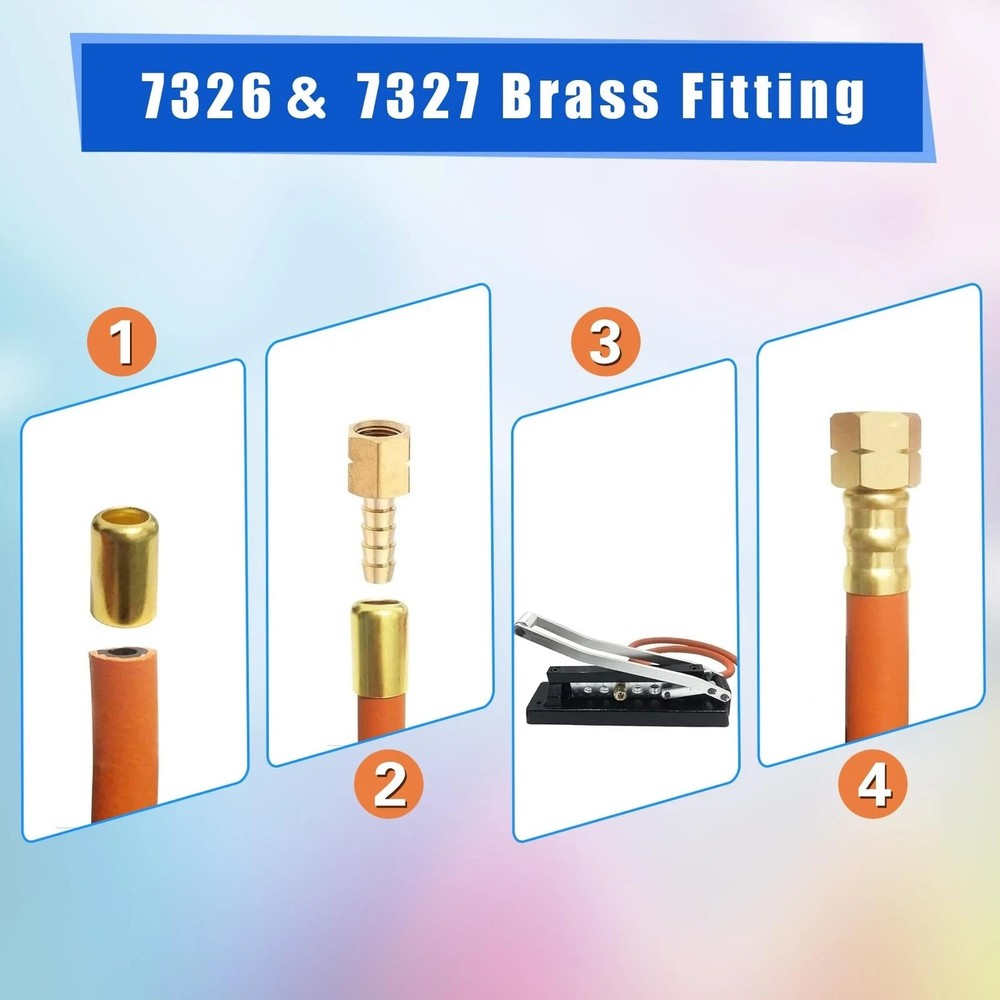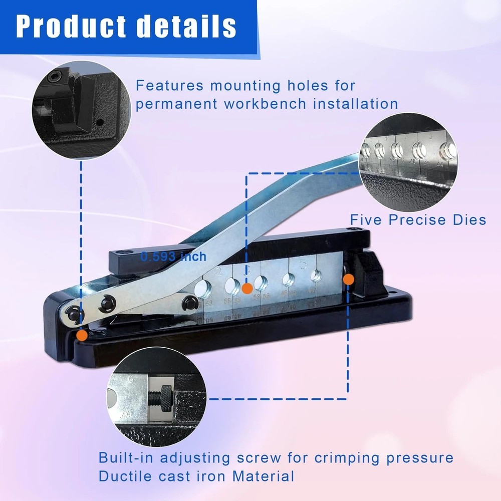Heavy Duty Standard Hose Crimper, 3/8 Air Hose Repair Kit with Crimper 50 x 0.593" Id & 50 x 0.656" Id–Fits 1/4", 5/16", 3/8" PVC, Ferrule Crimping Tool Kit (50Pk), Air Hose Crimping Tool Product Details Brand: YHUER Color: Gold Handle Material: Polyvinyl Chloride (PVC) Grip Type: Ergonomic Handle Type: Plastic Brand: YHUER Color: Gold Handle Material: Polyvinyl Chloride (PVC) Grip Type: Ergonomic Handle Type: Plastic Manufacturer: Heavy Duty Standard Hose Crimper Item Weight: 8.6 pounds Package Dimensions: 13.78 x 5.28 x 4.88 inches Item model number: Heavy Duty Standard Hose Crimper Material: Steel, PVC Handle/Lever Placement: Stationary Usage: Workshop and industrial environments, hose repairs, mechanics, welders, DIY projects, garden hose repairs, hydraulic line repairs Included Components: 50 x F7326 and 50 x F7328 Batteries Required?: No Date First Available: June 24, 2025 [Durable Construction for Longevity] Our heavy duty ferrule crimping tool is meticulously engineered using heat-treated steel molds and ductile iron, ensuring exceptional strength and durability. With a thickened mold frame and reinforced hinge points, this heavy duty hose crimper is designed for reliable performance in high-frequency workshop and industrial environments. [Versatile Crimping Capabilities] This hose crimping repair tool features five precision interchangeable dies sized at 0.44", 0.48", 0.53", 0.58", and 0.63". Heavy duty standard hose crimper with 5 dies effectively handles a variety of hose types including 5/16" One Braid, 5/16" Two Braid, 13/64" One Braid & 13/64" Two Braid 1/4" One Braid PVC and rubber hoses, for air hose repairs or other applications. [Comprehensive Repair Kit Included] Each purchase of our air hose repair kit comes complete with a thorough instruction manual and 100 brass ferrules (50 x F7326 and 50 x F7328). These ferrules are ideal for various projects, ensuring you have everything you need for effective hose repairs right at your fingertips. [Portable and Easy to Use] Designed for flexibility, the air hose repair crimper tool can be permanently mounted on your workbench or used on-the-go. Standard hose crimping tool built-in adjustable screw allows precise control over crimping pressure, making it suitable for both oversized and undersized hoses, perfect for mechanics, welders, and DIY enthusiasts alike. [Universal Compatibility and Safety Features] The heavy-duty bench crimper is compatible with most hose brands and types, from garden hoses to hydraulic lines. For safety, always ensure the adjustment screw is set correctly to avoid over-crimping. This hose crimping repair tool offers peace of mind for professionals and hobbyists needing reliable hose repair solutions.