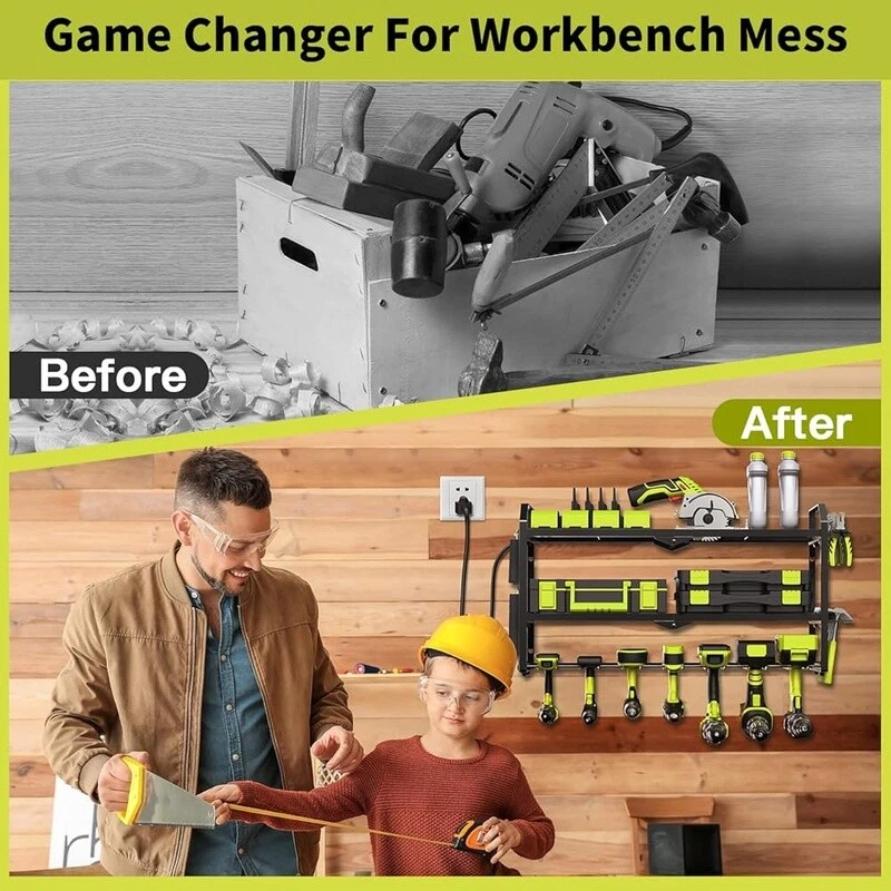You may also like Tool Organizer Wall Mount 7 Drill Holders Heavy Duty Garage Storage Utility Rack 49.39 USD 51.99 USD Free shipping 5% off 2 Drawer Tool Box Portable Storage Small Parts Organizer Stacking System Resin 49.36 USD 51.96 USD Free shipping 5% off Heavy Duty Toolbox 19 In W/ Lockable Lid Organizers Removable Tray Eye Plastic 18.96 USD 19.96 USD Free shipping 5% off Heavy Duty Tool Organizer Wall Mount 4 Layer Power Tool Rack 8 Drill Holder New 70.66 USD 74.38 USD Free shipping 5% off 34 Compartment Durable Plastic Tool Organizer Box Double Sided Screw Storage New 33.85 USD 35.63 USD Free shipping 5% off Stack-n-Roll Tool Box W/ Two Drawers Customizable Dividers Portable Storage New 49.36 USD 51.96 USD Free shipping 5% off New Heavy Duty 19inch Plastic Toolbox W/ Lid & Removable Tray Organizers Storage 18.96 USD 19.96 USD Free shipping 5% off Heavy Duty 19 In Toolbox W/ Lid Lockable Black New Removable Tray Organizers Eye 18.96 USD 19.96 USD Free shipping 5% off About this item MULTI-PURPOSE WALL MOUNT POWER TOOL ORGANIZER: Perfect storage solution tool to turn your mess workbench or wasted wall space into a tidy and high efficiency working place. It’s a perfect choice for keeping the garages, workshops or sheds items well organized and within easy reach. Also, an amazing christmas or father's day gift for men HEAVY DUTY & STURDIER: Built with premium thickened heavy-duty steel metal materials and high-temperature baking paint process, each tool shelf is durable, rustproof and scratch-proof. No need to worry about broken weld, drill holders break or uneven frame issues UPGRADED DESIGN: The power tool organizer wall mount adopts the latest high-capacity design, the height of the mid-tier shelf is 7 inch, which is enough to place more large tools. Besides, Attached power strip has overload protection, which is UL and FCC certified, you can charge everything right in the rack and avoid searching for sockets 150-POUND BEARING WEIGHT: Tested by professional institutions, the power tool organizer gives ultra-strong reliability with up to 150 lbs of bearing weight after proper installation. Included expansion bolts for greater load bearing, without any shelf breaking or annoying slipping HASSLE-FREE INSTALLATION: Along with your new power tool organizer with charging station and screws & anchors needed to mount it securely, you will receive extra screws, two small tool organizers and bag for place screwdriver/plier/hammer. Also, we offer professional, clear step-by-step manuals that allow everyone easily install it in just minutes Material: Alloy Steel Color: Black Special Feature: Drill bit storage, Tool organizer bag, Hammer storage rack, Screwdriver storage rack, Handheld tool storage, Battery holder storage See more Product Dimensions: 26. 37"D x 7. 87"W x 14. 14"H Shelf Type: Hanging Shelf You may also like Digital Rice Cooker 10 Cup Multi Cooker Steamer Keep Warm Auto Oatmeal Non Stick 61.09 USD 64.31 USD Free shipping 5% off Night Stand W/ Charging Station 4 Drawer Dresser Bedroom Storage Organizer New 67.92 USD 71.49 USD Free shipping 5% off 6FT Pre-Lit Artificial Palm Tree W/ 210 Multi-Color LED Lights Holiday Decor New 97.56 USD 102.69 USD Free shipping 5% off Ergonomic High Back Leather Executive Desk Chair NEW Home Office Computer Chair 111.14 USD 116.99 USD Free shipping 5% off Cutting Board Set of 3 Dishwasher Safe Non Slip Juice Groove Easy Grip Kitchen 22.07 USD 23.23 USD Free shipping 5% off Lightweight Beach Tent Canopy UPF 50 Portable Shelter Family Outdoor Activities 92.39 USD 97.25 USD Free shipping 5% off Portable Countertop Ice Maker Self-Cleaning Efficient 26lbs Daily Noise-Free New 113.41 USD 119.38 USD Free shipping 5% off 6 Inch CBN Grinding Wheel 180 Grit Steel Wheel Bench Grinder Tools Sharpening US 93.85 USD 98.79 USD Free shipping 5% off 60L Slim Laundry Hamper Wicker Design Portable Durable Plastic Lid Storage New 49.39 USD 51.99 USD Free shipping 5% off 7 Abrasives Knife Sharpener Set Carbon Steel Fine 3 Piece W/ Carrying Case Hot 98.74 USD 103.94 USD Free shipping 5% off 32x32x63 Hydroponic Grow Tent High Reflective Mylar Lightproof W/ Window New 74.09 USD 77.99 USD Free shipping 5% off Wooden Heavy Duty Indoor Gun Racks Shotgun Display Rack 12 Rifle Organizer Stand 81.5 USD 85.79 USD Free shipping 5% off