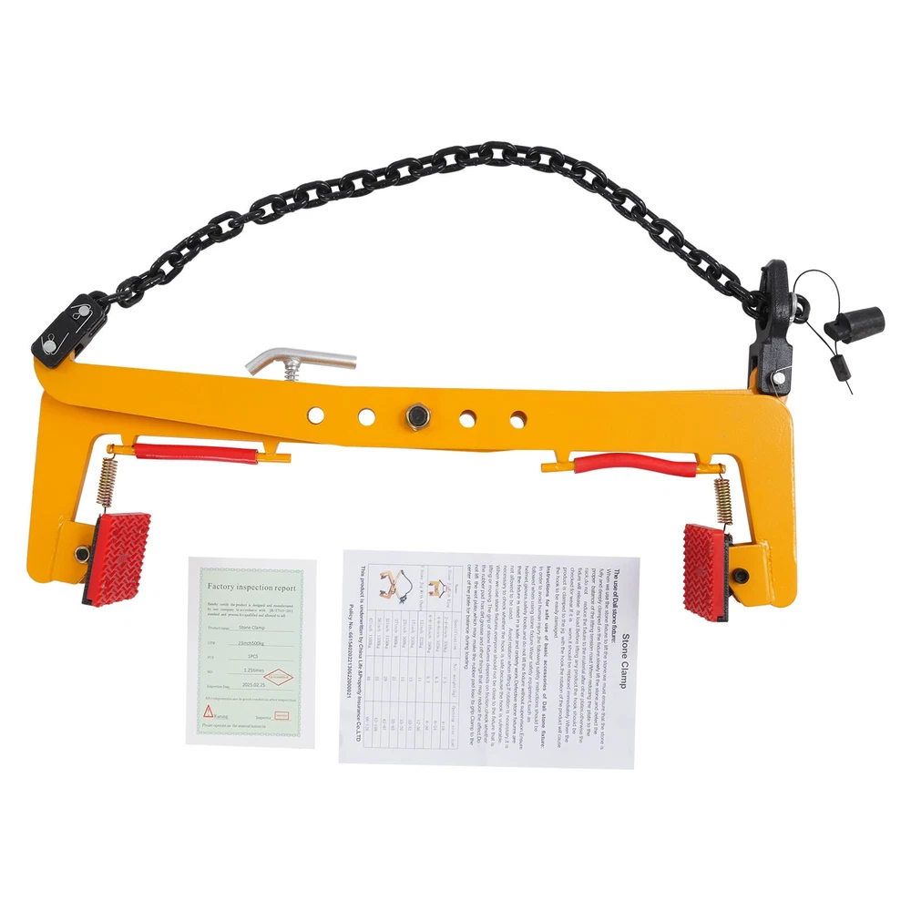 Heavy Duty Stone Lifting Clamp 500kg1102.31lbs Stone Lifting Clamp Yellow Black Description This finely crafted stone lifting clamp is made of high-strength alloy steel, ensuring a firm grip while being durable and corrosion-resistant . The sturdy structure and strong load capacity make this stone lifting clamp suitable for industries such as shipbuilding, transportation, and machinery. You can adjust its opening width according to the size of different stones. Key Features Build to Last: Made of alloy steel with a laser cutting process, this product is rust-resistant , wear-resistant , and sturdy, ensuring your long-term use. Strong Load Capacity: Premium material and sturdy structure make this product capable of lifting up to 1102.31 lbs , allowing you to use it with peace of mind. Easy to Use: You can adjust its opening width (12.99-27.56 inches) by adjusting the nut, making it easy to lift and transport different sizes of stone. Thoughtful Design: The polyurethane rubber pad with concave-convex textur e prevents the stone plate from slipping and causing damage, providing increased stability. Ready to Use: This product does not need assembly, and you can use it directly upon receiving it, saving you time and labor. Simple Cleaning: It has a smooth surface and a simple structure, so you only need to wipe the dust with a towel regularly. Ideal Gift: It is an ideal gift for friends who work in heavy lifting and transporting stones, bringing them convenience in their work. Customer Service: We stand behind all our guests and look forward to assisting you with your purchase. It is our pleasure to answer your confusion and questions. The end of the story between us is definitely not "we sell and you buy". Details Practical Chain: It allows this product to be hung on excavators or similar machinery. It comes with a chain adjuster, you can remove the safety plug to adjust the lifting chain length, and reinsert it to secure the chain. The silver chain ring prevents the lifting chain from slipping, providing dual protection during lifting operations. Smooth Edges: The rounded and smooth edges not only add to the aesthetics of the product but also improve the safety of use. Application It can be used for vertical lifting and transporting stones. It is suitable for grasping parallel, flat, and non-tapered concrete components such as curbstones, paving slabs, block steps, marble, granite, concrete slabs, and hollow bricks. It is suitable for the shipbuilding industry, chemical industry, transportation industry, machinery industry, etc. Specifications Material: Alloy Steel, Polyurethane Rubber Process: Laser Cutting Color: Yellow, Black Style: Modern Load Capacity: 500kg/1102.31lbs Product Height: 19.5cm/7.68in Opening Width: 33-70cm/12.99-27.56in Package Size: 75*30*11cm/29.53*11.81*4.33in Gross Weight: 15.8kg/34.83lbs Net Weight: 15.01kg/33.09lbs Package Included 1* Stone Lifting Clamp 1* English Manual Notes Please use this product within the load-bearing range. Out of safety considerations, please do not pass underneath the clamp or put your hands or feet into the clamp while working. Regularly check the nut and all connecting parts for signs of wear or looseness. If any abnormality is found, repair or replace them immediately. During operation, please make sure the clamp is close to the center of gravity of the slab to prevent the slab from tipping or falling due to uneven force. Please lift and lower the slab smoothly to avoid violent shaking. Excessive loads are prohibited and operations that may cause the stone to fall off, such as diagonal pulls, impacts, or sharp turns are prohibited. Please allow the slight color difference caused by the shootin g light and 1-3cm error due to manual measurement, and make sure you do not mind before you order. Payment Delivery details Terms of sales About us Contact us Payment We accept ebay payment 。 Fees such as import duties, taxes are not included in the item price or shipping costs. These charges are the buyer's responsibility. Delivery details Shipping: 2-9 working days to: USA Terms of sales We maintain high standards of excellence and strive for hundred percent customer satisfaction. Feedback is very important to us. We hope that you contact us immediately before you give neutral or negative feedback, so that we can address your concerns. It is impossible to address issues if we do not know about them! About us Your satis faction is our ultimate goal. We work hard to earn your trust and future business. Our certified technicians have tested each item before shipping. The unit comes with 1 year limited warranty on all manufacturing defects. a) If you receive a defective item, you may return it or ask for a discount. Please contact us within 14 days after you receive the package. b) What you returned must be intact and in its original packaging as re? u. Customer is responsible for shipping costs of the returned item. c) We will cover the cost of shipping back t with the shipping rate indicated in the registration page. We will send you a new unit or refund the full payment you paid. Thank you. Contact us Business Hour Business Hour: Monday To Friday: 8:30 AM to 5:00 PM (Beijing China time) Due to time zones, our reply to your questions may not be immediately. But within above working time, we will reply your email within 24 hours. If it's non-workdays, please kindly be patient and wait till Monday. Please contact us with ebay message. Please feel free to contact us if you have any questions. Monday To Friday: 8:30 AM to 5:00 PM (Beijing China time) Due to time zones, our reply to your questions may not be immediately. But within above working time, we will reply your email within 24 hours. If it's non-workdays, please kindly be patient and wait till Monday. Please contact us with ebay message. Please feel free to contact us if you have any questions. Process Laser Cutting Style Modern Load Capacity 500kg/1102.31lbs Product Height 19.5cm/7.68in Op