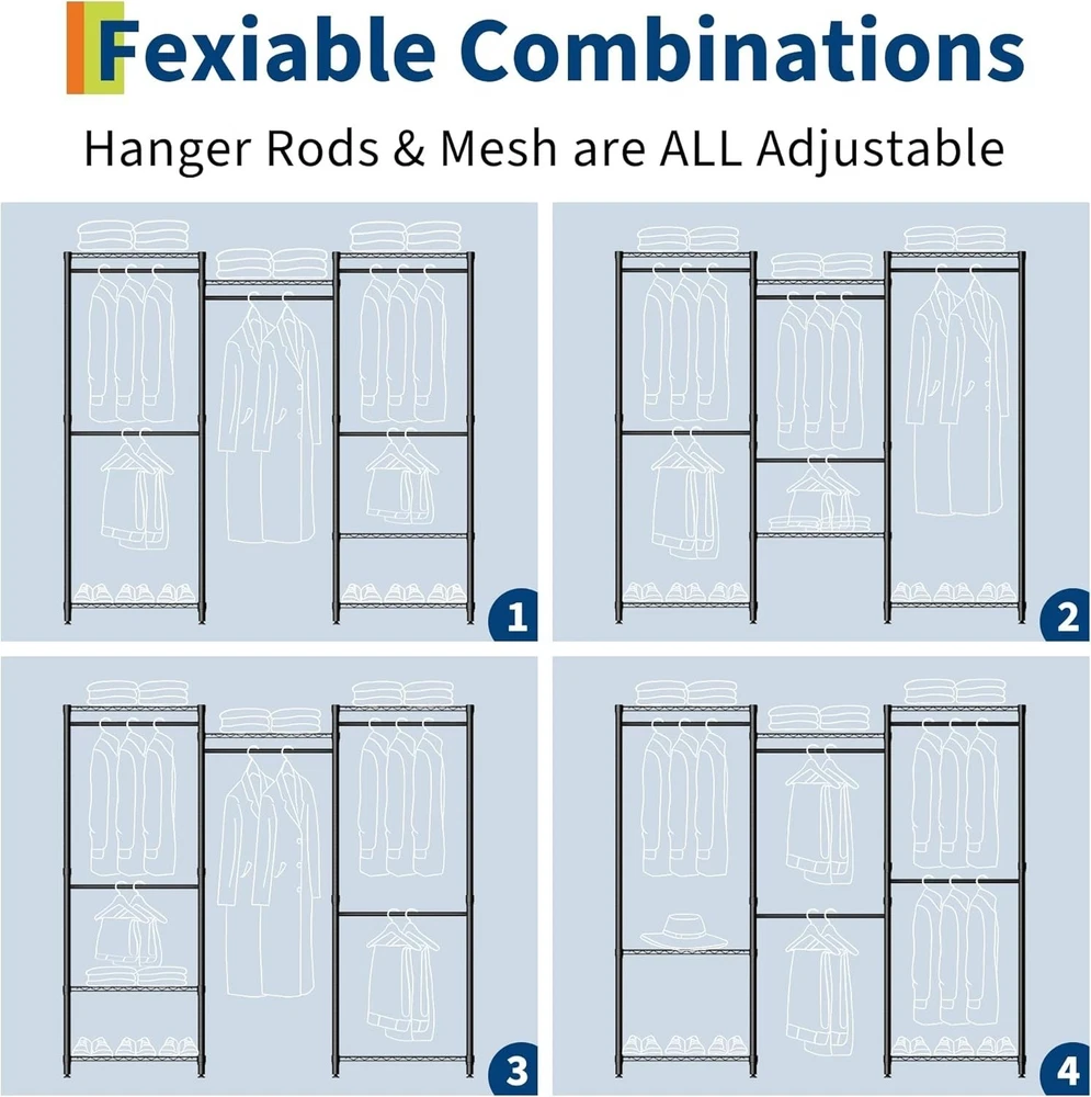Heavy Duty Storage Clothes Rail Rack Garment Hanging Stand Open Wardrobe Shelf About this item Large Clothes Storage Space: Boasting dimensions of 76.5"H x 67.6"L x 15.5"W, this clothes rack is designed to maximize your storage capacity. It features FIVE dedicated hanging zones tailored for clothes of different lengths, perfect for hanging suits, coats, long dresses, jackets, pants, shirts, or other heavy garments, paired with robust metal wire shelves ideal for stowing shoes, bags, and storage boxes. Sturdy and Strong Construction: Crafted with thickened metal poles (19.1 mm diameter) and reinforced V-shaped wire shelves, this heavy-duty clothes rack delivers exceptional sturdiness and load-bearing capacity—supporting up to 1430 lbs without easy deformation. The durable powder-coated finish enhances its performance by making the portable closet water-resistant and rust-resistant, ensuring reliable, long-lasting use in various environments. Customizable Storage Configuration: The adjustable shelves and hanger rods of this closet organizer can be repositioned or removed in just minutes. This flexibility allows you to accommodate clothes of different lengths, cater to specific storage requirements, and adapt to seasonal wardrobe changes. Maximize your available space and create a cleaner, more efficient organizing environment with this practical storage solution. Versatile for Any Room: With its sleek, neutral design, this freestanding clothing rack seamlessly blends into any room decor. It is perfect for bedrooms, entryways, living rooms, cloakrooms, walk-in closets, and laundry rooms. Serve as a large wardrobe closet or a multi-functional storage unit—its versatility makes it a great fit for any space in your home. Quick Assembly: No more hassle with complicated assembly! This clothing racks for hanging clothes can be easily put together in just 10 minutes with clear, step-by-step instructions. Additionally, the thoughtful floor-protecting design ensures your floors stay unscratched, making this heavy-duty wardrobe rack a practical choice for home organization. Payment Delivery details Returns details Feedback Payment We accept Payoneer only. All major credit cards are accepted through secure payment processor PayPal. Payment must be received within 7 business days of auction closing. If you have bought multiple items from me, you can send me one payment for all the items instead of paying for them individually. When you click the Pay Now button, eBay will automatically determine if there are other items you have won or purchased from me and will combine them for your review. NOTE: Import duties, taxes and chargers are not included in the item price or shipping charges. These charges are the buyer's responsibility. Please check with your country's customs office to determine what these additional costs will be prior to bidding buying. Delivery details 1. We will delivery out at the handing time when we receive the payment. 2. The delivery time is 3-5 business days to US by usually time.The parcel maybe delay 1-2day of the weekend.Due to the bad weather,Holidays,Hot Season ect.the parcel maybe delay,If you have any problems,mssage us,we will try our best to solve it. 3. We ship to your eBay address. Please make sure your eBay address is correct before you pay. 4. If you want to change the shipping address,message us before our send out. 5. We cannot deliver your order if your state is PR. Returns details 1. If you donot receive the items at the delivery time,the parcel has broken/missing,Please message us before you open case/return,we will try our best to solve it. 2. We offer a 30 day return policy from checkout winning date. 3. An RMA number is required for all returns. Message us for return instructions. Items Returned without a RMA number will not be processed. 4. Items defective upon receipt must be packaged in their retail packaging as if new and returned with a detailed description of the problem. 5. Return shipping fees are not refundable. We reserve the right to decline any returns if the above guidelines are not followed. Feedback If you are not satisfied with the item for any reason, please do not quick to leave negative/neutral feedback even open request and case without any communication with us. We devote ourselves making EVERY CUSTOMER in 100% Satisfactory and resolve any problem. Thank you for your understanding and recognition,we are always leave positive feedback to all our customers. Reply: All replies will be sent to your email box, if you do not get response within 24 hours (Sat. & Sun. excluded) please check your eBay My Messages in case that our emails will be filtered automatically by your settings. Color Black UPC Does not apply Material Metal Item Length 67.6 IN Colour Black Brand Unbranded Mounting Free Standing Department Adults Type Clothes Rail Rack Assembly Required Yes Item Height 76.5 IN Features Adjustable, Durable, Heavy Duty Item Width 15.5 IN