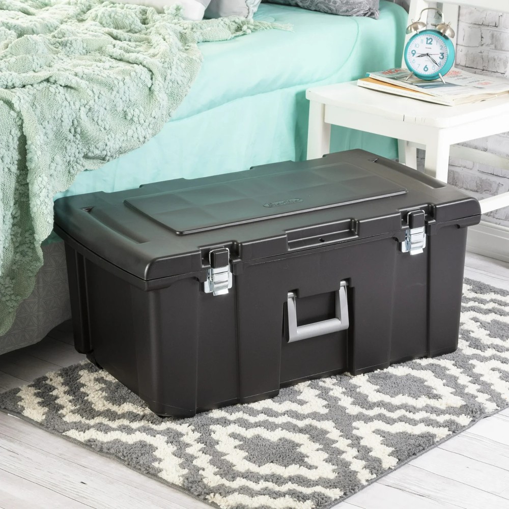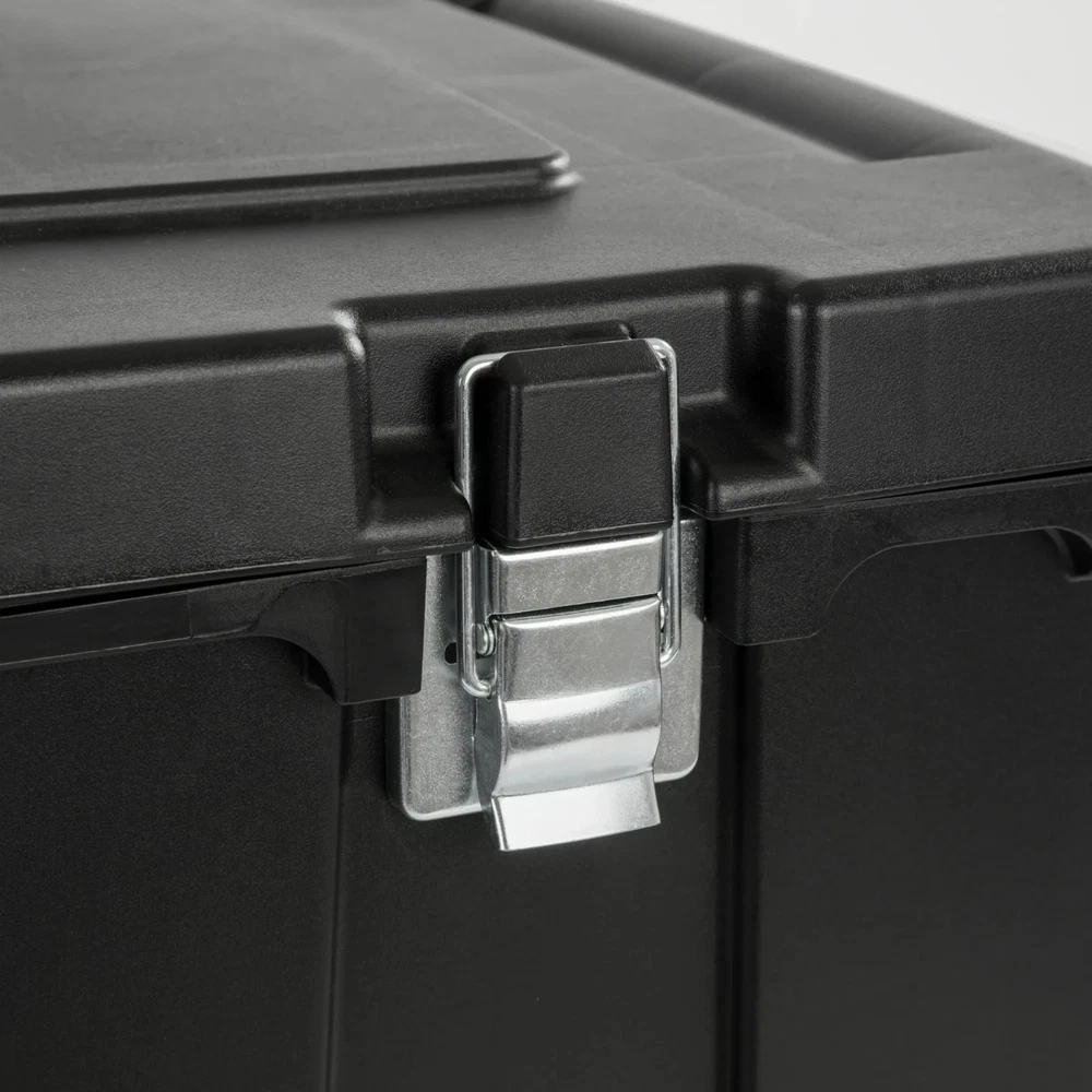 Heavy Duty Storage Trunk with Wheels Lockable Plastic Footlocker Black