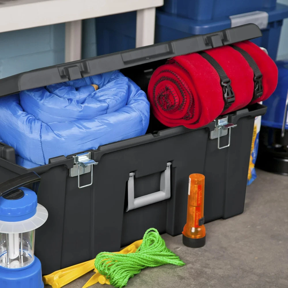 Durable Heavy-Duty Storage Solution for Home, Travel, or Dorm Use! Keep your belongings secure and organized with this rugged plastic storage trunk . Designed with built-in wheels and side handles , it’s easy to move—even when full. The lockable lid offers extra protection, perfect for dorms, garages, or camping trips. ✨ Features: Heavy-Duty Build – Made from tough, durable plastic for long-lasting use Lockable Lid – Add a padlock for secure storage Easy Mobility – Built-in wheels and side handles for transport Spacious Interior – Great for clothes, tools, or seasonal storage Multi-Purpose Use – Perfect for college dorms, garages, or travel