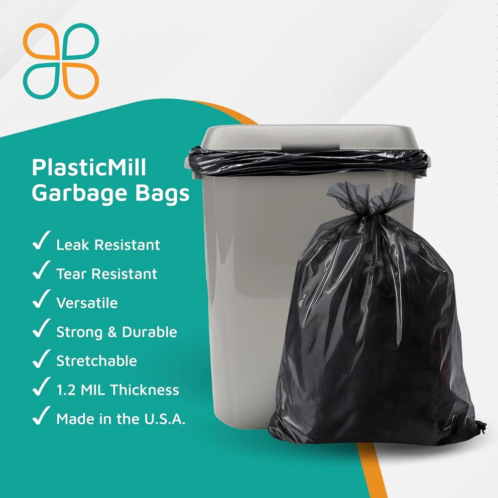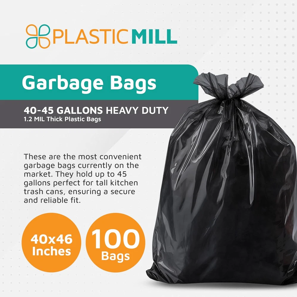 Store New Arrivals Add to Favorite View Feedback Contact Heavy Duty Trash Bags - Black Garbage Bags - Plastic Trash Bags - Tall Trash Bags, Trash Can Liners - 40-45 Gallon Large Kitchen Trash Bags, 1.2 Mil, 40"X46" (100-Count) Description Item model number PM-4046-12-B-100 Unit Count 100.0 Count Batteries Required? No Item Form Bag Capacity 45 Gallons Number of Items 100 Item Package Quantity 100 Color Black Part Number PM-4046-12-B-100 Material Plastic Item Weight 15.64 pounds Batteries Included? No Material Feature Disposable Recommended Uses For Product Storage,Garbage Bags Is Discontinued By Manufacturer No Scent Unscented Package Dimensions 16.22 x 10.63 x 7.09 inches Size 1.2 Mil/100 Bags Size & Fit: 40-45 gallon large trash bags, measuring 40" x 46", perfect for tall kitchen trash cans, ensuring a secure and reliable fit. Thick & Durable: Made from 1.2 mil low-density plastic, these bags are designed to handle heavy loads, resisting punctures and tears. Multi-Purpose: Great for yard waste, lawn debris, and outdoor events, as well as for storage and moving oversized items. Secure Fit: Designed to fit township, municipal, and city outdoor rollaway cans securely, ensuring reliable use without slippage. Conveniently Packed: The bags are packed to ensure easy access and efficient waste management. Product Description About PlasticMill We know that the trash is one of your least favorite things to keep busy with, so we're hard at work making sure that you can spend less time with your garbage and more time with your favorite things. While we’re researching and developing product solutions we hope you enjoy our quality, convenient, user-friendly products like trash bag alternatives. 1 Home and Office Use 2 Commercial Use 3 Outdoor Use PlasticMill Garbage Bag Recycling Garbage Disposal Covering Furniture Home Projects PlasticMill Contractor Bag Yard Clean-up Construction Needs Trash Collection Garbage Bag 1 Garbage Bag 2 Contractor Bag Available in different Gallon Colors Dimensions Thickness GARBAGE BAGS Add to Cart Add to Cart Add to Cart Add to Cart Add to Cart Customer Reviews 4.2 out of 5 stars 53 4.1 out of 5 stars 55 4.4 out of 5 stars 198 4.7 out of 5 stars 79 4.6 out of 5 stars 5 Price $36.07 $ 36 . 07 $47.95 $ 47 . 95 $59.98 $ 59 . 98 $35.27 $ 35 . 27 $57.11 $ 57 . 11 Dimension 24"x23" 24"x31" 67"x79" 61"x 68" 33"x48" Capacity 7-10 Gallon 12-16 Gallon 100 Gallon 95 Gallon 42 Gallon Color Black Clear Black Clear Orange Thickness 1.2 Mil 1 Mil 1.3 Mil 3 Mil 3 Mil Density Low Density Low Density Low Density (Thick Material) Low Density (Thick Material) Low Density ABOUT US We offer the best prices around on high quality products. Our E-store includes media such as books, movies, music and games while offering electronics, toys, sporting apparel, clothing, tools, general home, garden items and more. SHIPPING We are always working hard to ensure your package arrives as soon as possible. Please understand that some factors like weather, high postal traffic, and the performance of shipping companies are outside of our control. We offer free shipping to the lower 48 states and ship within 2 business days of payment, usually sooner. We do not accept P.O. Boxes. Please provide a physical address. For shipping outside of the continental USA, we only use eBay's Global Shipping Program.The item is shipped to KY and then sent to the rest of the world. International customers are responsible for all duties and taxes. Continue to check out in order to calculate costs for shipping the item to your country. Messages regarding eBay's Global Shipping Program MUST be directed at eBay EXCLUSIVELY. RETURNS We offer a 30-Day Return Policy on items which you are not completely satisfied with. You have the option for a full-refund or an exchange of the item. No returns are available on items shipped outside of the USA. PAYMENT We accept PayPal. CONTACT US This page content is yet to come Please ad us to your favorite seller and visit again later Thank You CUSTOMER SATISFACTION We try our very best to make sure every customer is completely satisfied. If there's a problem, message us! We're happy to help. WE ACCEPT Copyright © 2021 AutoDS. | All Rights Reserved