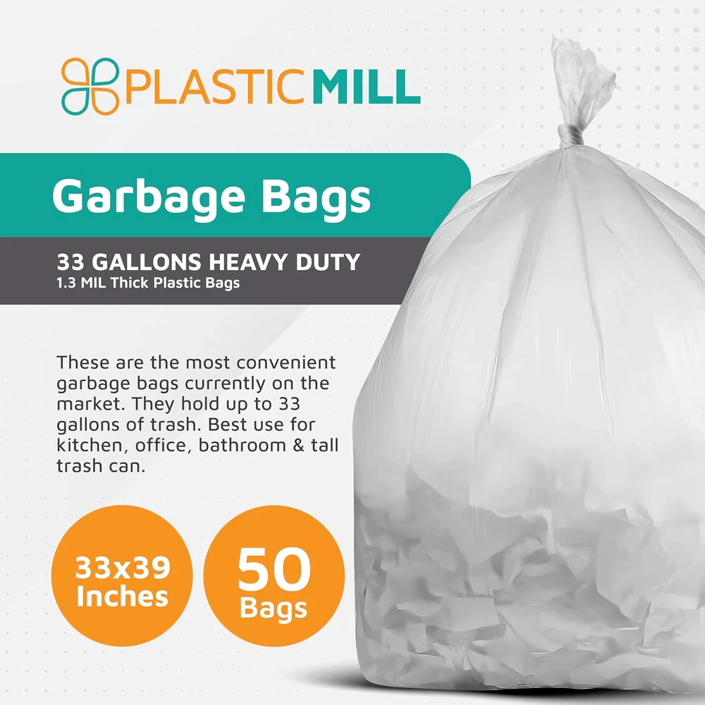 Store New Arrivals Add to Favorite View Feedback Contact Heavy Duty Trash Bags - Clear Garbage Bags - Plastic Trash Bags - Tall Trash Bags, Trash Can Liners - 33-Gallon Large Kitchen Trash Bags, 1.3 Mil, 33"X39" (50-Count) Description Item model number PM-3339-13-C-50 Unit Count 50 Count Capacity 33 Gallons Number of Items 50 Color Clear Scent Unscented Material Plastic Country of Origin USA Material Feature Disposable Recommended Uses For Product Storage,Garbage Bags Is Discontinued By Manufacturer No Item Form Bag Package Dimensions 10.04 x 6.5 x 6.26 inches; 6 Pounds Size & Fit: 33-gallon large trash bags, measuring 33" x 39", perfect for tall kitchen trash cans, ensuring a secure and reliable fit. Thick & Durable: Made from 1.3 mil low-density plastic, these bags are designed to handle heavy loads, resisting punctures and tears. Multi-Purpose: Great for yard waste, lawn debris, and outdoor events, as well as for storage and moving oversized items. Secure Fit: Designed to fit township, municipal, and city outdoor rollaway cans securely, ensuring reliable use without slippage. Conveniently Packed: The bags are packed to ensure easy access and efficient waste management. Product Description About PlasticMill We know that the trash is one of your least favorite things to keep busy with, so we're hard at work making sure that you can spend less time with your garbage and more time with your favorite things. While we’re researching and developing product solutions we hope you enjoy our quality, convenient, user-friendly products like trash bag alternatives. 1 Home and Office Use 2 Commercial Use 3 Outdoor Use PlasticMill Garbage Bag Recycling Garbage Disposal Covering Furniture Home Projects PlasticMill Contractor Bag Yard Clean-up Construction Needs Trash Collection Garbage Bag 1 Garbage Bag 2 Contractor Bag Available in different Gallon Colors Dimensions Thickness GARBAGE BAGS Add to Cart Add to Cart Add to Cart Add to Cart Add to Cart Customer Reviews 4.2 out of 5 stars 53 4.1 out of 5 stars 55 4.4 out of 5 stars 198 4.7 out of 5 stars 78 4.6 out of 5 stars 5 Price $36.07 $ 36 . 07 $47.95 $ 47 . 95 $59.98 $ 59 . 98 $35.27 $ 35 . 27 $57.11 $ 57 . 11 Dimension 24"x23" 24"x31" 67"x79" 61"x 68" 33"x48" Capacity 7-10 Gallon 12-16 Gallon 100 Gallon 95 Gallon 42 Gallon Color Black Clear Black Clear Orange Thickness 1.2 Mil 1 Mil 1.3 Mil 3 Mil 3 Mil Density Low Density Low Density Low Density (Thick Material) Low Density (Thick Material) Low Density ABOUT US We offer the best prices around on high quality products. Our E-store includes media such as books, movies, music and games while offering electronics, toys, sporting apparel, clothing, tools, general home, garden items and more. SHIPPING We are always working hard to ensure your package arrives as soon as possible. Please understand that some factors like weather, high postal traffic, and the performance of shipping companies are outside of our control. We offer free shipping to the lower 48 states and ship within 2 business days of payment, usually sooner. We do not accept P.O. Boxes. Please provide a physical address. For shipping outside of the continental USA, we only use eBay's Global Shipping Program.The item is shipped to KY and then sent to the rest of the world. International customers are responsible for all duties and taxes. Continue to check out in order to calculate costs for shipping the item to your country. Messages regarding eBay's Global Shipping Program MUST be directed at eBay EXCLUSIVELY. RETURNS We offer a 30-Day Return Policy on items which you are not completely satisfied with. You have the option for a full-refund or an exchange of the item. No returns are available on items shipped outside of the USA. PAYMENT We accept PayPal. CONTACT US This page content is yet to come Please ad us to your favorite seller and visit again later Thank You CUSTOMER SATISFACTION We try our very best to make sure every customer is completely satisfied. If there's a problem, message us! We're happy to help. WE ACCEPT Copyright © 2021 AutoDS. | All Rights Reserved