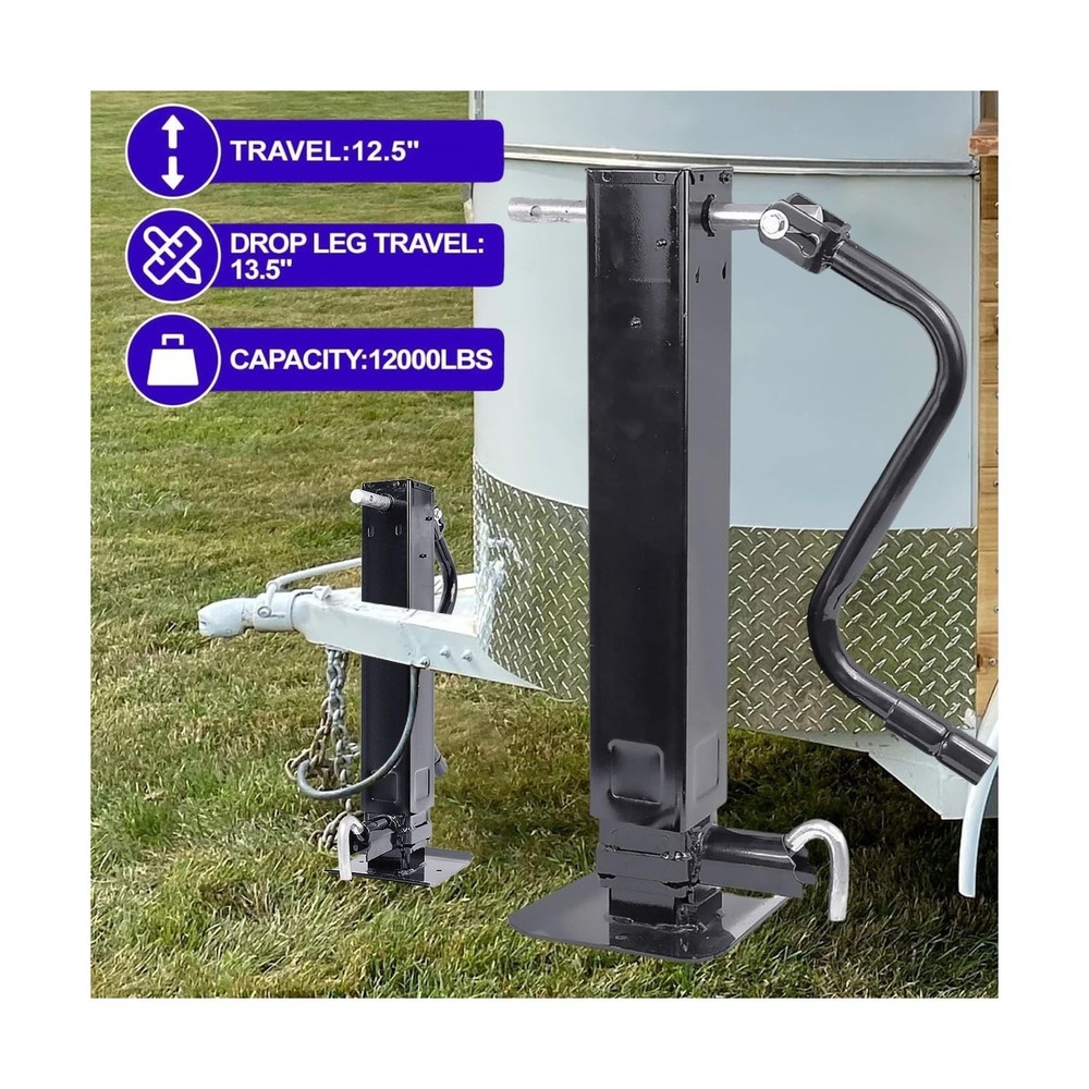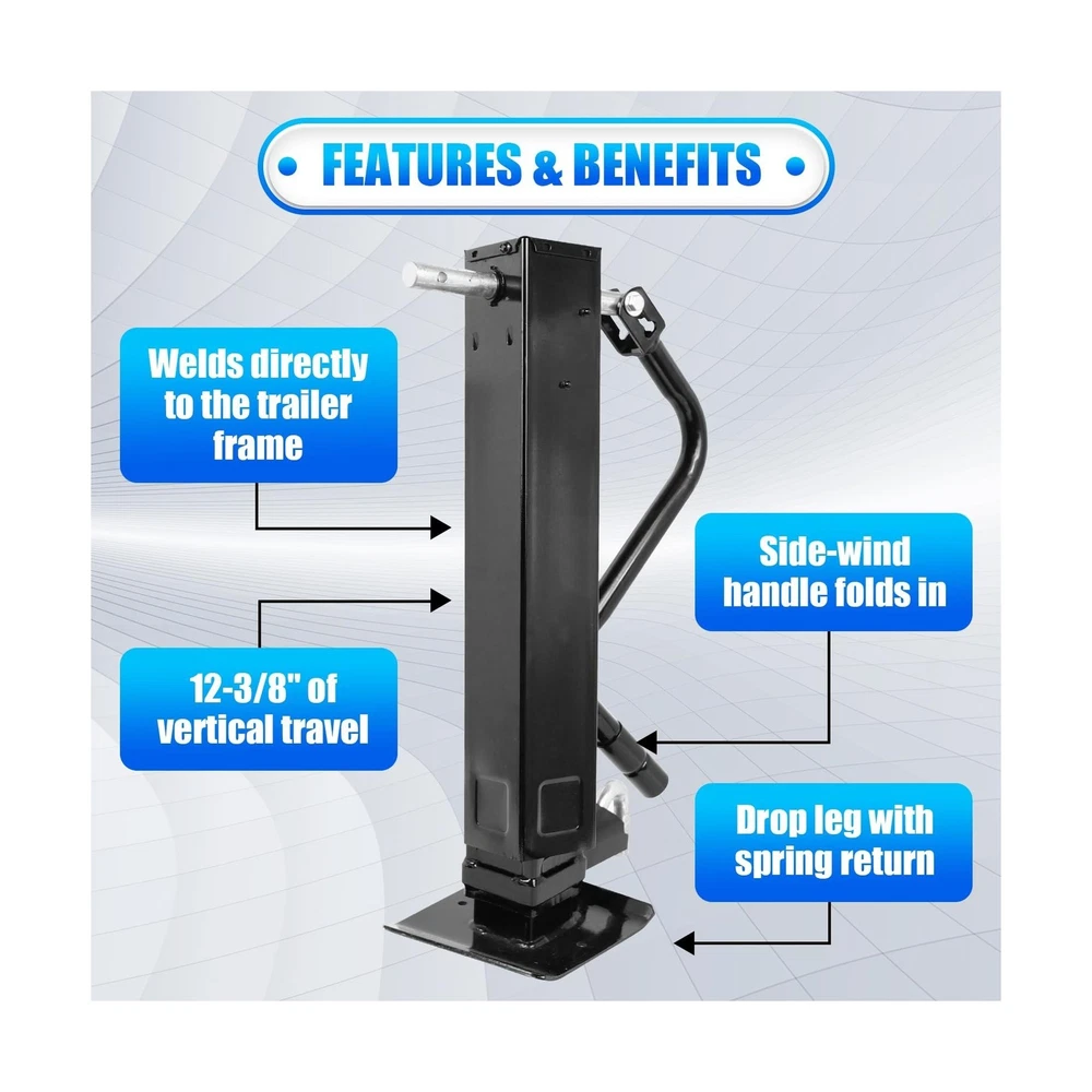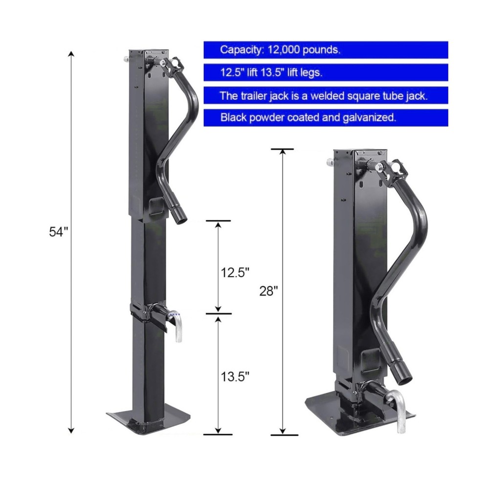 Heavy Duty Weld Square Tube Trailer Jack - 12.5" Lift 13.5" Drop Leg Travel Capacity 12000 LBS (12000lbs Side Pull pin) Description Features: 12.5" Lift 13.5" Drop leg Travel Capacity 12000 LBS YEOPGYEON Trailer Jack is a Weld On Square Tube Jack Includes mounting hardware Black powder coating and galvanizing All products are tested for reliable performance and durability Product Details: Vehicle Service Type: RV Material: Alloy Steel Load Capacity: 12000 LBS Maximum Lifting Height: 13.5 Inches Brand: YEOPGYEON Load Capacity: 12000 LBS Maximum Lifting Height: 13.5 Inches Brand: YEOPGYEON Color: Black Item dimensions L x W x H: 16 x 11 x 30 inches Automotive Fit Type: Universal Fit Manufacturer: YEOPGYEON Model: JY-TJ-56B Item Weight: 59.9 pounds Product Dimensions: 16 x 11 x 30 inches Item model number: JY-TJ-56B Manufacturer Part Number: JY-TJ Date First Available: July 24, 2023 Delivery We Do Not Ship Outside of the Continental US. Return Policy All items qualify for returns within 30 days of receipt. Seller is responsible for return shipping on any item that is not damaged. Feedback We take our reputation seriously, we buy and sell online, so we understand the value of trust. If you are unsatisfied with your order, please contact us and we will work with you to resolve it to your satisfaction.