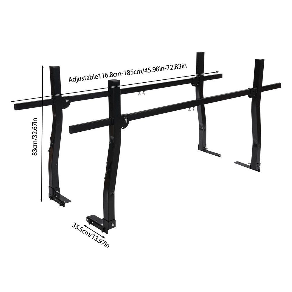 1000Lbs Universal Adjustable Carbon Steel Pick Up Truck Bed Ladder Rack Carrier Description This truck rack is made of high-quality materials and fine craftsmanship to ensure sturdiness and durability. The strong load-bearing capacity of 1000 lbs makes you feel more confident when using it. The retractable design makes it easy to install it on different sizes of trucks to expand the truck space and provide more possibilities for loading cargo. Please hurry up and purchase it to improve your trunk utilization! Key Features High-quality Material: It is mainly made of premium carbon steel, treated with welding and spraying processes, sturdy and durable, rust resistant, impact resistant, and has a long service life. Strong Load-bearing Capacity: The heavy-duty material and sturdy structure make its load-bearing capacity up to 1000 lbs, allowing you to use it confidently. Great Adaptability: The retractable crossbar allows you to adjust the length between 45.67-70.87 inches, flexibly adapting to different sizes of truck trunks. Get More Space: With our truck rack, you can expand your truck space and no longer worry about lacking storage space, allowing you to load more goods. Simple Installation: The simple structure and complete accessories make it easy and fast to install. In addition, the reserved holes on the base make it easy for you to install it directly on the truck. Easy to Maintain: The smooth surface allows you to easily remove dust and other stains with just a damp towel. Protective Package: To prevent the product from being damaged and bumped during transportation, we packed it with pearl cotton, bubble bags, and cartons to protect your products to the maximum extent possible. Customer Service: We aim to provide quality products and services. If you have any problems, please feel free to contact us. We will reply and solve the problem for you as soon as possible. Details Smooth Surface: The smooth surface without shapes and burrs will protect your hands from hurting during installation and use. Wing Nuts: The wing nut ensures a firm connection of the product and facilitates the adjustment of the width of the product, saving time and labor. Rope Hooks: The solid hook design offers a better tie-down point and provides security for tying the tools or loads. Application It is designed specifically for transporting larger and longer items that can not be loaded on regular pickup trucks, making it ideal for transporting ladders, wood, pipes, pool equipment, and more. Specifications Color: Black Material: Carbon Steel Process: Welding, Spraying Assembly Required: Yes Mounting Type: Screw Embedded Number of Items: 2 Load-bearing Capacity: 453.6kg/1000lbs Adjustable Length: 116-180cm/45.67-70.87in Product Size(W*H): 35.5*83cm/13.98*32.68in Package Size: 88*40*16cm/34.65*15.75*6.3in Gross Weight: 22.7kg/50.04 lbs Net Weight: 20kg/44.09 lbs Package Included 2* Truck Racks All Accessories for Assembly Notes Please allow the slight color difference caused by the shooting light and 1-3cm error due to manual measurement, and make sure you do not mind before you order. Payment Delivery details Terms of sales About us Contact us Payment We accept ebay payment 。 Fees such as import duties, taxes are not included in the item price or shipping costs. These charges are the buyer's responsibility. Delivery details Shipping: 2-9 working days to: USA Terms of sales We maintain high standards of excellence and strive for hundred percent customer satisfaction. Feedback is very important to us. We hope that you contact us immediately before you give neutral or negative feedback, so that we can address your concerns. It is impossible to address issues if we do not know about them! About us Your satis faction is our ultimate goal. We work hard to earn your trust and future business. Our certified technicians have tested each item before shipping. The unit comes with 1 year limited warranty on all manufacturing defects. a) If you receive a defective item, you may return it or ask for a discount. Please contact us within 14 days after you receive the package. b) What you returned must be intact and in its original packaging as re? u. Customer is responsible for shipping costs of the returned item. c) We will cover the cost of shipping back t with the shipping rate indicated in the registration page. We will send you a new unit or refund the full payment you paid. Thank you. Contact us Business Hour Business Hour: Monday To Friday: 8:30 AM to 5:00 PM (Beijing China time) Due to time zones, our reply to your questions may not be immediately. But within above working time, we will reply your email within 24 hours. If it's non-workdays, please kindly be patient and wait till Monday. Please contact us with ebay message. Please feel free to contact us if you have any questions. Monday To Friday: 8:30 AM to 5:00 PM (Beijing China time) Due to time zones, our reply to your questions may not be immediately. But within above working time, we will reply your email within 24 hours. If it's non-workdays, please kindly be patient and wait till Monday. Please contact us with ebay message. Please feel free to contact us if you have any questions. On Jun 6, 2025 at 03:13:48 PDT, seller added the following information: