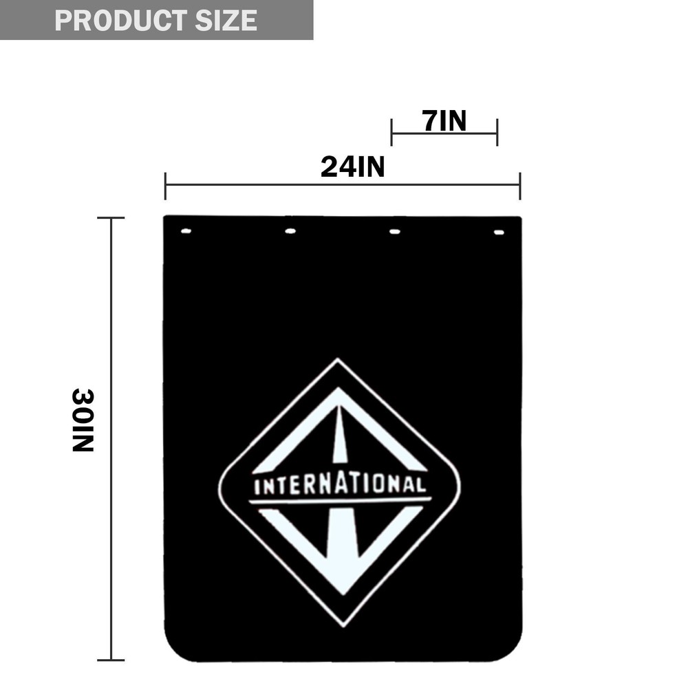 Keep your semi-truck or heavy-duty trailer looking clean and pristine with this set of two black mud flaps. Each flap measures 24 inches in width and 30 inches in length, providing ample coverage for debris and road splash. Crafted from durable plastic, these mud flaps are designed to withstand the rigors of daily use, ensuring long-lasting performance and reliability. The mud flaps feature a bolt-on attachment type for a secure fit, a painted finish for a sleek look, and are compatible with a universal fitment, making them a versatile addition to your vehicle. They're also car wash safe and washable, allowing for easy maintenance. A one-month manufacturer warranty backs these high-quality flaps, adding peace of mind to your purchase.