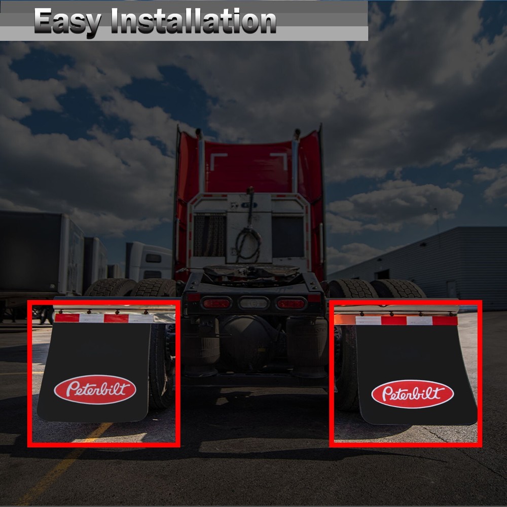 These mud flaps are a game-changer for heavy-duty trucks! The thick 3/16" plastic construction holds up against road debris while the 24x30" size gives great coverage. They install easily with bolt-on mounting and look sharp with their black painted finish. Super sturdy, keeps my trailer cleaner, and the universal fit works perfectly. A must-have for any semi owner!
