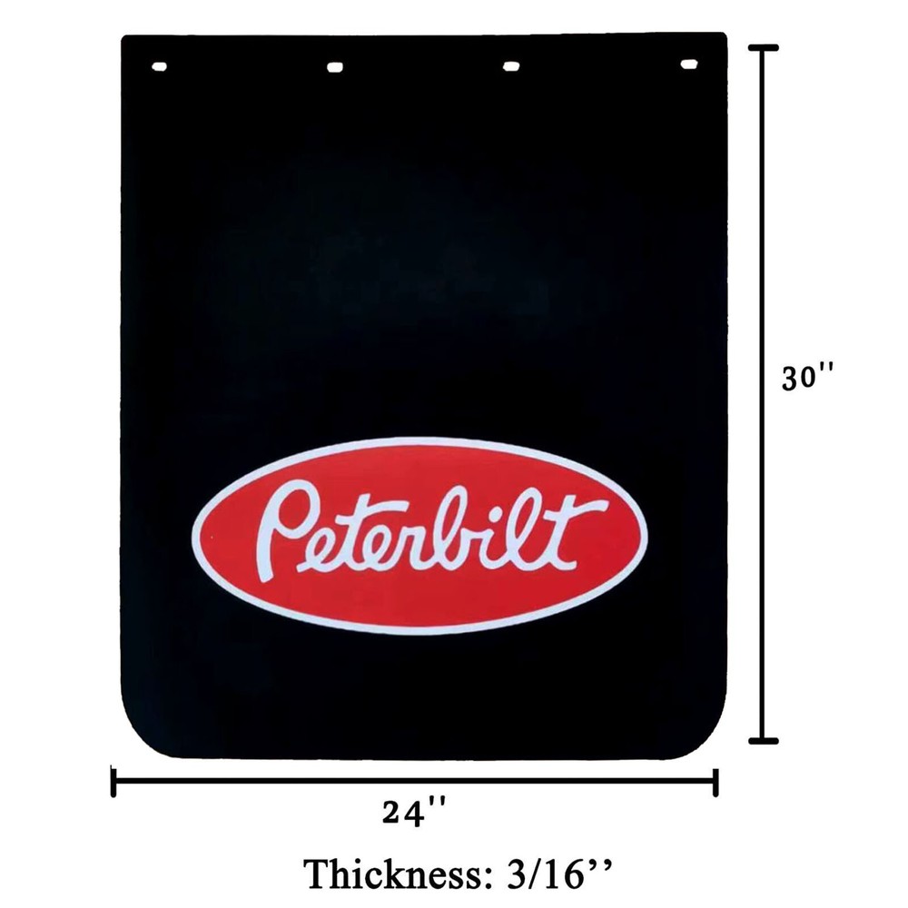 Keep your semi-truck or heavy-duty trailer looking clean and pristine with this set of two black mud flaps. Each flap measures 24 inches in width and 30 inches in length, providing ample coverage for debris and road splash. Crafted from durable plastic, these mud flaps are designed to withstand the rigors of daily use, ensuring long-lasting performance and reliability. The mud flaps feature a bolt-on attachment type for a secure fit, a painted finish for a sleek look, and are compatible with a universal fitment, making them a versatile addition to your vehicle. They're also car wash safe and washable, allowing for easy maintenance. A one-month manufacturer warranty backs these high-quality flaps, adding peace of mind to your purchase.