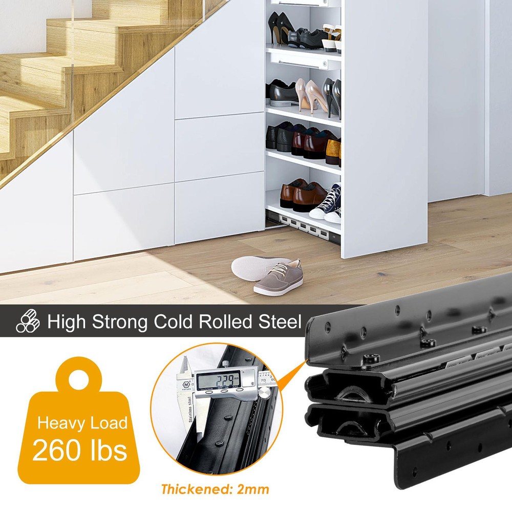 Store category Sign Up Now ! You may also like Product Description Bullet Points: Wonderfully Strong: With a heavy load capacity of up to 260lb, these undermount drawer slides are constructed from high-density, high-strength 2mm thick cold-rolled steel and industrial solid steel balls for enduring years of use, ensuring durability and strength Smooth Operating: With an electrophoretic coating process that minimizes friction and resistant, this undermount drawer slide features industrial-grade solid steel balls for quieter, smoother, and more efficient sliding. Made from rust-proof materials, it's built with durability in mind Maximized Space: The undermount drawer slides can be easily extended, giving you ample space to access everything in your drawer with ease. With a larger storage area, you can store more items than ever before, making organization simple Effortless Glide: Featuring 12 additional steel balls in the same track length and anti-collision silencers, these undermount drawer slides assure a gently sliding motion, reducing noise while being strong and less likely to jam, making every open and close more labor-saving Improved Stability: Our undermount drawer slides assure a smooth, glide-like movement for sundry cabinets, stair cabinets, and any tall or heavy storage cabinets, allowing for an effortless operating every time. With versatile compatibility, they suit a wide range of cabinets This bottom mounted drawer slide is perfect for storage cabinets. It allows for full extension and can handle a heavy load of up to 265lbs. The design minimizes friction resistance, ensuring a smooth glide each time. It's strong and not easily prone to getting stuck. A great upgrade for your cabinet needs. Specifications: Product name: Heavy Duty Drawer Slides Product size: A about 600 mm/23.62 inches, suitable for cabinet depth 650mm and up B about 800 mm/31.5 inches, suitable for cabinet depth 850mm and up C about 1000 mm/39.37 inches, suitable for cabinet depth 1050mm and up Stretching range: 600-1450/800-1850/1000-2250 mm Maximum load: about 120kg/260lbs Packing quantity: 1 pair Color: Black Track width: about 82mm/3.2inches Packing List: 2* Cabinet Drawer Slides 2 packs* Screws Notes: 1. Due to different lighting and screen settings, the item color may be slightly different from the picture. 2. Due to different manual measurements, please allow a 1-2cm difference in size. Payment Delivery details Terms of sales About us Feedback & DSRs Payment Before you palce an order, please kindly make sure that you have a paypal account. We accept PAYPAL payment only. Payment should be completed within 2 days after auction closed, or unpaid dispute will be filed for an closing auction. An unpaid case will be filled after 4 days. Delivery details We ship to your eBay address. Each package will be shipped to US by UPS Regular Parcel with tracking number. Please check your shipping address carefully before checkout, it can't be changed if order completed. All items will be shipped within 1-2 business day upon receipt of payment.Orders placed on weekend will be shipped within 3 days. If you do not receive your item in 7-10 business days.please contact us immediately for further assistance. We will be responsible for any damages or losses incurred in the shipping process. About us We maintain high standards of excellence FIVE STAR and strive for 100% customer satisfaction! Positive Feedback is very important to us. We hope that you contact us immediately Before you give us neutral or negative feedback, so that we can satisfactorily address your concerns. We promise to offer the lowest price and high quality produce. Our working time: From Monday to Friday(9:30 am to 18:00pm), we don't working on holidays ,hope you can understand and know that , thank you. Please always talk to us via ebay Message. We appreciate your business and look forward to growing our e-Bay sales with satisfied customers. Feedback Contact us If you have any questions, please feel free to contact with us by ebay Message during our business hours ( 9:30a.m. to 5:30 p.m.), or email us through eBay, we will try our best to help you to resolve it. For any presale or after-sale questions,please do feel free to email us! Due to the time difference, each email will be replied within 1 working day,and weekend will be delayed a bit. Feedback