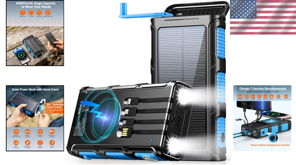 Heavy-Duty 45800mAh Power Bank: Wireless, Solar, and 5 Inputs for Your Devices ‹ › ‹ › ‹ › ‹ › ‹ › ‹ › ‹ › ‹ › ‹ › ‹ › ‹ › Heavy-Duty 45800mAh Power Bank This robust power bank combines cutting-edge technology with unmatched power capabilities, ensuring your devices stay charged, no matter the situation. Key Features: Exclusive Hand Crank Power Bank: Conveniently designed with a hand crank generator for emergency charging. Simply rotate the handle and generate power when you need it most. High Capacity: With a substantial 45800mAh premium polymer battery, enjoy multiple charges for your devices without interruption. Seven Outputs: Charge up to seven devices simultaneously with built-in output cables (iOS, USB-C, and Micro USB) and three additional output ports. Five Inputs: Recharge your power bank effortlessly with various options – USB-A input cable, iOS, and USB-C input ports. Advanced Wireless Charging: Simply place your device on the designated wireless charging area for convenient, cable-free charging. Practical Outdoor Battery Pack: Features bright dual LED flashlights with three modes (SOS/Strobe/Steady) and an integrated compass. Waterproof, shockproof, and dust-proof, it is designed for the harshest environments. Why Choose Our Power Bank? This is more than just a power bank. It is a reliable companion for adventurers, campers, and anyone needing dependable charging solutions when they are off the grid. With safety features integrated through a smart protect IC, you can charge with peace of mind. Additional Information: Your purchase includes a lifetime warranty, assuring you of its quality and durability. Our dedicated customer service team stands ready to provide assistance and answer any questions you may have within 24 hours. Choose the 45800mAh Wireless Solar Power Bank for your next adventure – where reliability, power, and convenience meet! Shipping Free & Fast Shipping - We offer free shipping to most of the USA with a normal delivery time of 3-7 days. However, due to the current situation, additional delivery time (up to 3 weeks) may be required for some items. Alternative Carriers - We may use alternative carriers (e.g. USPS, FedEx, UPS, etc.) to ensure your package arrives safely and on time. Due to the use of multiple carriers, we are unable to provide a tracking number automatically. Handling Time - Orders are processed and shipped within 1-2 business days of receiving cleared payment. Shipping Restrictions - Shipping to Alaska, Hawaii, Puerto Rico, Guam, and other US territories may incur shipping charges or delivery restrictions. Please contact us before ordering, or your order can be refunded/cancelled. State Restrictions - There may be restrictions based on your state of purchase. For example, certain items may not be shipped to California due to state regulations. Contact for Tracking Updates - If you require tracking updates or have any concerns about the delivery of your order, please feel free to contact us, and we will be happy to assist you. Return 30-Day Hassle-Free Returns - We want you to be completely satisfied with your purchase. If you are not, you can return the item within 30 days of receiving it for a full refund or exchange. Easy Return Process - To start a return, simply contact us and we will provide you with a prepaid return shipping label and detailed instructions. Restocking Fee - There are no restocking fees for returns. However, the buyer is responsible for return shipping costs if the return is not due to a seller's error. Refund Processing Time - Refunds will be processed within 5 business days of receiving the returned item in its original condition. Payment We accept all major credit cards, PayPal, and Apple Pay for your convenience. Your payment information is secure and encrypted to ensure a safe and seamless transaction. Please complete your payment within 3 days of purchase to avoid any delays in shipping. Feedback Your feedback is extremely important to us. We strive to provide the best products and customer service possible. If you are satisfied with your purchase, please take a moment to leave us a positive review. If you have any concerns or issues with your order, please contact us before leaving negative feedback. We are committed to resolving any problems and ensuring your satisfaction. Contact Us If you have any questions or concerns, please feel free to reach out to our customer support team. You can contact us through the eBay messaging system. We are available Monday to Friday, 9:00 am to 5:00 pm EST, and we will do our best to respond to your inquiry within 24 hours. Thank you for supporting our small family business! UPC: Not Set Item Height: Not Set Item Length: Not Set Item Weight: 1.5 pounds Item Width: Not Set Unit Quantity: 1 Connectivity: Micro-USB,USB-C,Wireless,USB,iOS Items Included: user manual*1,carabiner*1,goodaaa solar power bank*1,USB C to USB C charging cable,User manual,Carabiner,GOODaaa solar power bank Mounting Location: Backpack Compatible Brand: Not Set Compatible Model: Universal,iPhone 14,iPhone 13,iPhone 12,iPhone 11,iPhone X,Samsung Galaxy S23,Samsung Galaxy S22,Samsung Galaxy S21 Design/Finish: Blue Features: Shockproof,SOS/Strobe/Steady flashlights,Hand Crank generator,Flashlight,Over charging protection,Built-in cable,Wireless charging,LED flashlights,Compass,Waterproof,Dust-proof Theme: Not Set Brand: Unbranded Type: Power Bank Wireless Charging Standard: 15W Number of Ports: 7 Color: Blue Voltage: 5 V Material: Plastic Cable Length: Not Set Mounting Type: Carabiner MPN: Not Set Country/Region of Manufacture: Not Set Manufacturer Warranty: Not Set Unit Type: lb Personalize: Not Set