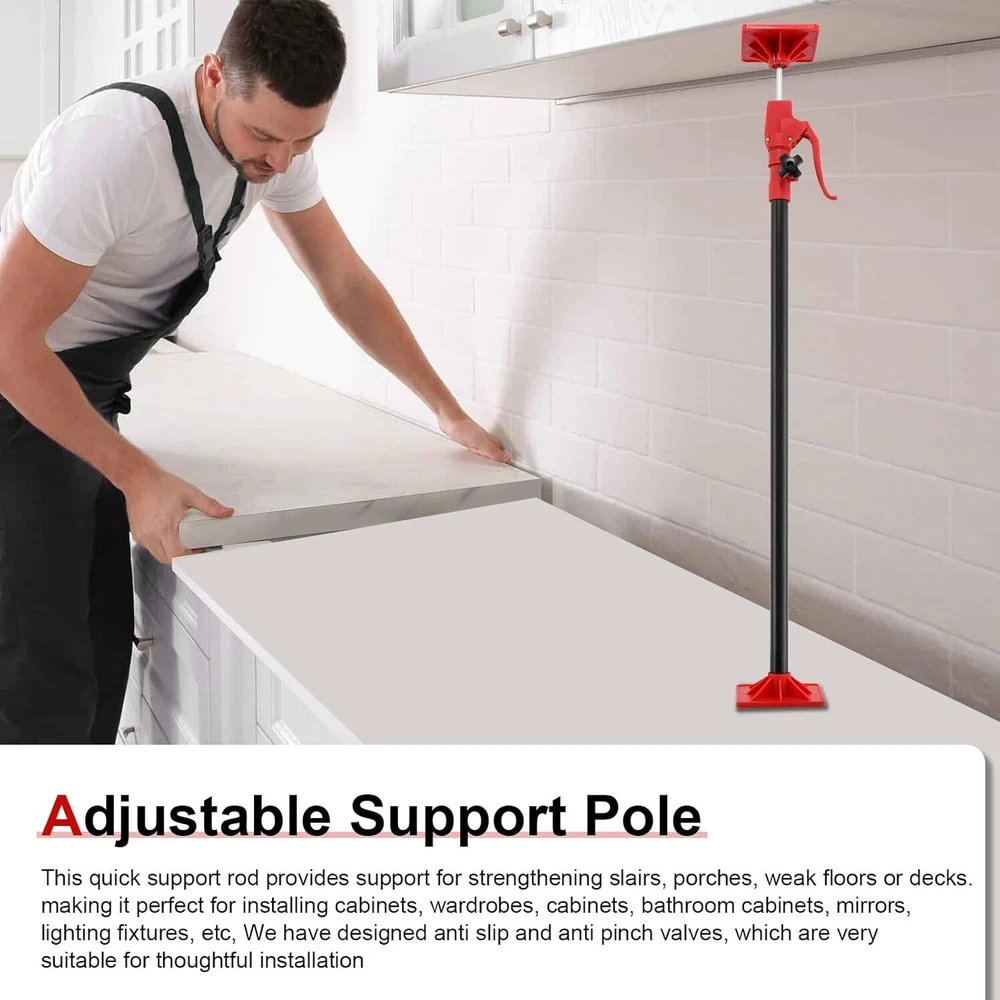 Heavy-Duty 4 PCS Cabinet Jacks | Adjustable from 45.3"-114.2" | 3rd Hand Support ‹ › ‹ › ‹ › ‹ › ‹ › ‹ › ‹ › ‹ › ‹ › ‹ › Heavy-Duty 4 PCS Cabinet Jacks Adjustable from 45.3" to 114.2" | 3rd Hand Support Home Improvement Essentials: Transform your DIY endeavors with our Heavy-Duty Cabinet Jacks, designed for versatility across a myriad of home improvement projects. Whether you are: Supporting cabinets Installing trim, decking, or shelves Handling drywall, range hoods, or crown molding Managing ratcheting cargo bar support This tool is your steadfast partner in home enhancement, effortlessly adapting to any task. Free Your Hands: Why wrestle with cumbersome materials when our Adjustable Support Pole can act as your third hand? Enjoy the freedom to work independently, further streamlining your projects without compromising on quality. Less manpower means greater efficiency and more time to perfect your craft. Powerful Performance & Material: Crafted from high-quality steel pipe and durable high-density ABS material, this 3rd hand support pole boasts exceptional strength: Weighs a manageable 8.8 lb Holds a phenomenal capacity of up to 154 lb (88 lb at a 45° angle) Resistant to corrosion with an anti-oxidation coating Designed for longevity, this tool is built to withstand the rigors of frequent use. Easy to Use: Your cabinet jacks arrive ready for action - no elaborate assembly necessary! Simply follow these two steps: Unscrew the locking knob, press the spring ball, and align the black line to extend the rod. Tighten the knob when the ball pin pops out of the hole. Fine-tune the adjustment handle for precision fitting according to your needs. Unique Design: Experience innovation with: A quick-release lever for easy lifting Screws that lock the position to prevent accidental drops Anti-slip swivel feet that enhance grip and protect surfaces Adjustable at 360° and 45° to 90° for tailored support during any project Why Choose Our Heavy-Duty Cabinet Jacks? Don’t let cumbersome materials hold you back; invest in the efficiency and ease of our Heavy-Duty Cabinet Jacks. Perfect for any home improvement project, they provide unmatched support and flexibility. Elevate your craftsmanship—order your set of 4 PCS Cabinet Jacks today and witness the transformation of your projects! Shipping Free & Fast Shipping - We offer free shipping to most of the USA with a normal delivery time of 3-7 days. However, due to the current situation, additional delivery time (up to 3 weeks) may be required for some items. Alternative Carriers - We may use alternative carriers (e.g. USPS, FedEx, UPS, etc.) to ensure your package arrives safely and on time. Due to the use of multiple carriers, we are unable to provide a tracking number automatically. Handling Time - Orders are processed and shipped within 1-2 business days of receiving cleared payment. Shipping Restrictions - Shipping to Alaska, Hawaii, Puerto Rico, Guam, and other US territories may incur shipping charges or delivery restrictions. Please contact us before ordering, or your order can be refunded/cancelled. State Restrictions - There may be restrictions based on your state of purchase. For example, certain items may not be shipped to California due to state regulations. Contact for Tracking Updates - If you require tracking updates or have any concerns about the delivery of your order, please feel free to contact us, and we will be happy to assist you. Return 30-Day Hassle-Free Returns - We want you to be completely satisfied with your purchase. If you are not, you can return the item within 30 days of receiving it for a full refund or exchange. Easy Return Process - To start a return, simply contact us and we will provide you with a prepaid return shipping label and detailed instructions. Restocking Fee - There are no restocking fees for returns. However, the buyer is responsible for return shipping costs if the return is not due to a seller's error. Refund Processing Time - Refunds will be processed within 5 business days of receiving the returned item in its condition. Payment We accept all major credit cards, PayPal, and Apple Pay for your convenience. Your payment information is secure and encrypted to ensure a safe and seamless transaction. Please complete your payment within 3 days of purchase to avoid any delays in shipping. Feedback Your feedback is extremely important to us. We strive to provide the best products and customer service possible. If you are satisfied with your purchase, please take a moment to leave us a positive review. If you have any concerns or issues with your order, please contact us before leaving negative feedback. We are committed to resolving any problems and ensuring your satisfaction. Contact Us If you have any questions or concerns, please feel free to out to our customer support team. You can contact us through the eBay messaging system. We are available Monday to Friday, 9:00 am to 5:00 pm EST, and we will do our best to respond to your inquiry within 24 hours. Buy it now and enjoy a pleasant shopping experience! Unit Quantity: 4 Material: ABS,Steel Mounting: Free Standing Department: Adults Room: Basement,Garage,Home Office/Study Features: Adjustable Shelves,With Lighting Set Includes: 4 PCS Cabinet Jacks Item Height: Cabinet Jacks Item Length: Cabinet Jacks Item Width: Cabinet Jacks Type: Support Pole Door Style: None Color: None Number of Shelves: None Item Depth: 1 in Item Weight: 8.8 lb Handle Material: None Style: Modern Number of Drawers: None Number of Doors: None Number of Items in Set: 4 Handle Finish: None Finish: None Distance from Floor to Bottom: 19.7 in Shape: Rectangular Unit Type: lb