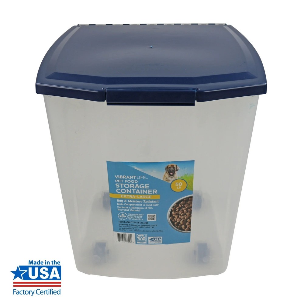Heavy-Duty 50lb Extra Large Dry Pet Food Container Brand New Item. Free Fast Shipping . Products Description: Vibrant Life Plastic Dog Food Storage Container with Locking Lid, Extra-Large, 50 lb The Vibrant Life Pet Food Storage Container is the perfect solution for storing your pet's food or treats. Made from a minimum of 25 percent recycled material, you can feel good knowing the main compartment is food safe. This extra-large container features rubber seals on the lid to help maintain freshness and roller wheels on the bottom for quick and easy transit from one room to another. Plus, it's bug and moisture resistant! With a 50-pound storage capacity, you can buy food in bulk knowing you have enough space to store it. Pet food storage just got a little easier with the Vibrant Life Pet Food Storage Container! Vibrant Life shares your passion for animals. You can count on Vibrant Life for a full line of expertly crafted, quality products to keep your pet healthy and happy. Which makes you happy, too. Enjoy the Vibrant Life.. About this item: · 50-lb storage capacity · Made with a minimum of 25% recycled materials · Features rubber seals on lid for freshness and roller wheels on bottom for easy transit · Bug and moisture resistant · Main compartment is food safe · Check out other Vibrant Life accessories! Instructions 1. Unfold one bag and place in the center of the microwave oven. 2. Set microwave on high (full power). For the best popping results, set time for 1:45 to 3 minutes depending on the wattage of your microwave. Listen carefully. Stop microwave when popping slows to 1 to 3 seconds between pops. If popcorn is still popping vigorously when time runs out, add 10 seconds to the time on your next popping. Note the time for future reference and never leave microwave unattended when popping. 3. Carefully remove bag from oven - it's hot! 4. Open bag away from face with a tug on diagonally opposite top corners, avoiding contact with hot steam that will be emitting from bag when first opened. 5. It is normal for some kernels to remain unpopped. Do not reheat unpopped kernels or resuse bag. Ingredients Non-GMO popcorn, palm oil, clarified butter, sea salt, rosemary extract (to preserve freshness) CONTAINS: Milk ingredients Return & Exchange: We Accept return as per eBay Return Policy, Customer satisfaction is our priority. If there is a problem with your order then please contacts us, we will provide you the best solution. Return shipping is the buyer's responsibility unless the return is a result of our mistake. We will pay for shipping replacement back to you if an exchange is requested. Note: Customer satisfaction is very important to us. If you have any problem with your order, please contact us and we will do our best to make you satisfied, please do not a negative feedback before we resolve your problem, we guarantee that your issue will be solved quickly. This item cannot be shipped to AK, HI, Puerto Rico, FAA Address, APO, FPO, PO Box and outside of USA.