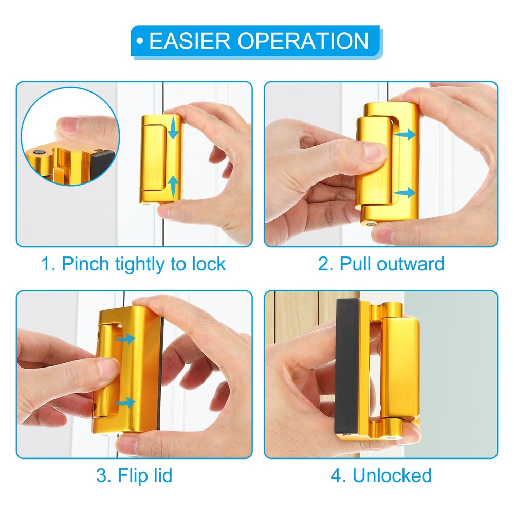 Document The high-security door reinforcement locks help prevent doors from being knocked away enhancing your home security and keeping you and your family safe! Make sure none of the doors can be opened from the outside.SpecificationColor: BrownMaterial: aluminum AlloyMaximum Withstand Capacity: 800 LbsMounting Plate Size: 63.5 x 56 x 1.95 mm/ 2.5 x 2.2 x 0.08 inch (L*W*Thickness)Lock Part Size: 76 x 25.4 x 35 mm/ 2.99 x 1 x 1.38 inch (L*W*H)Screw Mounting Distance: 20mm/ 0.79 inchScrew Length: 28.9mm/ 1.14 inchPacking List: 1 x Door Reinforcement Lock with 4 ScrewsAdvantage1. The security door lock is made of aluminum alloy with electroplating technology on the surface which is rust-proof moisture-proof corrosion-resistant comfortable to touch durable and has a long service life.2. The home anti-theft door lock is a tamper-resistant child-safe lock that prevents unauthorized entry through lock bumping. Designed to withstand up to 800 pounds of force when opening an interior door it enhances home security and prevents doors from being knocked away keeping your family safe.InstructionEquipped with 4 pieces of 28.9mm(1.13") screws and operation manual to help ensure an easy and quick installation.To unlock pinch the top and bottom of the door lock. Then slide the lock sideways along the door towards the hinge direction until it can be pulled outward.NOTE: Please measure the door plate thickness before ordering. Home Security Door Lock Aluminum Reinforcement Lock Withstand 800Lbs Brown The high-security door reinforcement locks help prevent doors from being knocked away enhancing your home security and keeping you and your family safe! Make sure none of the doors can be opened from the outside. Specification Color: Brown Material: aluminum Alloy Maximum Withstand Capacity: 800 Lbs Mounting Plate Size: 63.5 x 56 x 1.95 mm/ 2.5 x 2.2 x 0.08 inch (L*W*Thickness) Lock Part Size: 76 x 25.4 x 35 mm/ 2.99 x 1 x 1.38 inch (L*W*H) Screw Mounting Distance: 20mm/ 0.79 inch Screw Length: 28.9mm/ 1.14 inch Packing List: 1 x Door Reinforcement Lock with 4 Screws Advantage 1. The security door lock is made of aluminum alloy with electroplating technology on the surface which is rust-proof moisture-proof corrosion-resistant comfortable to touch durable and has a long service life. 2. The home anti-theft door lock is a tamper-resistant child-safe lock that prevents unauthorized entry through lock bumping. Designed to withstand up to 800 pounds of force when opening an interior door it enhances home security and prevents doors from being knocked away keeping your family safe. Instruction Equipped with 4 pieces of 28.9mm(1.13") screws and operation manual to help ensure an easy and quick installation. To unlock pinch the top and bottom of the door lock. Then slide the lock sideways along the door towards the hinge direction until it can be pulled outward. NOTE: Please measure the door plate thickness before ordering. Hot Item Payment 1.We accept eBay payment . 2.Payment must be received within 7 business days of auction closing. Shipping 1.We ship to your eBay or Paypal address. Please make sure your eBay and Paypal address is correct before you pay. 2.Items will be shipped within 1-3 business day when we received payment. 3.Delivery time depends on destination and other factors. Description Policy Home Security Door Lock Aluminum Reinforcement Lock Withstand 800Lbs Brown The high-security door reinforcement locks help prevent doors from being knocked away enhancing your home security and keeping you and your family safe! Make sure none of the doors can be opened from the outside. Specification Color: Brown Material: aluminum Alloy Maximum Withstand Capacity: 800 Lbs Mounting Plate Size: 63.5 x 56 x 1.95 mm/ 2.5 x 2.2 x 0.08 inch (L*W*Thickness) Lock Part Size: 76 x 25.4 x 35 mm/ 2.99 x 1 x 1.38 inch (L*W*H) Screw Mounting Distance: 20mm/ 0.79 inch Screw Length: 28.9mm/ 1.14 inch Packing List: 1 x Door Reinforcement Lock with 4 Screws Advantage 1. The security door lock is made of aluminum alloy with electroplating technology on the surface which is rust-proof moisture-proof corrosion-resistant comfortable to touch durable and has a long service life. 2. The home anti-theft door lock is a tamper-resistant child-safe lock that prevents unauthorized entry through lock bumping. Designed to withstand up to 800 pounds of force when opening an interior door it enhances home security and prevents doors from being knocked away keeping your family safe. Instruction Equipped with 4 pieces of 28.9mm(1.13") screws and operation manual to help ensure an easy and quick installation. To unlock pinch the top and bottom of the door lock. Then slide the lock sideways along the door towards the hinge direction until it can be pulled outward. NOTE: Please measure the door plate thickness before ordering. Hot Item Payment 1.We accept eBay payment . 2.Payment must be received within 7 business days of auction closing. Shipping 1.We ship to your eBay or Paypal address. Please make sure your eBay and Paypal address is correct before you pay. 2.Items will be shipped within 1-3 business day when we received payment. 3.Delivery time depends on destination and other factors.