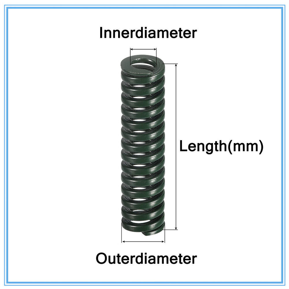 Product description Specifications: Features - Rectangular die springs have the following characteristics: Rectangular die springs have the characteristics of small size, good elasticity, high stiffness, high precision, rectangular material, surface color separation spraying (electroplating) to distinguish different loads, and beautiful appearance. Applications - Die springs are widely used in stamping dies, metal die-casting molds, plastic molds and other elastic motion of precision machinery and equipment, automobiles and other fields. Yellow and blue are mainly used for plastic mold assembly, and red, green and brown are mainly used for hardware assembly. Color:Green Outside diameter:8 - 40mm Inner diameter:4 - 20mm Length (height):15 - 300mm