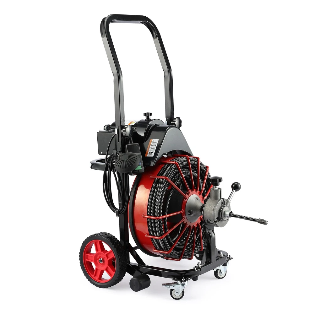 Heavy-Duty Drain Auger 100ft, 550W Motor w/ Wheels & Gloves - Commercial Grade