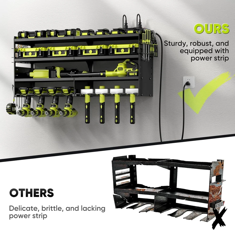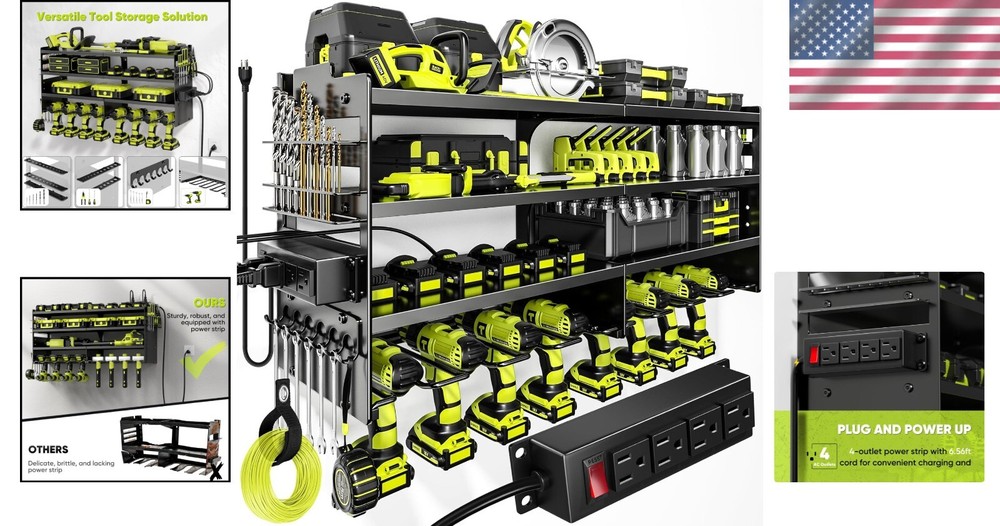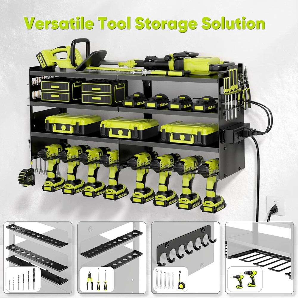 Large Garage Tool Organizer with 4-Outlet Charging - Rust & Scratch Resistant ‹ › ‹ › ‹ › ‹ › ‹ › ‹ › ‹ › ‹ › ‹ › Large Garage Tool Organizer with 4-Outlet Charging Elevate your workspace with our Large Garage Tool Organizer, expertly designed to combine functionality and elegance. Features: 4-Outlet Power Strip: Integrated power strip with a 6.5-foot cord for easy charging, keeping your tools ready at a moment's notice. Heavy-Duty Load Capacity: Constructed from industrial-grade metal, supporting up to 600lbs for exceptional durability and stability. 4-Tier Design: Includes two side drill bit racks, a hook rack, six shelves, and eight drill slots, your all-in-one solution for tool organization. Space-Saving Efficiency: Ideal for garages, workshops, and tool rooms, this organizer maximizes your space while minimizing clutter. Quick Installation: Comprehensive manual and high-quality installation accessories make for hassle-free assembly in minutes. Benefits: Organize and store your power tools effortlessly. Ensure your workspace remains tidy and efficient. Robust construction provides peace of mind for heavy tools. Flexible installation options fit various surfaces. Why Choose Our Tool Organizer? Are you ready to transform your chaotic tool area into a haven of organization and efficiency? Our Large Garage Tool Organizer is crafted with your needs in mind - featuring an integrated power strip, it allows you to charge your tools directly, eliminating the need to search for outlets. The heavy-duty design guarantees that even your heaviest tools are stored securely, while the multi-tiered shelving maximizes your space with grace. From professionals to DIY enthusiasts, this tool organizer enhances any workspace. Don’t let disarray hold you back; invest in this essential storage solution today and elevate your garage or workshop into a model of productivity! Shipping Free & Fast Shipping - We offer free shipping to most of the USA with a normal delivery time of 3-7 days. However, due to the current situation, additional delivery time (up to 3 weeks) may be required for some items. Alternative Carriers - We may use alternative carriers (e.g. USPS, FedEx, UPS, etc.) to ensure your package arrives safely and on time. Due to the use of multiple carriers, we are unable to provide a tracking number automatically. Handling Time - Orders are processed and shipped within 1-2 business days of receiving cleared payment. Shipping Restrictions - Shipping to Alaska, Hawaii, Puerto Rico, Guam, and other US territories may incur shipping charges or delivery restrictions. Please contact us before ordering, or your order can be refunded/cancelled. State Restrictions - There may be restrictions based on your state of purchase. For example, certain items may not be shipped to California due to state regulations. Contact for Tracking Updates - If you require tracking updates or have any concerns about the delivery of your order, please feel free to contact us, and we will be happy to assist you. Return 30-Day Hassle-Free Returns - We want you to be completely satisfied with your purchase. If you are not, you can return the item within 30 days of receiving it for a full refund or exchange. Easy Return Process - To start a return, simply contact us and we will provide you with a prepaid return shipping label and detailed instructions. Restocking Fee - There are no restocking fees for returns. However, the buyer is responsible for return shipping costs if the return is not due to a seller's error. Refund Processing Time - Refunds will be processed within 5 business days of receiving the returned item in its condition. Payment We accept all major credit cards, PayPal, and Apple Pay for your convenience. Your payment information is secure and encrypted to ensure a safe and seamless transaction. Please complete your payment within 3 days of purchase to avoid any delays in shipping. Feedback Your feedback is extremely important to us. We strive to provide the best products and customer service possible. If you are satisfied with your purchase, please take a moment to leave us a positive review. If you have any concerns or issues with your order, please contact us before leaving negative feedback. We are committed to resolving any problems and ensuring your satisfaction. Contact Us If you have any questions or concerns, please feel free to out to our customer support team. You can contact us through the eBay messaging system. We are available Monday to Friday, 9:00 am to 5:00 pm EST, and we will do our best to respond to your inquiry within 24 hours. Buy it now and enjoy a pleasant shopping experience! Item Diameter: 33 Item Weight: 16 lb Unit Quantity: 1 Features: Scratch Resistant,Wall Mount,Charging Station,Power Strip,Heavy Duty,Rust Resistant,4 Tier,8 Drill Slots,Side Drill Bit Racks,Hook Rack,Storage Rack,Tool Organizer,Space Saving,Quick Installation,Ample Space Type: Tool Storage Rack Number of Items: 1 Material: Metal Number of Drawers: 0 Size: Large Capacity: 600 lb Color: Black Finish: Powder Coated Unit Type: lb