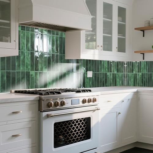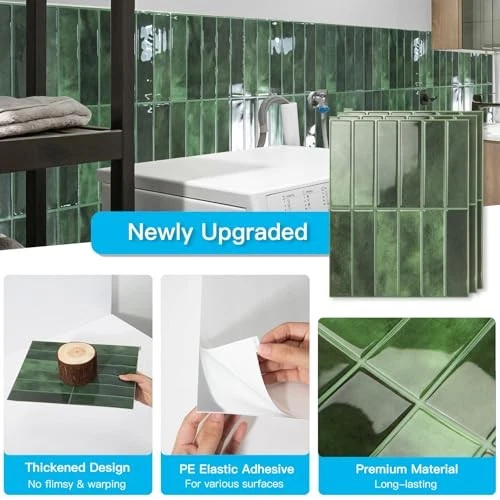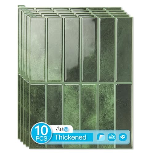 Heavy-Duty Peel & Stick Green Backsplash Tile 10 Pack 11.4x9 Inch for Home Décor