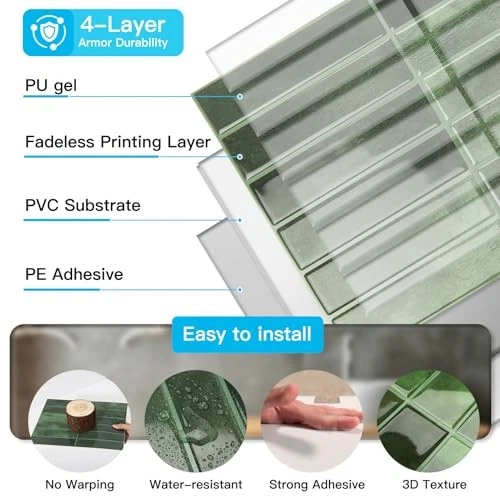Country of Origin: China Size: 11.4 x 9 Inch Manufacturer: Does Not Apply Finish Type: Polished Color: Green Recommended Uses For Product: Wall Unit Count: 10.0 Count Item Height: 0.08 Material: Vinyl MPN: Does Not Apply Type: Does Not Apply UPC: Does Not Apply Style: Modern Installation Type: Peel and Stick gtin13: Does Not Apply Product Dimensions: 11.4 x 9 x 0.08 inches Date First Available: May 27, 2025 Item Width: 9 EAN: Does Not Apply Item Weight: 0.22 Pounds Customer Reviews: 4.2 out of 5 stars Brand: Does Not Apply Item Length: 11.4 Shape: Rectangular