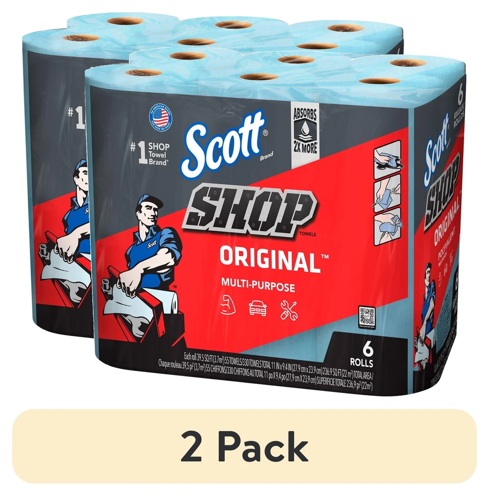Whether you own an automotive shop (painting, detailing, or cleaning), are a D.I.Y. weekend warrior or are simply cleaning the garage, Scott Shop Towels Original (Blue) in standard rolls are a must in your list of supplies. These utility shop towels are ideal for changing oil, refilling fluids, and general, multi-purpose automotive maintenance. They are the multi-purpose shop towels that can help you get just about any job done right! Plus, the convenient standard roll is portable, has perforations that make it easy to tear off one sheet at a time and fits on standard paper towel holders. Whether you’re detailing, cleaning, staining, or polishing, trust Scott Shop Towels Original to help get the job done with efficiency. They are strong, absorbent and durable, and they still work optimally when they are wet. Reach for Scott care products the next time you make a mess that needs cleaning in a flash. Scott Professional Shop Towels, 55 Sheets per Roll, 6 Count Multi-purpose towel Perforated Cloth-like softness