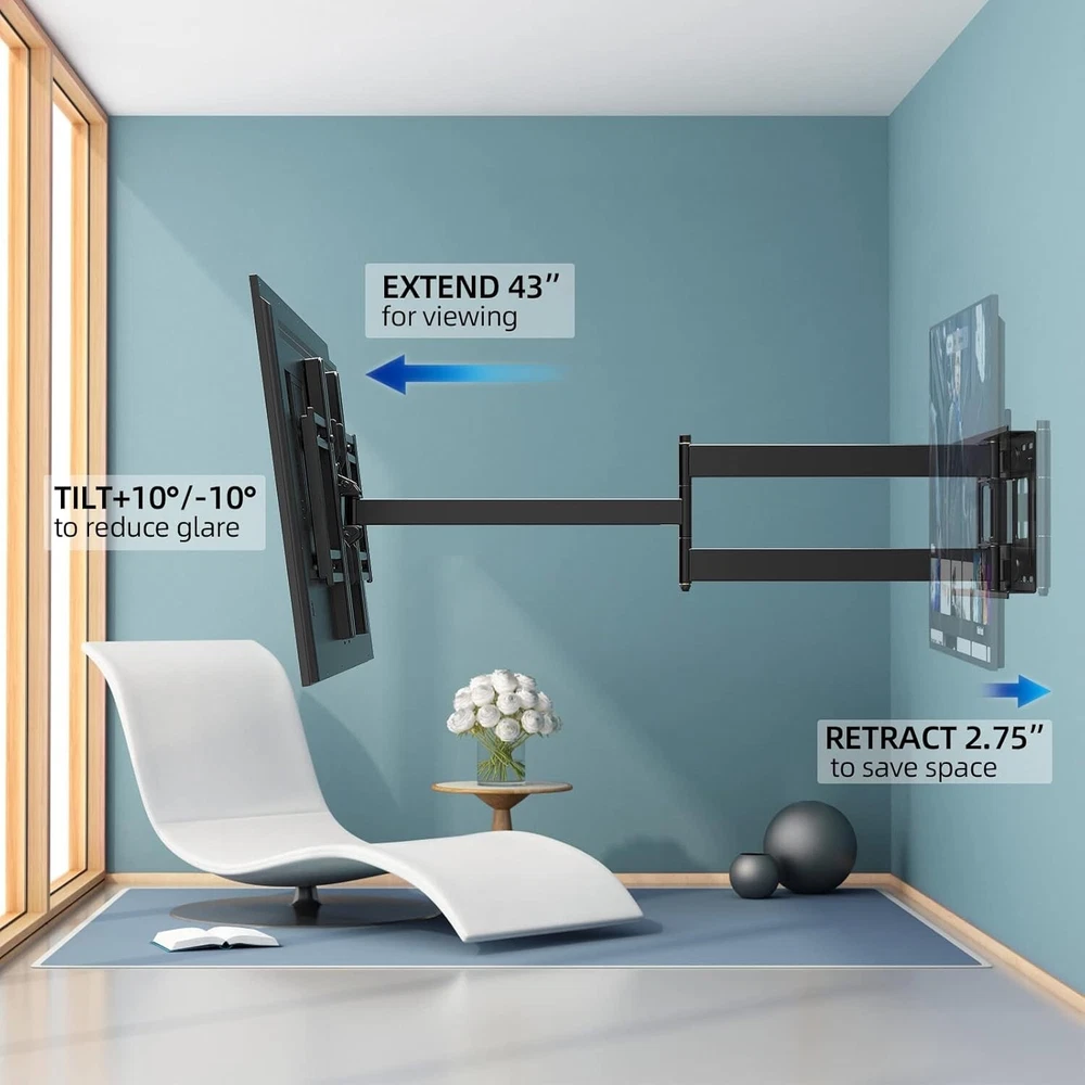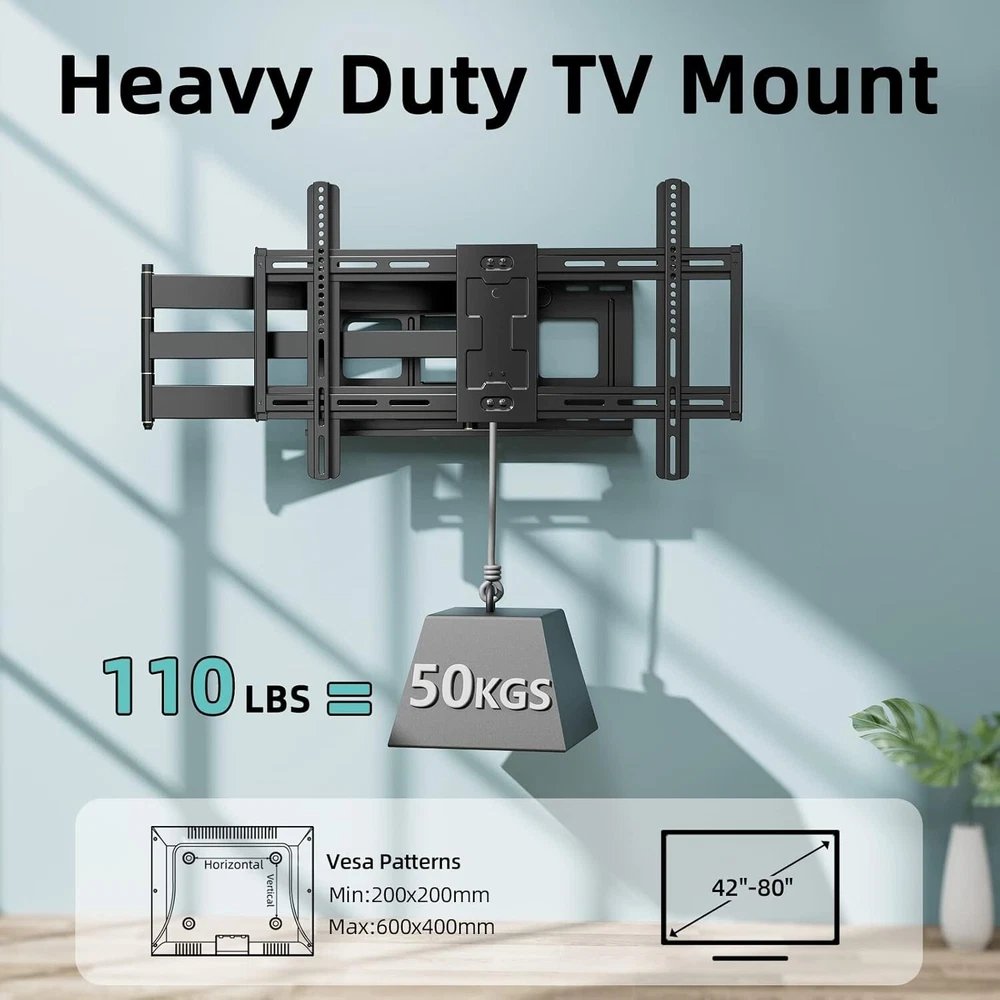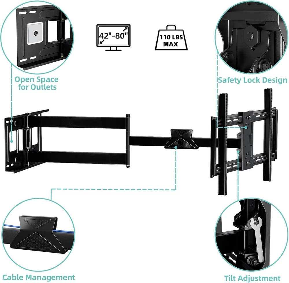 Heavy-Duty TV Mount for 42-80 Inch Displays, 43-Inch Full Motion Extension Arm