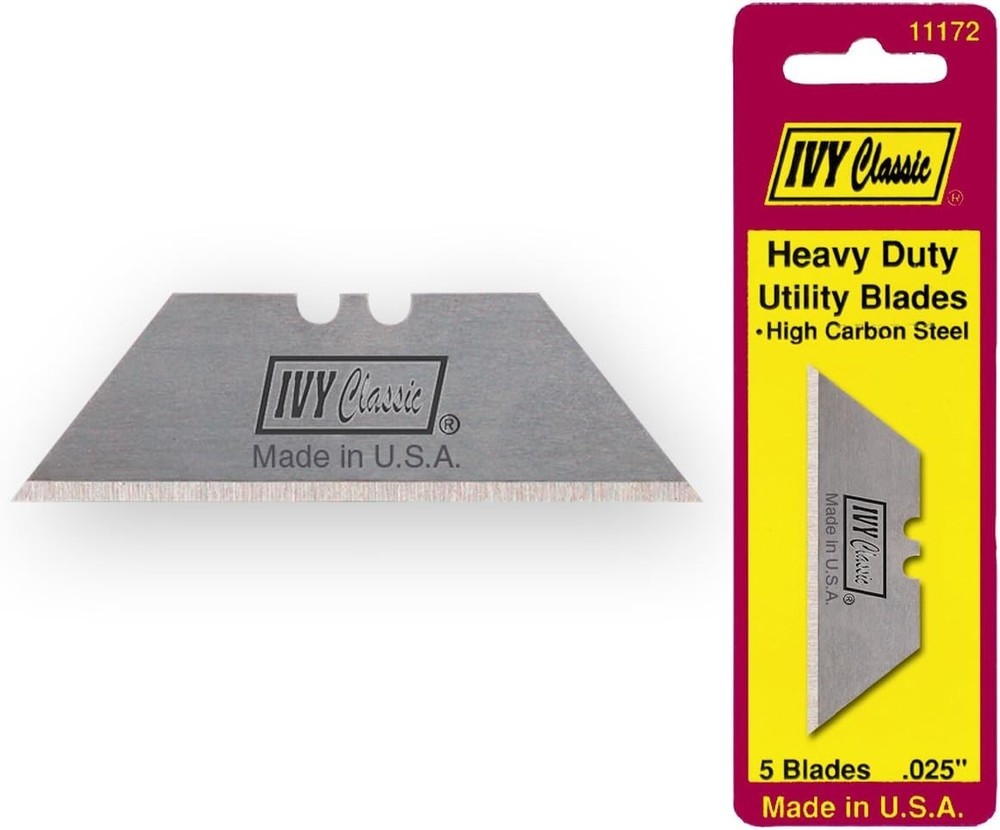 Heavy-Duty Utility Knife Blades, 5-Pack - Made in USA, Long-Lasting Performance ‹ › ‹ › Heavy-Duty Utility Knife Blades - 5-Pack Made in the USA for Long-Lasting Performance Features: MATERIAL: Crafted from high-carbon steel, ensuring exceptional durability and longevity. PRECISION HONED: Each blade features a sharpened edge meticulously designed for clean, accurate cuts that can be re-sharpened for extended use. MULTI-PURPOSE: Ideal for cutting drywall, roofing materials, linoleum, carpet, and vinyl with ease. COMPATIBILITY: Fits seamlessly with all retractable (models 11150, 11152, 11151), fixed (model 11154), and folding (models 11145, 11146, 11147) utility knives and other standard utility knives. SPECIFICATIONS: Blades measure 0.025" thick and come with two notches for enhanced compatibility. Why Choose Our Heavy-Duty Utility Knife Blades? Master the art of cutting with our Heavy-Duty Utility Knife Blades, designed for professionals and DIY enthusiasts alike. Made in the USA from high-carbon steel, these blades offer an unparalleled balance of sharpness, durability, and versatility. Whether you're tackling tough roofing materials or performing delicate cuts on vinyl, our blades deliver precision you can trust. The ability to re-sharpen the edge means you can rely on these blades time and time again without sacrificing quality. Upgrade your toolbox with the Heavy-Duty Utility Knife Blades and experience the perfect blend of functionality and excellence. Order your 5-pack today and elevate your cutting experience! Shipping Free & Fast Shipping - We offer free shipping to most of the USA with a normal delivery time of 3-7 days. However, due to the current situation, additional delivery time (up to 3 weeks) may be required for some items. Alternative Carriers - We may use alternative carriers (e.g. USPS, FedEx, UPS, etc.) to ensure your package arrives safely and on time. Due to the use of multiple carriers, we are unable to provide a tracking number automatically. Handling Time - Orders are processed and shipped within 1-2 business days of receiving cleared payment. Shipping Restrictions - Shipping to Alaska, Hawaii, Puerto Rico, Guam, and other US territories may incur shipping charges or delivery restrictions. Please contact us before ordering, or your order can be refunded/cancelled. State Restrictions - There may be restrictions based on your state of purchase. For example, certain items may not be shipped to California due to state regulations. Contact for Tracking Updates - If you require tracking updates or have any concerns about the delivery of your order, please feel free to contact us, and we will be happy to assist you. Return 30-Day Hassle-Free Returns - We want you to be completely satisfied with your purchase. If you are not, you can return the item within 30 days of receiving it for a full refund or exchange. Easy Return Process - To start a return, simply contact us and we will provide you with a prepaid return shipping label and detailed instructions. Restocking Fee - There are no restocking fees for returns. However, the buyer is responsible for return shipping costs if the return is not due to a seller's error. Refund Processing Time - Refunds will be processed within 5 business days of receiving the returned item in its condition. Payment We accept all major credit cards, PayPal, and Apple Pay for your convenience. Your payment information is secure and encrypted to ensure a safe and seamless transaction. Please complete your payment within 3 days of purchase to avoid any delays in shipping. Feedback Your feedback is extremely important to us. We strive to provide the best products and customer service possible. If you are satisfied with your purchase, please take a moment to leave us a positive review. If you have any concerns or issues with your order, please contact us before leaving negative feedback. We are committed to resolving any problems and ensuring your satisfaction. Contact Us If you have any questions or concerns, please feel free to out to our customer support team. You can contact us through the eBay messaging system. We are available Monday to Friday, 9:00 am to 5:00 pm EST, and we will do our best to respond to your inquiry within 24 hours. Buy it now and enjoy a pleasant shopping experience! Model: Utility Knife Blades Item Width: Utility Knife Blades Item Length: Utility Knife Blades Item Height: Utility Knife Blades Item Diameter: 0.025 inches Item Weight: Not specified Unit Quantity: 5 Handle Material: High Carbon Steel Type: Utility Knife Number of Pieces: 5 Blade Material: High Carbon Steel Color: Silver Unit Type: Unit