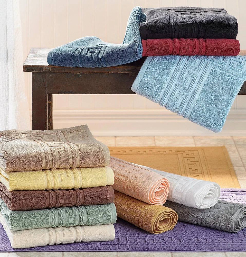 MAXIMUM ABSORBENCY: Made from 100% Cotton, this bathroom rug set offers absorbency compared to thinner bath mats; enjoy cloud-like comfort when you step out of your shower or bath; Choose from 15 gorgeous colors TWO-PIECE SET: Enjoy the convenience of this two-piece bath rug set, measuring 22" x 35" each, to outfit both your main and guest bathroom; transform your bathroom to a mini spa with this stylish duo; perfect for shared, large, or multiple bathrooms ELEGANT DESIGN: The traditional Greek key design will add an elegant touch to your bathroom decor and coordinate beautifully with your existing decor; Enjoy hotel luxury in the comfort of your home with these soft spa and hotel quality bath mats CARE INSTRUCTIONS: Easy to care for, simply toss these bath mats in the washing machine and tumble dry on low or air dry whenever needed; Always follow care label instructions for best results EXCELLENT GIFT: Our designs match a variety of styles and make great gifts; perfect for friends and family; we're committed to make products safer for you and safer for the world; this product is OEKO-TEX certified for safety and sustainability