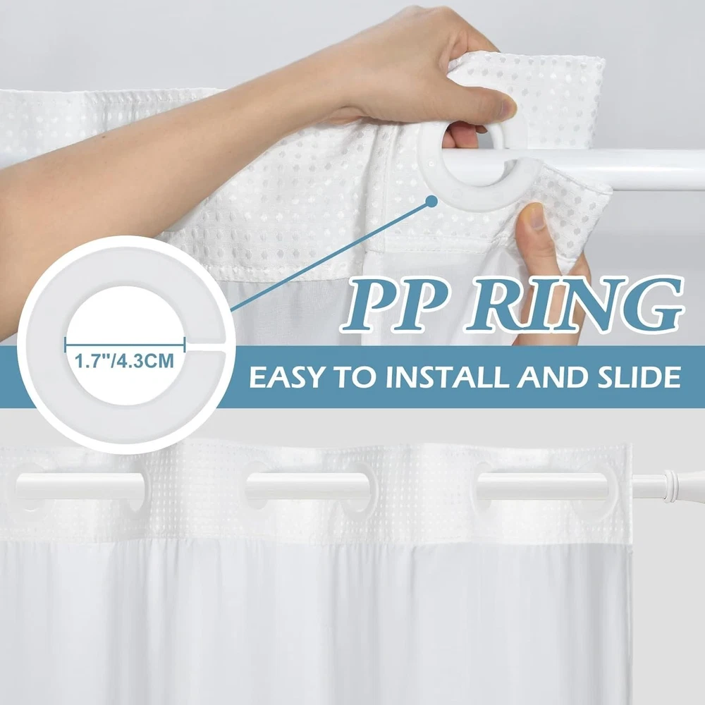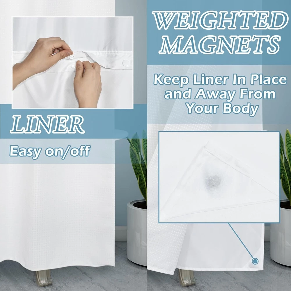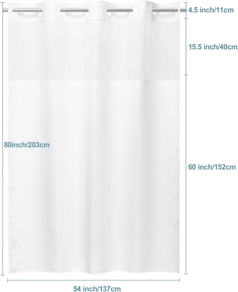 UPC: Does not apply Shape: Rectangle Number of Items in Set: 1 Occasion: Bathroom Color: White Fabric Type: 100%polyester Compatible With Rod Size: 1.6 Inches Unit Count: 1.0 Count Special Feature: Lightweight, Water Repellent, Adjustable, Washable Brand: Unbranded Recommended Uses For Product: Indoor Features: Water-Repellant, Extra Long, Liner Included, Mashine Washable, Mildew-Resistant, Weighted Hem, Heavyweight, Three-proof, Lotus Leaf Water-Repellent, Oil-Repellent, Stain-Repellent, Sheer Viewing Window, Machine Washable, Easy Care Size: 54"w X 80"l (pack Of 1) Set Includes: Liner Pattern: Solid Seasons: All Season Hanging Method: Grommet Product Dimensions: 80"l X 54"w Included Components: Liner Style: Classic Water Resistance Level: Water Repellent Personalize: No Top Style: Grommet Item Weight: 2.1 pounds Curtain Form: Shower Curtain Number Of Items: 1 Specific Uses For Product: Decorative Suitable For: Shower, Bathtub Material: Polyester, Fabric Room: Bathroom Opacity: Sheer Lining Description: Lined Product Care Instructions: Machine Wash Weave Type: Knitted gtin13: Does not apply Room Type: Bathroom Closure Type: Snap Type: Fabric Curtain Cartoon Character: Waffle Weave Package Weight: 0.96 Kilograms Theme: Curtain Liner