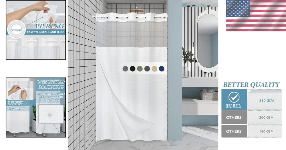 Heavyweight Water Repellent Shower Curtain with Liner - 54W x 80H Classic Design ‹ › ‹ › ‹ › ‹ › ‹ › ‹ › ‹ › ‹ › ‹ › Heavyweight Water Repellent Shower Curtain with Liner Dimensions: 54W x 80H inches (137W x 203H cm) Classic Design Features: Made from expertly chosen and tested Heavyweight Polyester Fabric, offering a luxurious cotton-like feel. 230GSM fabric density, ensuring durability and a thicker structure compared to typical 90GSM curtains. Elegant honeycomb waffle weave pattern enhances the sophistication of your bathroom. Equipped with a snap-in liner measuring 53” x 60” , included in package along with 2 bottom magnets on both corners. Designed with split rings for easy hanging; perfect for a hassle-free installation. Three-proof fabric: lotus leaf water-repellent, oil-repellent, and stain-repellent for longevity. Heavy-duty weighted hem keeps the curtain in place and prevents billowing. Sheer Viewing Window: Mesh panel allows light and air circulation while ensuring privacy. Benefits: Transforms your bathroom into a serene spa-like environment. Complementary to various settings: home, apartment, hotel, RV, dorms, gyms, and more. Water-resistant fabric facilitates quick drying and prevents mildew. Effortless care with machine washable fabric; retains its elegant appearance for years. Why choose our Heavyweight Water Repellent Shower Curtain? Upgrade your bath space with this exceptional Heavyweight Water Repellent Shower Curtain. Its luxurious feel, combined with modern yet classic design elements, creates an inviting atmosphere in your bathroom. The added convenience of a snap-in liner and the effortless care instructions ensure that this curtain not only enhances the aesthetics of your bathroom but also provides functionality and longevity. Indulge in the comfort of a relaxing shower experience. Make this sophisticated shower curtain a staple in your home today! Shipping Free & Fast Shipping - We offer free shipping to most of the USA with a normal delivery time of 3-7 days. However, due to the current situation, additional delivery time (up to 3 weeks) may be required for some items. Alternative Carriers - We may use alternative carriers (e.g. USPS, FedEx, UPS, etc.) to ensure your package arrives safely and on time. Due to the use of multiple carriers, we are unable to provide a tracking number automatically. Handling Time - Orders are processed and shipped within 1-2 business days of receiving cleared payment. Shipping Restrictions - Shipping to Alaska, Hawaii, Puerto Rico, Guam, and other US territories may incur shipping charges or delivery restrictions. Please contact us before ordering, or your order can be refunded/cancelled. State Restrictions - There may be restrictions based on your state of purchase. For example, certain items may not be shipped to California due to state regulations. Contact for Tracking Updates - If you require tracking updates or have any concerns about the delivery of your order, please feel free to contact us, and we will be happy to assist you. Return 30-Day Hassle-Free Returns - We want you to be completely satisfied with your purchase. If you are not, you can return the item within 30 days of receiving it for a full refund or exchange. Easy Return Process - To start a return, simply contact us and we will provide you with a prepaid return shipping label and detailed instructions. Restocking Fee - There are no restocking fees for returns. However, the buyer is responsible for return shipping costs if the return is not due to a seller's error. Refund Processing Time - Refunds will be processed within 5 business days of receiving the returned item in its original condition. Payment We accept all major credit cards, PayPal, and Apple Pay for your convenience. Your payment information is secure and encrypted to ensure a safe and seamless transaction. Please complete your payment within 3 days of purchase to avoid any delays in shipping. Feedback Your feedback is extremely important to us. We strive to provide the best products and customer service possible. If you are satisfied with your purchase, please take a moment to leave us a positive review. If you have any concerns or issues with your order, please contact us before leaving negative feedback. We are committed to resolving any problems and ensuring your satisfaction. Contact Us If you have any questions or concerns, please feel free to reach out to our customer support team. You can contact us through the eBay messaging system. We are available Monday to Friday, 9:00 am to 5:00 pm EST, and we will do our best to respond to your inquiry within 24 hours. Buy it now and enjoy a pleasant shopping experience! UPC: Not Set Model: Not Set Item Weight: 2.1 pounds Unit Quantity: 1 Material: Fabric,Polyester Suitable For: Bathtub,Shower Features: Extra Long,Liner Included,Mashine Washable,Mildew-Resistant,Water-Repellant,Weighted Hem,Heavyweight,Three-proof,Lotus Leaf Water-Repellent,Oil-Repellent,Stain-Repellent,Sheer Viewing Window,Machine Washable,Easy Care Character: Not Set Room: Bathroom Theme: Curtain Liner Set Includes: Liner Color: White Brand: Unbranded Pattern: Solid Type: Fabric Curtain Item Length: Not Set Character Family: Not Set Shape: Rectangle MPN: Not Set Style: Classic Item Width: Not Set Number of Items in Set: 1 Country/Region of Manufacture: Not Set Manufacturer: Not Set Unit Type: lb Personalize: Not Set