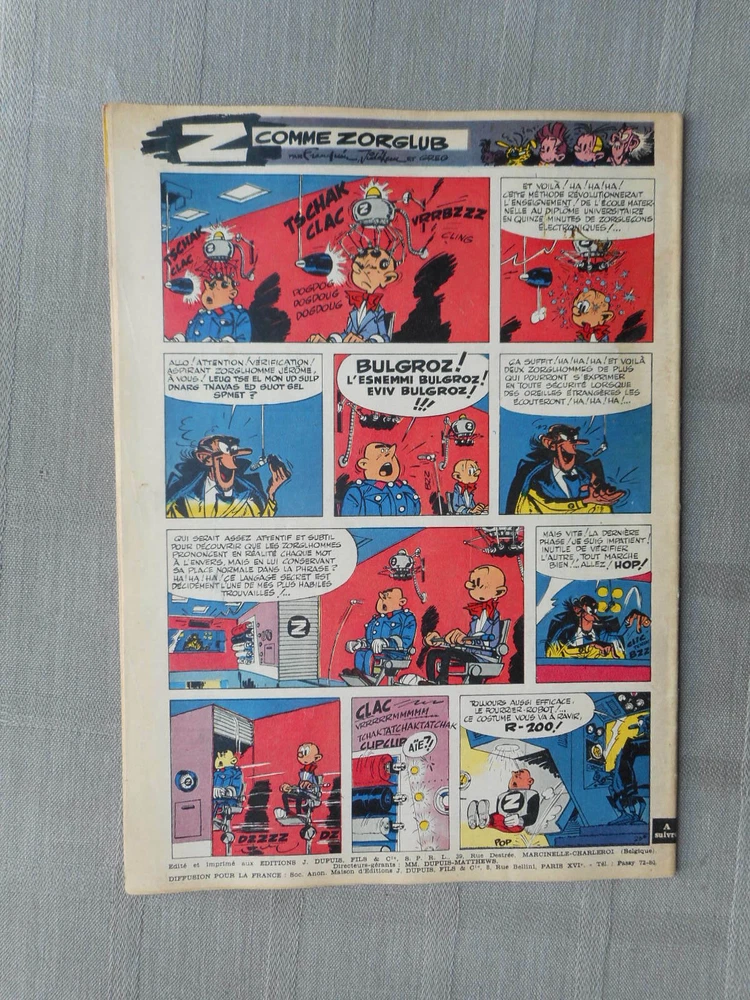 Object modified: Non MPN: Does not apply Genre: Adventure Style: Color Brand: Unbranded Tradition: Franco-Belgian comics Features: First edition Series Title: Spirou's Journal UPC: Does not apply Frequency of publication: Weekly special attributes: Edition original Type: Comic Strip Year of publication: 1959 Character: Spirou Editor: SINCE Format: Soft cover Name of publication: SPIROU gtin13: Does not apply Language: French