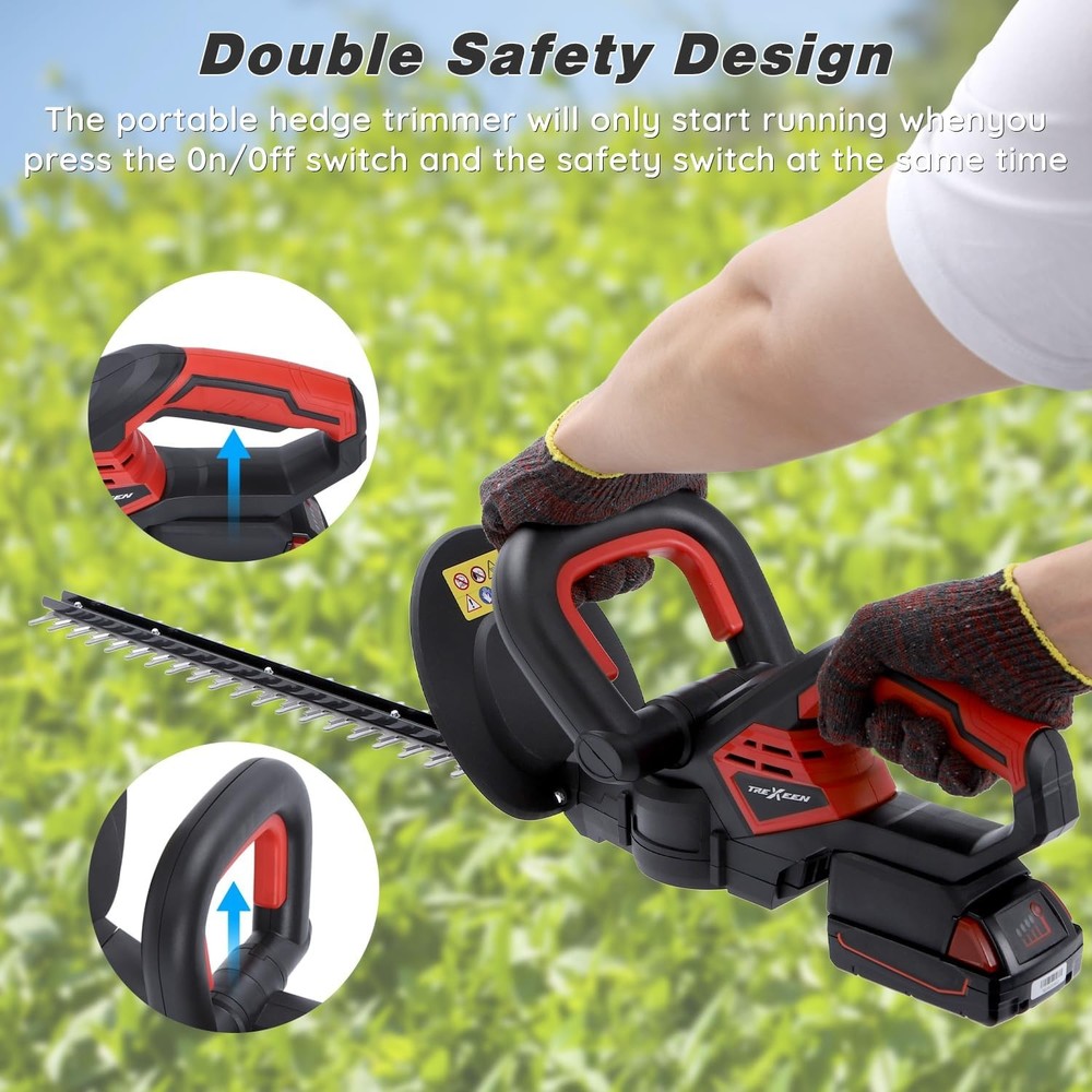 Hedge Trimmer for MWK M18 18v Compatible with Milwaukee battery, YELLOW Description Features: Outstanding Cutting Performance:The handheld trimmer is equipped with a 22-inch dual-action blade, capable of meeting most trimming needs for shrubs and hedges. It achieves precise and clean hedge trimming through forward and backward cutting. Additionally, its 3/5-inch cutting capacity easily handles branches with a thickness of less than 0.6 inches. Battery-Powered Hedge Trimmer:(Bare tool, no battery or charger included)This cordless hedge trimmer is battery-powered and compatible with MWK M18 18V 48-11-1828, 48-11-1850, 48-11-1852, 48-11-1865, 48-11-1890, 48-11-1862, 48-11-1880 and so on Efficient Trimming:Featuring a brushless motor design, the hedge trimmer delivers a driving force of up to 16000RPM, allowing for more efficient trimming. This significantly saves you valuable time, energy, and money while maintaining your yard. Ultra-Lightweight and Portable:Weighing only 4.8 pounds, this shrub trimmer is much lighter than other large or full-size trimmers, enabling smooth and effortless branch trimming. It is user-friendly for women and seniors. Dual Safety Lock Design:Your safety is our top priority. The electric hedge trimmer includes a safety switch to prevent accidental startup. Only press the Power Switch and Security Switch at the same time can start cutting Product Details: Brand: TREXEEN Power Source: Battery Powered Color: YELLOW Product Dimensions: 36"L x 3.4"W x 6.29"H Item Weight: 2.95 Kilograms Blade Length: 22 Inches Material: Alloy Steel Blade Material: Metal Cutting Width: 0.6 Inches Item Weight: 6.49 pounds Manufacturer: TREXEEN Country of Origin: China Item model number: HT01 Handling We will ship all orders within 1 business day of payment. Delivery We Do Not Ship Outside of the Continental US. Return Policy All items qualify for returns within 30 days of receipt. Buyer is responsible for return shipping on any item that is not damaged. Feedback We take our reputation seriously, we buy and sell online, so we understand the value of trust. If you are unsatisfied with your order, please contact us and we will work with you to resolve it to your satisfaction.