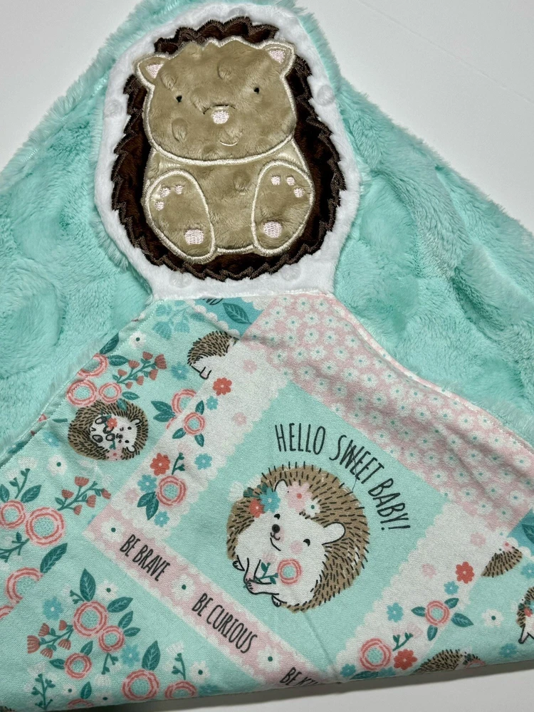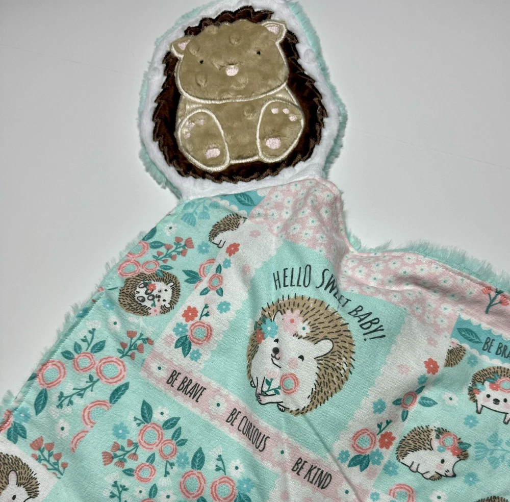 Hedgehog Baby Lovey Security Blanket Appliquéd Flannel Minky