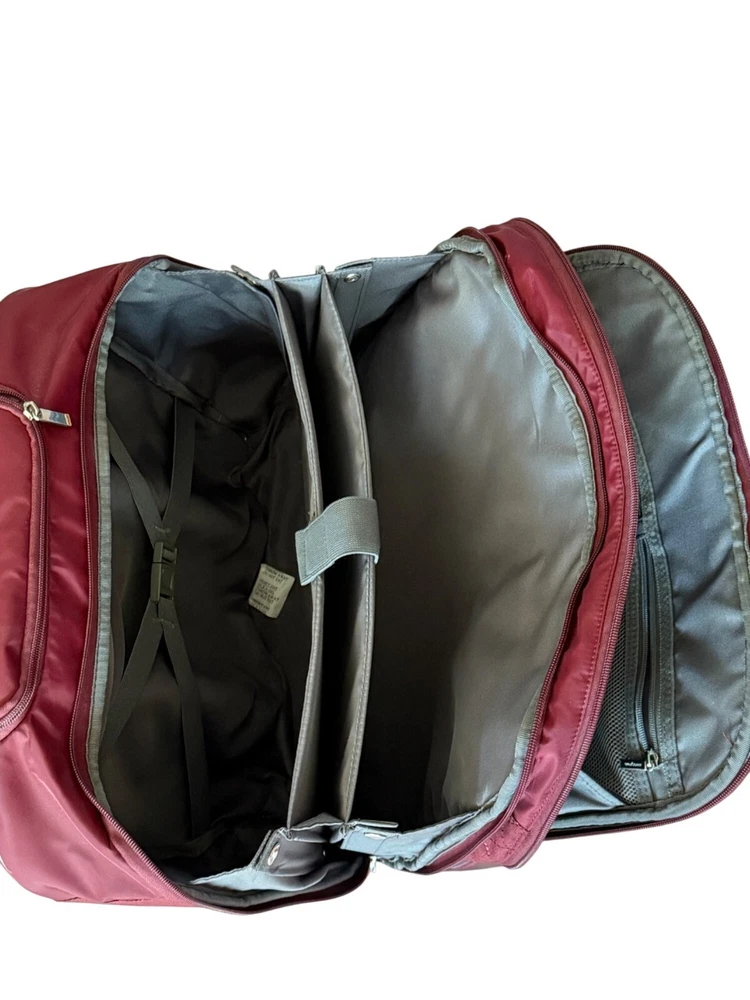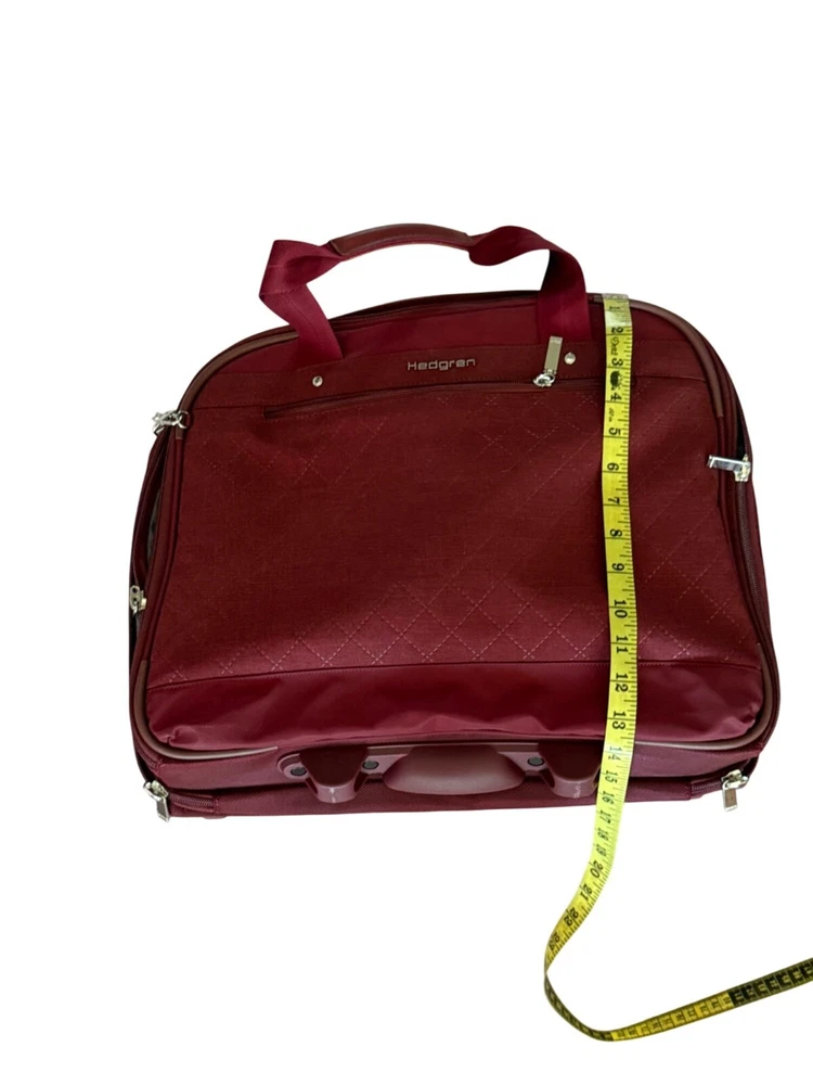 Want a bag that makes you feel like an organized superhero? Meet the Hedgren Travel Bag: spacious, stylish, and secretly plotting to carry your snacks. • Quilted design for added style • Multiple compartments for organization (laptop) • Durable zippers and straps • Measures approximately 18 inches wide