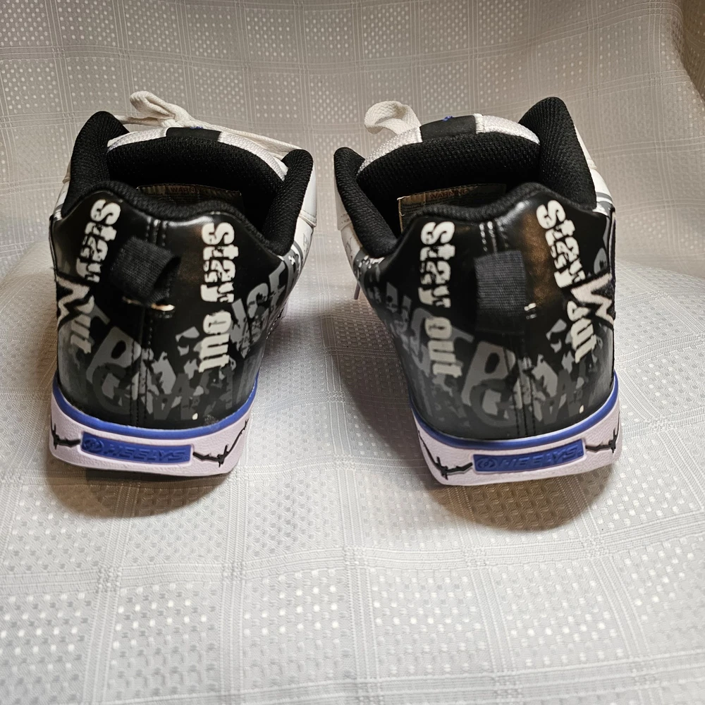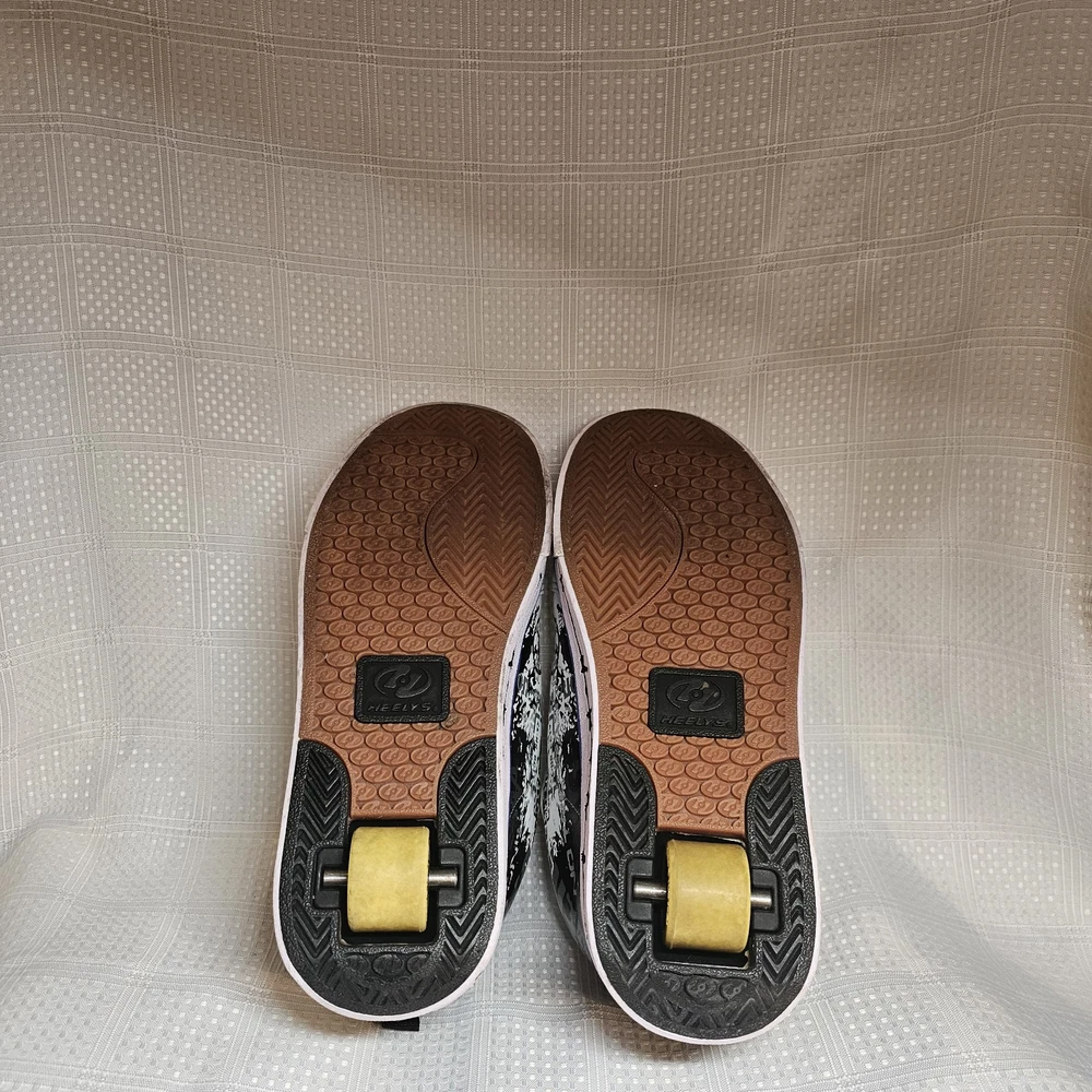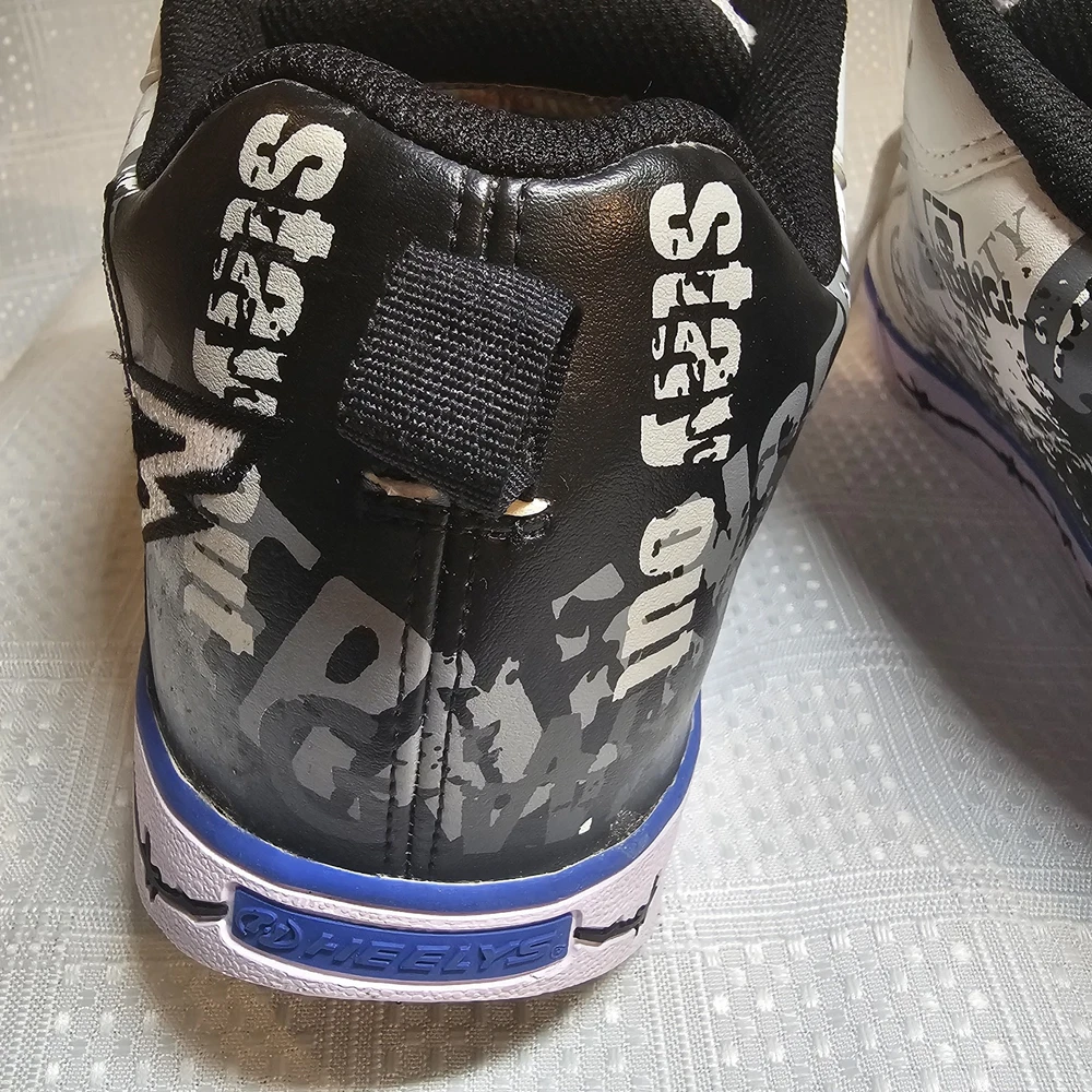 The Heelys Slash Black/White Roller Skate Wheel Shoes (7468) in Youth Size 7 are a trendy and versatile choice for kids who love to skate. Featuring a solid black canvas upper with faux leather accents, these athletic sneakers are both stylish and durable. With wheels integrated into the sole, these Heelys offer a fun and unique way to skate around while still looking cool. Perfect for both boys and girls, these Heelys are designed for casual wear and skate activities. The unisex design, comfortable regular shoe width, and reliable performance make these shoes a must-have for any kid looking to add some excitement to their footwear collection. Heelys have some wear. Price has been reduced to reflect some wear. If you have any questions do not hesitate to contact us. Thank you for stopping by. Kindness is cheap - Spread that stuff everywhere.