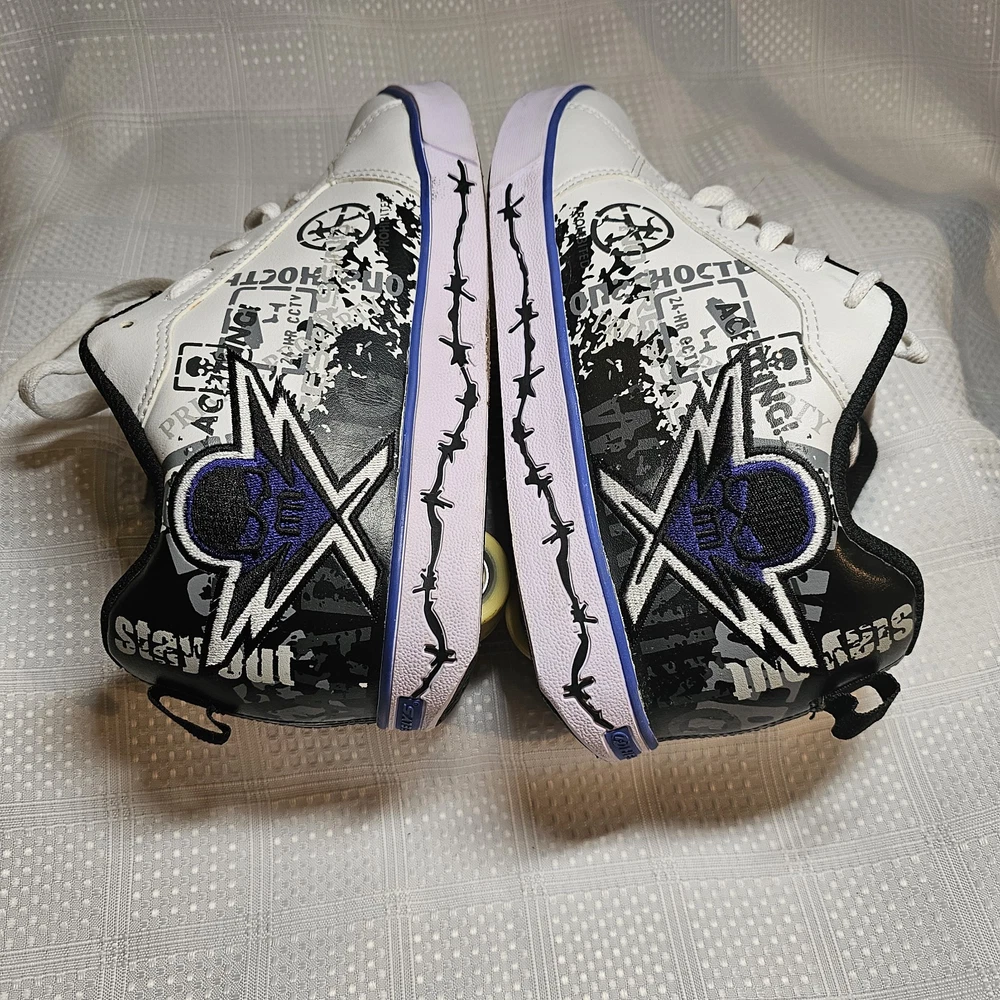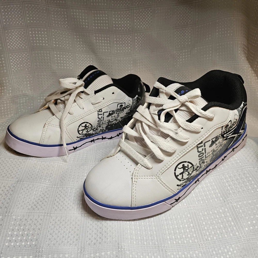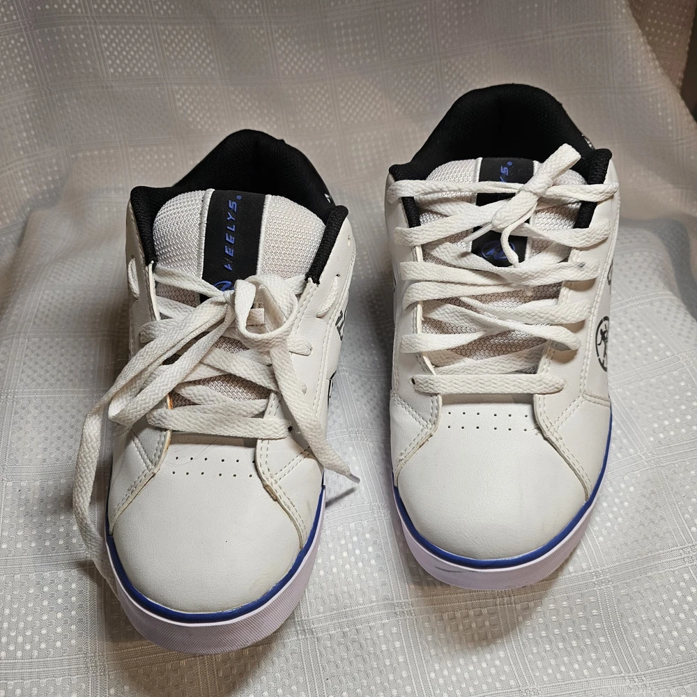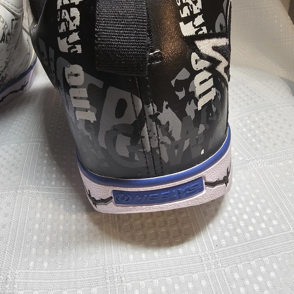 The Heelys Slash Black/White Roller Skate Wheel Shoes (7468) in Youth Size 7 are a trendy and versatile choice for kids who love to skate. Featuring a solid black canvas upper with faux leather accents, these athletic sneakers are both stylish and durable. With wheels integrated into the sole, these Heelys offer a fun and unique way to skate around while still looking cool. Perfect for both boys and girls, these Heelys are designed for casual wear and skate activities. The unisex design, comfortable regular shoe width, and reliable performance make these shoes a must-have for any kid looking to add some excitement to their footwear collection. Heelys have some wear. Price has been reduced to reflect some wear. If you have any questions do not hesitate to contact us. Thank you for stopping by. Kindness is cheap - Spread that stuff everywhere.