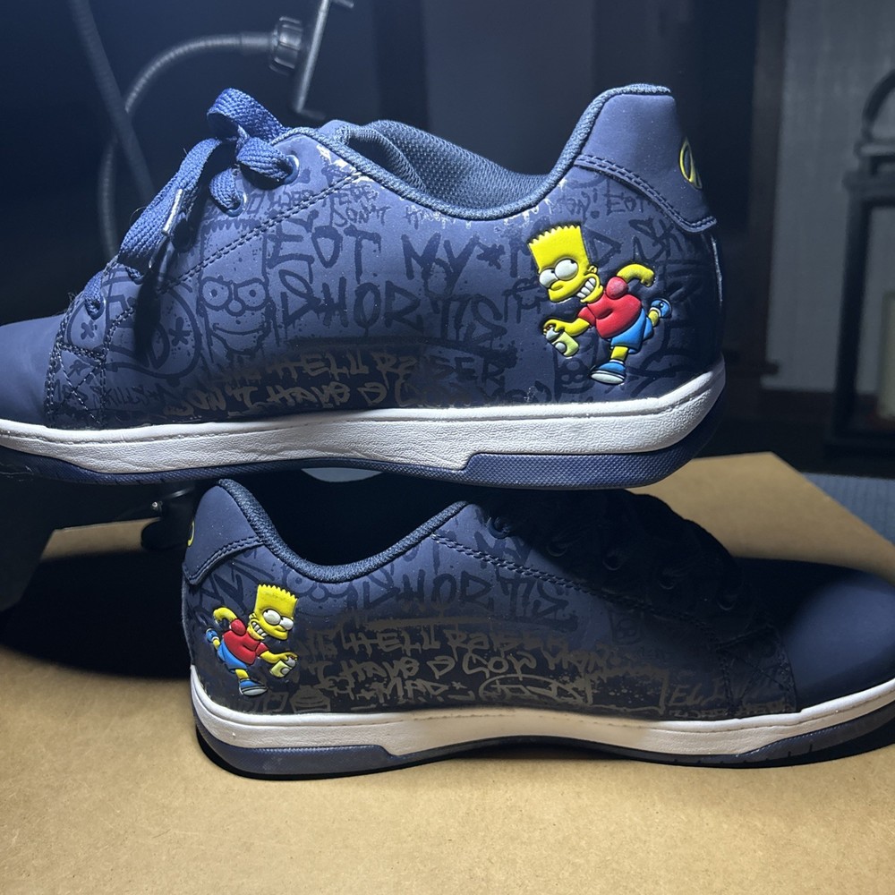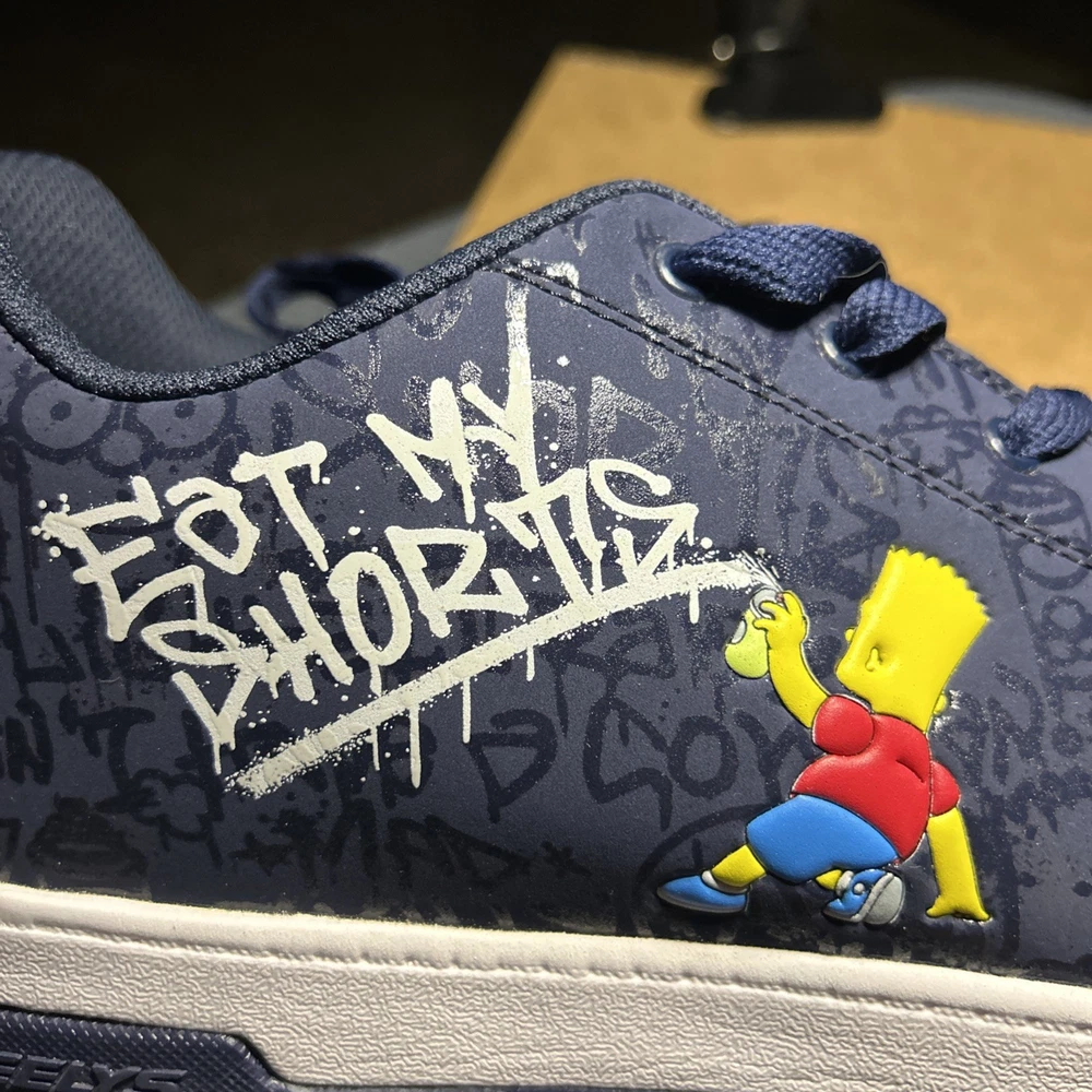 The Heelys Split Simpsons Navy Men’s Athletic Sneaker is a stylish and comfortable low top shoe designed for active wear. Featuring a solid navy blue color and a lace-up closure, this sneaker is perfect for athletic activities. The upper material is synthetic, with a rubber outsole for added durability. The foam insole provides extra comfort, making it an ideal choice for both kids and adults looking for a reliable and fashionable sneaker option. No wheels come with these shoes.
