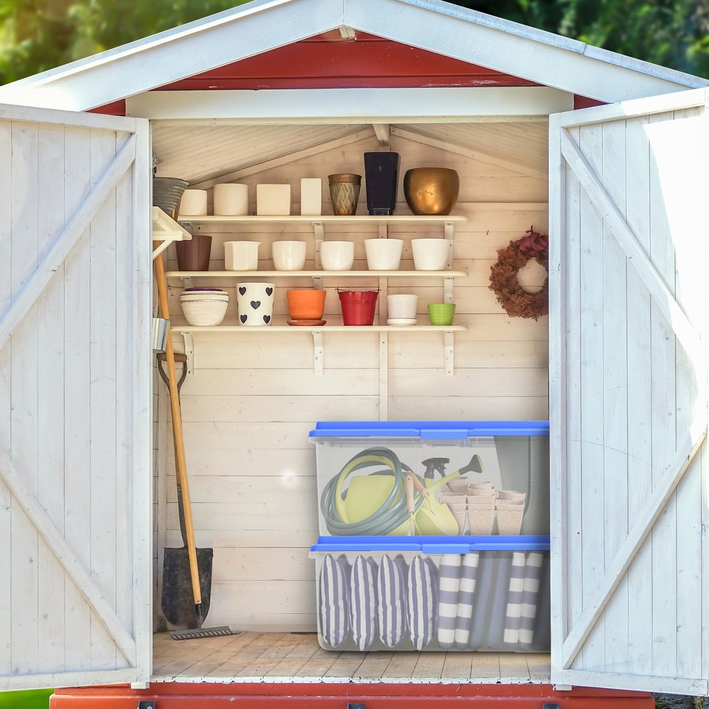 $ 7.113-Pack 45L Stackable Storage Bins - Collapsible Plastic Crates w/ Lids & Handles