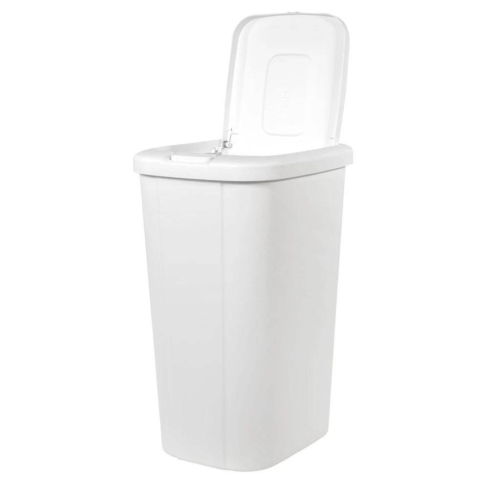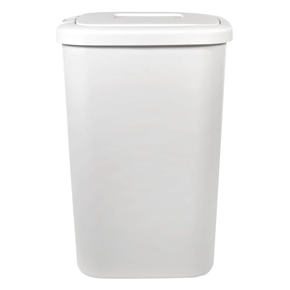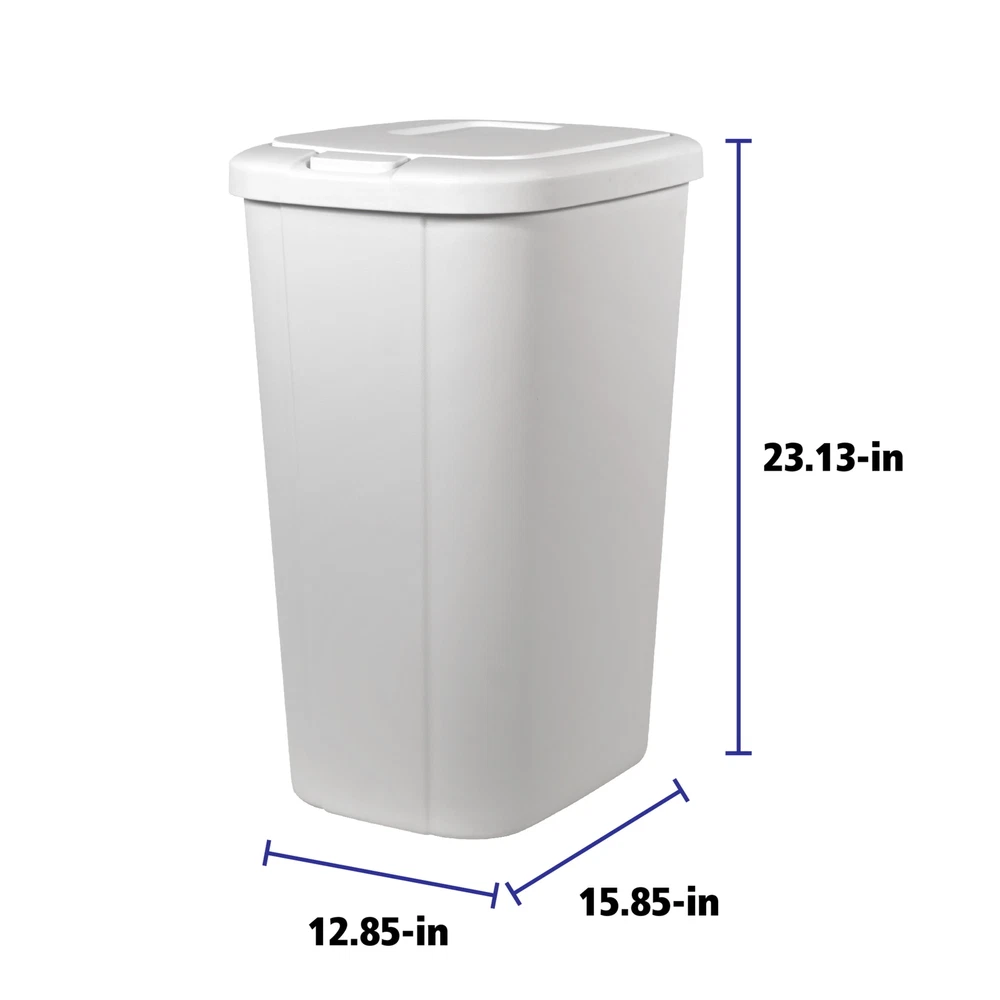 The Hefty touch lid plastic kitchen trash can in matte white has everything you need and nothing you don’t. The slim profile allows you to neatly tuck the bin away while still offering a large 13.3-gallon capacity. The spring loaded lid pops open with the simple touch of a button and clicks securely closed, helping to reduce odor. Plus, the trash bin is made of durable plastic to withstand daily use and can be easily wiped down when needed. This Hefty trash can will look great in your kitchen for years to come. The best part is, it fits a standard 13-gallon trash bag perfectly! On Feb 19, 2025 at 01:31:56 PST, seller added the following information: