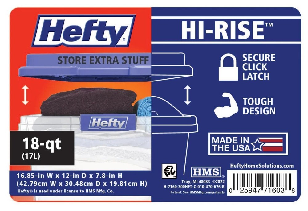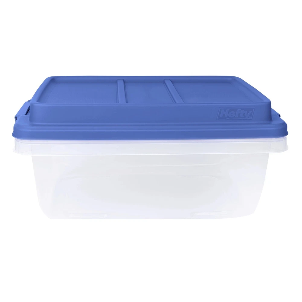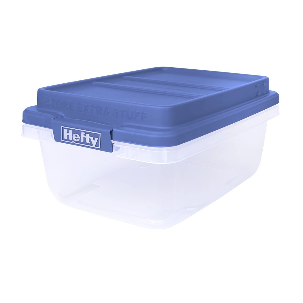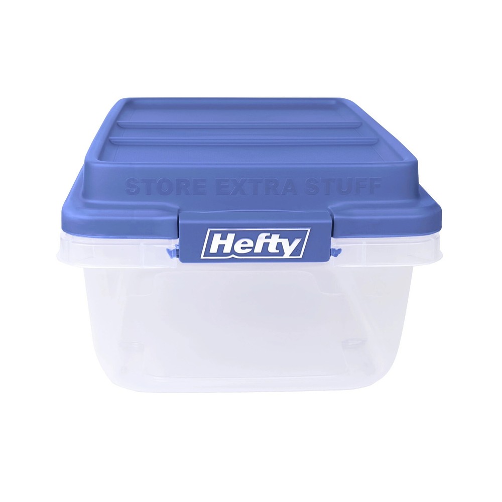 Large secure latches, keep the lid closed tightly Double rimmed base for added strength Crossbar design on lid supports secure stacking Strong plastic storage container Taller, stackable lid allows for extra storage Adult usage.
