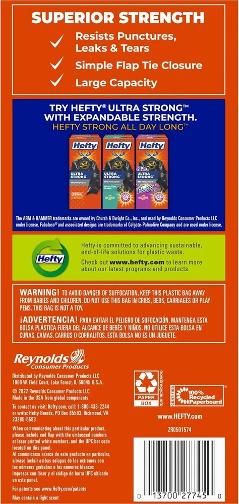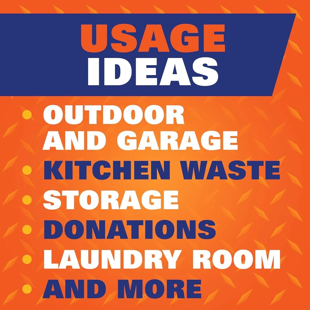 HEFTY EASY FLAPS LARGE TRASH BAGS – 30 GALLON ✅ THICKER GAUGE PLASTIC ✔ STRONGER than other large black garbage bags. ✅ PERFECT FOR POST-PARTY CLEAN-UP ✔ TACKLE ANY MESS , no matter how crazy last night got. ✅ GREAT FOR STORAGE & DONATIONS ✔ STORE CLOTHES you're not ready to part with. ✔ PACK UP ITEMS for easy donation. ✅ VERSATILE FOR HOME & YARD ✔ IDEAL FOR CLEANING basements, garages, and yards. ✅ LARGE 30-GALLON CAPACITY ✔ HOLDS MORE to handle big clean-up jobs. ✅ UNSCENTED FOR SENSITIVE NOSES ✔ NO ADDED FRAGRANCES for those who prefer it. ✅ 100% HEFTY GUARANTEE ✔ HEFTY IS ALWAYS THERE to help tackle the next mess.